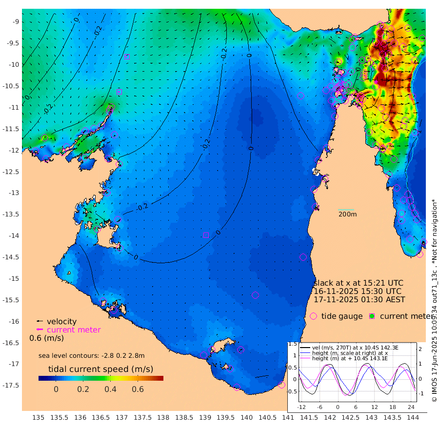 12cm/s -91T +3cm/s rms + 7cm/s -42T. ARA-GOC87 57m 4cm/s -48T +3cm/s rms + 2cm/s -2T. ARA-GOC87 60m 12cm/s -95T +2cm/s rms + 3cm/s 61T. ARA-GOC87 47m -92cm Daru -103cm Bobo Island -95cm Meer Island Barge -112cm Bramble Cay -109cm Unnamed Cay -104cm Pearce Cay -112cm Stephens Island -115cm Merrie England Shoals -99cm Mutacomal Reef -104cm Darnley Island Barge -110cm East Cay -94cm Yorke Island Barge -100cm Rennel Island -96cm Aureed Island -73cm Dungeness Reef -37cm Zagai Island -36cm Yam Island 20cm Dauan Island 12cm Saibai Island 9cm Phipi Reef -32cm Warrior Reef - West 16cm Mabuiag Island Barge -91cm Half Way Island -85cm Coconut Island -85cm Dugong Islet -55cm Poll Island -60cm Kirkcaldie Reef -38cm Suarji Island -49cm Sue Islet 21cm Hawkesbury Island -26cm Alert Patches -33cm Twin Island 19cm Badu Island -16cm St Pauls (Moa Island) 5cm Kubin (Moa Island) -9cm Ince Point 0cm Thursday Island -1cm Nardana Patches 1cm Turtle Head 2cm Round Island 9cm Goods Island 23cm Booby Island 8cm White Rocks Area 17cm Carpentaria -21cm Papou Point -10cm Bampfield Head 27cm Crab Island 19cm Red Wallis Island 1cm Packe Island -95cm Harrington Reef 9cm Herald Camp 5cm Sharp Point 3cm Red Island Point -16cm Possession Island -40cm Alpha Rock -59cm Frederick Point -95cm Wyborn Reef Light -85cm Tetley Island -81cm Triangle Reef -91cm Turtle Head Island -93cm Maclennan Cay -87cm Raine Island -103cm Mcsweeny Reef -102cm Collette Reef -89cm Shadwell Reef -114cm Hannibal Island -117cm Round Point 36cm Vrilya Point -108cm Cape Grenville -104cm Hicks Island -112cm Sir Charles Hardy Island -32cm Harvey Island -111cm Kay Reef -97cm Rocky Island -97cm Chapman Island -92cm Ham Reef -93cm Jubilee Reef -85cm Night Island -95cm Unnamed Reef No. 3 -102cm Morris Island -90cm 1st 3 Mile Opening -95cm Creech Reef -103cm Fife Island -113cm Eden Reef -102cm Stanley Island -115cm Normanby River -50cm Yabooma Island -70cm Hutchison River -49cm Elcho Island -38cm North West Crocodile Island -67cm Cape Wessel -59cm Stevens Island -82cm Guluwuru Island -54cm Hopeful Bay -56cm Auster Point -47cm Two Island Bay -62cm Cadell Strait -143cm Mallison Island -67cm Melville Bay (Gove Harbour) -74cm Truant Island -49cm Cape Arnhem -30cm Cape Grey -14cm Hawk Island 7cm Milner Bay (Groote Eylandt) 12cm Cape Beatrice 34cm West Island 37cm Centre Island 23cm Mornington Island 20cm West Wellesley Islands 16cm Bountiful Island 44cm Albert River Mouth 50cm Sweers Island 48cm Karumba 15cm Nassau River Offshore 1cm Christmas Creek 4cm Archer River 4cm Boyd Point 3cm Weipa (Humbug Point) 28cm Pennefather River 25cm Cullen Point