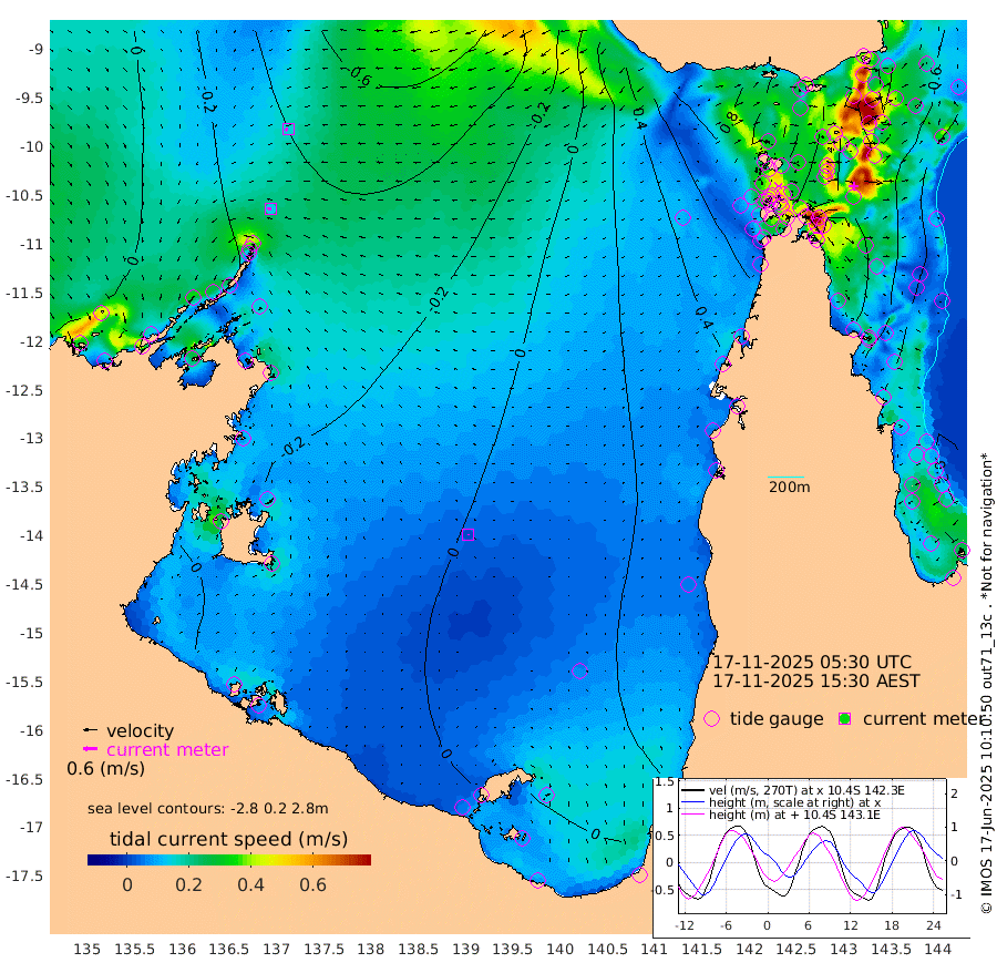 15cm/s -96T +3cm/s rms + 7cm/s -42T. ARA-GOC87 57m 2cm/s -174T +3cm/s rms + 2cm/s -2T. ARA-GOC87 60m 15cm/s -111T +2cm/s rms + 3cm/s 61T. ARA-GOC87 47m -69cm Daru -82cm Bobo Island -36cm Meer Island Barge -57cm Bramble Cay -63cm Unnamed Cay -80cm Pearce Cay -67cm Stephens Island -71cm Merrie England Shoals -70cm Mutacomal Reef -59cm Darnley Island Barge -44cm East Cay -63cm Yorke Island Barge -66cm Rennel Island -72cm Aureed Island -56cm Dungeness Reef -35cm Zagai Island -27cm Yam Island 27cm Dauan Island 21cm Saibai Island 4cm Phipi Reef -30cm Warrior Reef - West 27cm Mabuiag Island Barge -67cm Half Way Island -69cm Coconut Island -62cm Dugong Islet -50cm Poll Island -49cm Kirkcaldie Reef -28cm Suarji Island -40cm Sue Islet 65cm Hawkesbury Island -20cm Alert Patches -28cm Twin Island 60cm Badu Island -19cm St Pauls (Moa Island) 41cm Kubin (Moa Island) 3cm Ince Point 19cm Thursday Island 16cm Nardana Patches 39cm Turtle Head 53cm Round Island 68cm Goods Island 87cm Booby Island 77cm White Rocks Area 74cm Carpentaria -19cm Papou Point 91cm Bampfield Head 68cm Crab Island 75cm Red Wallis Island 46cm Packe Island -79cm Harrington Reef 85cm Herald Camp -8cm Sharp Point 24cm Red Island Point 1cm Possession Island -28cm Alpha Rock -50cm Frederick Point -70cm Wyborn Reef Light -66cm Tetley Island -34cm Triangle Reef -75cm Turtle Head Island -32cm Maclennan Cay -18cm Raine Island -63cm Mcsweeny Reef -57cm Collette Reef -31cm Shadwell Reef -65cm Hannibal Island -61cm Round Point 61cm Vrilya Point -48cm Cape Grenville -42cm Hicks Island -27cm Sir Charles Hardy Island -15cm Harvey Island -39cm Kay Reef -26cm Rocky Island -21cm Chapman Island -19cm Ham Reef -23cm Jubilee Reef -29cm Night Island -24cm Unnamed Reef No. 3 -30cm Morris Island -14cm 1st 3 Mile Opening -24cm Creech Reef -36cm Fife Island -31cm Eden Reef -27cm Stanley Island -39cm Normanby River 7cm Yabooma Island -17cm Hutchison River -11cm Elcho Island -10cm North West Crocodile Island -25cm Cape Wessel -22cm Stevens Island -38cm Guluwuru Island -14cm Hopeful Bay -20cm Auster Point -21cm Two Island Bay -40cm Cadell Strait -61cm Mallison Island -32cm Melville Bay (Gove Harbour) -33cm Truant Island -26cm Cape Arnhem -19cm Cape Grey -25cm Hawk Island -11cm Milner Bay (Groote Eylandt) -13cm Cape Beatrice -6cm West Island -8cm Centre Island -15cm Mornington Island -5cm West Wellesley Islands 12cm Bountiful Island -3cm Albert River Mouth -17cm Sweers Island -9cm Karumba 4cm Nassau River Offshore 22cm Christmas Creek 34cm Archer River 45cm Boyd Point 58cm Weipa (Humbug Point) 31cm Pennefather River 66cm Cullen Point