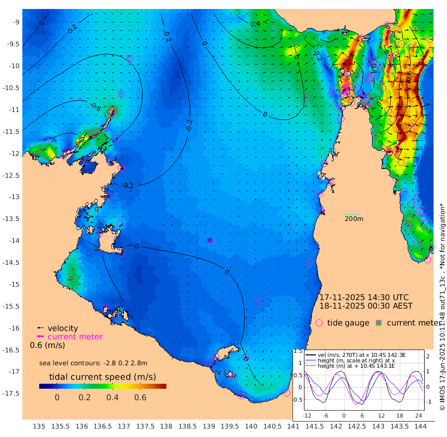 11cm/s -61T +3cm/s rms + 7cm/s -42T. ARA-GOC87 57m 2cm/s 25T +3cm/s rms + 2cm/s -2T. ARA-GOC87 60m 12cm/s -65T +2cm/s rms + 3cm/s 61T. ARA-GOC87 47m -27cm Daru -33cm Bobo Island -67cm Meer Island Barge -69cm Bramble Cay -52cm Unnamed Cay -41cm Pearce Cay -54cm Stephens Island -59cm Merrie England Shoals -33cm Mutacomal Reef -53cm Darnley Island Barge -76cm East Cay -36cm Yorke Island Barge -39cm Rennel Island -29cm Aureed Island -14cm Dungeness Reef 17cm Zagai Island 18cm Yam Island 35cm Dauan Island 30cm Saibai Island 25cm Phipi Reef 20cm Warrior Reef - West 22cm Mabuiag Island Barge -28cm Half Way Island -21cm Coconut Island -18cm Dugong Islet 5cm Poll Island -3cm Kirkcaldie Reef 16cm Suarji Island 5cm Sue Islet -17cm Hawkesbury Island 10cm Alert Patches 14cm Twin Island -17cm Badu Island 29cm St Pauls (Moa Island) -2cm Kubin (Moa Island) 14cm Ince Point 9cm Thursday Island 11cm Nardana Patches -10cm Turtle Head -16cm Round Island -29cm Goods Island -31cm Booby Island -34cm White Rocks Area -16cm Carpentaria 18cm Papou Point -53cm Bampfield Head -24cm Crab Island -22cm Red Wallis Island -12cm Packe Island -19cm Harrington Reef -22cm Herald Camp 20cm Sharp Point -10cm Red Island Point 3cm Possession Island 10cm Alpha Rock 0cm Frederick Point -28cm Wyborn Reef Light -18cm Tetley Island -51cm Triangle Reef -28cm Turtle Head Island -62cm Maclennan Cay -77cm Raine Island -48cm Mcsweeny Reef -56cm Collette Reef -66cm Shadwell Reef -63cm Hannibal Island -73cm Round Point -13cm Vrilya Point -69cm Cape Grenville -70cm Hicks Island -78cm Sir Charles Hardy Island -19cm Harvey Island -83cm Kay Reef -78cm Rocky Island -84cm Chapman Island -78cm Ham Reef -77cm Jubilee Reef -64cm Night Island -80cm Unnamed Reef No. 3 -82cm Morris Island -79cm 1st 3 Mile Opening -77cm Creech Reef -79cm Fife Island -95cm Eden Reef -84cm Stanley Island -88cm Normanby River -85cm Yabooma Island -101cm Hutchison River -82cm Elcho Island -70cm North West Crocodile Island -59cm Cape Wessel -76cm Stevens Island -65cm Guluwuru Island -75cm Hopeful Bay -63cm Auster Point -49cm Two Island Bay -74cm Cadell Strait -104cm Mallison Island -58cm Melville Bay (Gove Harbour) -61cm Truant Island -37cm Cape Arnhem -24cm Cape Grey -5cm Hawk Island 14cm Milner Bay (Groote Eylandt) 19cm Cape Beatrice 47cm West Island 49cm Centre Island 26cm Mornington Island 23cm West Wellesley Islands 8cm Bountiful Island 25cm Albert River Mouth 32cm Sweers Island 29cm Karumba 8cm Nassau River Offshore -12cm Christmas Creek -29cm Archer River -24cm Boyd Point -36cm Weipa (Humbug Point) -11cm Pennefather River -14cm Cullen Point