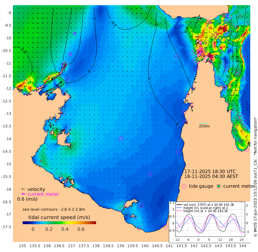 7cm/s 136T +3cm/s rms + 7cm/s -42T. ARA-GOC87 57m 11cm/s -16T +3cm/s rms + 2cm/s -2T. ARA-GOC87 60m 9cm/s 121T +2cm/s rms + 3cm/s 61T. ARA-GOC87 47m -120cm Daru -120cm Bobo Island -50cm Meer Island Barge -74cm Bramble Cay -103cm Unnamed Cay -108cm Pearce Cay -96cm Stephens Island -97cm Merrie England Shoals -121cm Mutacomal Reef -87cm Darnley Island Barge -58cm East Cay -104cm Yorke Island Barge -109cm Rennel Island -117cm Aureed Island -119cm Dungeness Reef -123cm Zagai Island -125cm Yam Island -89cm Dauan Island -91cm Saibai Island -96cm Phipi Reef -128cm Warrior Reef - West -65cm Mabuiag Island Barge -109cm Half Way Island -123cm Coconut Island -121cm Dugong Islet -123cm Poll Island -120cm Kirkcaldie Reef -131cm Suarji Island -114cm Sue Islet -2cm Hawkesbury Island -101cm Alert Patches -112cm Twin Island -16cm Badu Island -114cm St Pauls (Moa Island) -43cm Kubin (Moa Island) -83cm Ince Point -66cm Thursday Island -70cm Nardana Patches -43cm Turtle Head -26cm Round Island -5cm Goods Island 20cm Booby Island 3cm White Rocks Area 13cm Carpentaria -98cm Papou Point 6cm Bampfield Head 28cm Crab Island 6cm Red Wallis Island -34cm Packe Island -134cm Harrington Reef -14cm Herald Camp -36cm Sharp Point -35cm Red Island Point -72cm Possession Island -108cm Alpha Rock -120cm Frederick Point -121cm Wyborn Reef Light -123cm Tetley Island -57cm Triangle Reef -109cm Turtle Head Island -57cm Maclennan Cay -25cm Raine Island -96cm Mcsweeny Reef -82cm Collette Reef -47cm Shadwell Reef -89cm Hannibal Island -73cm Round Point 39cm Vrilya Point -67cm Cape Grenville -61cm Hicks Island -69cm Sir Charles Hardy Island -21cm Harvey Island -50cm Kay Reef -38cm Rocky Island -30cm Chapman Island -29cm Ham Reef -34cm Jubilee Reef -38cm Night Island -32cm Unnamed Reef No. 3 -38cm Morris Island -29cm 1st 3 Mile Opening -36cm Creech Reef -37cm Fife Island -34cm Eden Reef -35cm Stanley Island -44cm Normanby River 71cm Yabooma Island 64cm Hutchison River 69cm Elcho Island 67cm North West Crocodile Island 15cm Cape Wessel 55cm Stevens Island -7cm Guluwuru Island 58cm Hopeful Bay 38cm Auster Point 38cm Two Island Bay 48cm Cadell Strait -18cm Mallison Island 3cm Melville Bay (Gove Harbour) 2cm Truant Island -4cm Cape Arnhem -2cm Cape Grey -2cm Hawk Island 1cm Milner Bay (Groote Eylandt) -2cm Cape Beatrice -13cm West Island -11cm Centre Island -20cm Mornington Island -21cm West Wellesley Islands -25cm Bountiful Island 3cm Albert River Mouth 17cm Sweers Island 4cm Karumba -23cm Nassau River Offshore -23cm Christmas Creek 10cm Archer River 5cm Boyd Point 11cm Weipa (Humbug Point) 34cm Pennefather River 20cm Cullen Point
