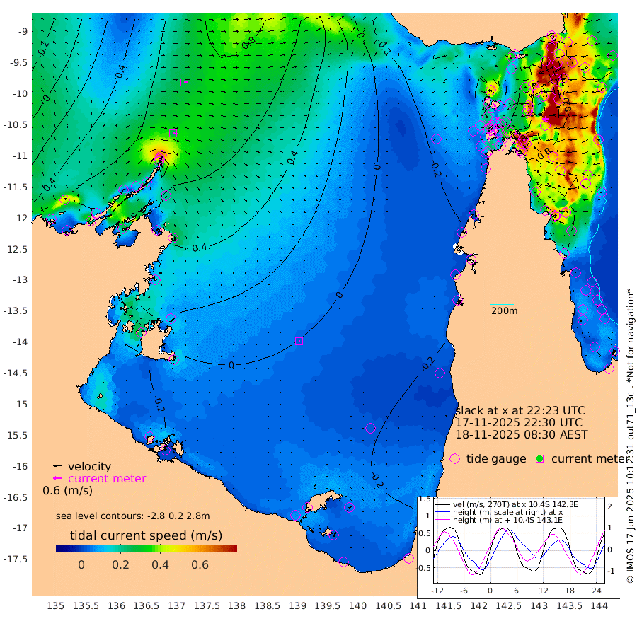 27cm/s 103T +3cm/s rms + 7cm/s -42T. ARA-GOC87 57m 3cm/s 38T +3cm/s rms + 2cm/s -2T. ARA-GOC87 60m 26cm/s 94T +2cm/s rms + 3cm/s 61T. ARA-GOC87 47m 84cm Daru 100cm Bobo Island 83cm Meer Island Barge 101cm Bramble Cay 97cm Unnamed Cay 104cm Pearce Cay 100cm Stephens Island 106cm Merrie England Shoals 88cm Mutacomal Reef 93cm Darnley Island Barge 96cm East Cay 85cm Yorke Island Barge 90cm Rennel Island 89cm Aureed Island 66cm Dungeness Reef 30cm Zagai Island 19cm Yam Island -34cm Dauan Island -25cm Saibai Island -7cm Phipi Reef 21cm Warrior Reef - West -22cm Mabuiag Island Barge 82cm Half Way Island 84cm Coconut Island 71cm Dugong Islet 48cm Poll Island 52cm Kirkcaldie Reef 27cm Suarji Island 41cm Sue Islet -21cm Hawkesbury Island 26cm Alert Patches 28cm Twin Island -14cm Badu Island 9cm St Pauls (Moa Island) -15cm Kubin (Moa Island) 3cm Ince Point -5cm Thursday Island -4cm Nardana Patches -7cm Turtle Head -11cm Round Island -14cm Goods Island -27cm Booby Island -18cm White Rocks Area -27cm Carpentaria 18cm Papou Point -4cm Bampfield Head -19cm Crab Island -27cm Red Wallis Island -14cm Packe Island 88cm Harrington Reef -36cm Herald Camp -6cm Sharp Point 4cm Red Island Point 16cm Possession Island 27cm Alpha Rock 54cm Frederick Point 88cm Wyborn Reef Light 79cm Tetley Island 72cm Triangle Reef 95cm Turtle Head Island 76cm Maclennan Cay 76cm Raine Island 93cm Mcsweeny Reef 94cm Collette Reef 79cm Shadwell Reef 106cm Hannibal Island 108cm Round Point -23cm Vrilya Point 93cm Cape Grenville 90cm Hicks Island 83cm Sir Charles Hardy Island 27cm Harvey Island 96cm Kay Reef 82cm Rocky Island 83cm Chapman Island 77cm Ham Reef 79cm Jubilee Reef 73cm Night Island 82cm Unnamed Reef No. 3 88cm Morris Island 74cm 1st 3 Mile Opening 80cm Creech Reef 88cm Fife Island 98cm Eden Reef 86cm Stanley Island 98cm Normanby River 59cm Yabooma Island 96cm Hutchison River 73cm Elcho Island 61cm North West Crocodile Island 72cm Cape Wessel 79cm Stevens Island 91cm Guluwuru Island 71cm Hopeful Bay 72cm Auster Point 57cm Two Island Bay 93cm Cadell Strait 136cm Mallison Island 76cm Melville Bay (Gove Harbour) 83cm Truant Island 55cm Cape Arnhem 36cm Cape Grey 23cm Hawk Island -9cm Milner Bay (Groote Eylandt) -14cm Cape Beatrice -48cm West Island -44cm Centre Island -29cm Mornington Island -36cm West Wellesley Islands -45cm Bountiful Island -51cm Albert River Mouth -44cm Sweers Island -48cm Karumba -30cm Nassau River Offshore -19cm Christmas Creek -4cm Archer River -11cm Boyd Point -15cm Weipa (Humbug Point) -5cm Pennefather River -31cm Cullen Point