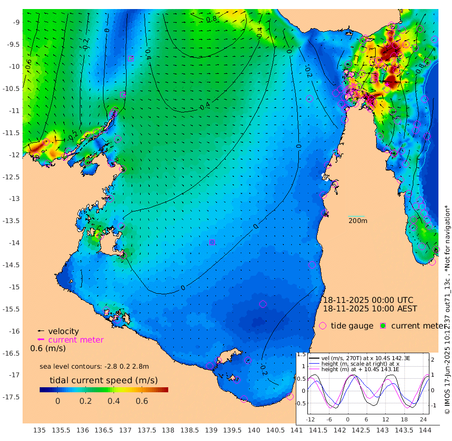 20cm/s 100T +3cm/s rms + 7cm/s -42T. ARA-GOC87 57m 5cm/s 102T +3cm/s rms + 2cm/s -2T. ARA-GOC87 60m 18cm/s 92T +2cm/s rms + 3cm/s 61T. ARA-GOC87 47m 118cm Daru 131cm Bobo Island 74cm Meer Island Barge 96cm Bramble Cay 112cm Unnamed Cay 126cm Pearce Cay 112cm Stephens Island 113cm Merrie England Shoals 118cm Mutacomal Reef 104cm Darnley Island Barge 85cm East Cay 111cm Yorke Island Barge 116cm Rennel Island 123cm Aureed Island 111cm Dungeness Reef 97cm Zagai Island 86cm Yam Island 36cm Dauan Island 44cm Saibai Island 60cm Phipi Reef 90cm Warrior Reef - West 34cm Mabuiag Island Barge 111cm Half Way Island 127cm Coconut Island 112cm Dugong Islet 104cm Poll Island 105cm Kirkcaldie Reef 103cm Suarji Island 97cm Sue Islet -3cm Hawkesbury Island 87cm Alert Patches 92cm Twin Island 14cm Badu Island 82cm St Pauls (Moa Island) 21cm Kubin (Moa Island) 60cm Ince Point 46cm Thursday Island 49cm Nardana Patches 31cm Turtle Head 17cm Round Island 4cm Goods Island -14cm Booby Island -2cm White Rocks Area -4cm Carpentaria 78cm Papou Point 11cm Bampfield Head -12cm Crab Island -9cm Red Wallis Island 15cm Packe Island 134cm Harrington Reef -11cm Herald Camp 21cm Sharp Point 35cm Red Island Point 65cm Possession Island 83cm Alpha Rock 109cm Frederick Point 122cm Wyborn Reef Light 119cm Tetley Island 73cm Triangle Reef 127cm Turtle Head Island 74cm Maclennan Cay 56cm Raine Island 109cm Mcsweeny Reef 101cm Collette Reef 71cm Shadwell Reef 110cm Hannibal Island 100cm Round Point -17cm Vrilya Point 88cm Cape Grenville 83cm Hicks Island 79cm Sir Charles Hardy Island 27cm Harvey Island 78cm Kay Reef 64cm Rocky Island 61cm Chapman Island 57cm Ham Reef 62cm Jubilee Reef 60cm Night Island 62cm Unnamed Reef No. 3 68cm Morris Island 58cm 1st 3 Mile Opening 64cm Creech Reef 66cm Fife Island 71cm Eden Reef 64cm Stanley Island 74cm Normanby River -31cm Yabooma Island -2cm Hutchison River -17cm Elcho Island -26cm North West Crocodile Island 23cm Cape Wessel -4cm Stevens Island 53cm Guluwuru Island -10cm Hopeful Bay 11cm Auster Point -3cm Two Island Bay 12cm Cadell Strait 75cm Mallison Island 37cm Melville Bay (Gove Harbour) 43cm Truant Island 34cm Cape Arnhem 23cm Cape Grey 12cm Hawk Island -9cm Milner Bay (Groote Eylandt) -13cm Cape Beatrice -28cm West Island -22cm Centre Island -19cm Mornington Island -24cm West Wellesley Islands -40cm Bountiful Island -61cm Albert River Mouth -59cm Sweers Island -58cm Karumba -24cm Nassau River Offshore -11cm Christmas Creek -7cm Archer River -5cm Boyd Point -15cm Weipa (Humbug Point) -6cm Pennefather River -21cm Cullen Point