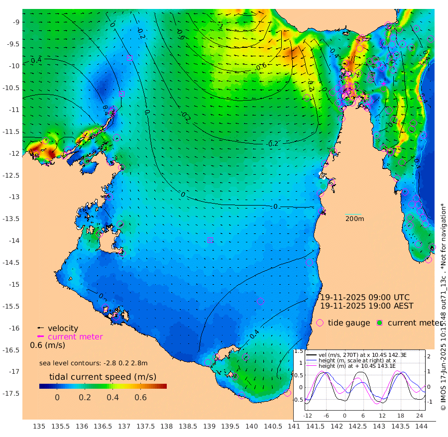 15cm/s -83T +3cm/s rms + 7cm/s -42T. ARA-GOC87 57m 11cm/s -123T +3cm/s rms + 2cm/s -2T. ARA-GOC87 60m 12cm/s -90T +2cm/s rms + 3cm/s 61T. ARA-GOC87 47m -2cm Daru -9cm Bobo Island 23cm Meer Island Barge 26cm Bramble Cay 15cm Unnamed Cay -3cm Pearce Cay 12cm Stephens Island 20cm Merrie England Shoals 6cm Mutacomal Reef 9cm Darnley Island Barge 29cm East Cay -3cm Yorke Island Barge 3cm Rennel Island -12cm Aureed Island -11cm Dungeness Reef -34cm Zagai Island -21cm Yam Island -25cm Dauan Island -29cm Saibai Island -17cm Phipi Reef -25cm Warrior Reef - West -26cm Mabuiag Island Barge -2cm Half Way Island -18cm Coconut Island -7cm Dugong Islet -24cm Poll Island -15cm Kirkcaldie Reef -36cm Suarji Island -26cm Sue Islet 2cm Hawkesbury Island -32cm Alert Patches -34cm Twin Island -2cm Badu Island -39cm St Pauls (Moa Island) -8cm Kubin (Moa Island) -27cm Ince Point -24cm Thursday Island -24cm Nardana Patches -8cm Turtle Head -6cm Round Island 6cm Goods Island 0cm Booby Island 5cm White Rocks Area -31cm Carpentaria -33cm Papou Point -10cm Bampfield Head -4cm Crab Island -2cm Red Wallis Island 0cm Packe Island -17cm Harrington Reef 6cm Herald Camp -16cm Sharp Point -8cm Red Island Point -30cm Possession Island -26cm Alpha Rock -26cm Frederick Point -8cm Wyborn Reef Light -14cm Tetley Island 12cm Triangle Reef -17cm Turtle Head Island 22cm Maclennan Cay 32cm Raine Island 7cm Mcsweeny Reef 13cm Collette Reef 23cm Shadwell Reef 17cm Hannibal Island 26cm Round Point -16cm Vrilya Point 26cm Cape Grenville 27cm Hicks Island 34cm Sir Charles Hardy Island 7cm Harvey Island 36cm Kay Reef 34cm Rocky Island 34cm Chapman Island 31cm Ham Reef 31cm Jubilee Reef 25cm Night Island 31cm Unnamed Reef No. 3 36cm Morris Island 31cm 1st 3 Mile Opening 30cm Creech Reef 32cm Fife Island 41cm Eden Reef 37cm Stanley Island 41cm Normanby River 88cm Yabooma Island 91cm Hutchison River 79cm Elcho Island 82cm North West Crocodile Island 21cm Cape Wessel 62cm Stevens Island 15cm Guluwuru Island 61cm Hopeful Bay 32cm Auster Point 34cm Two Island Bay 54cm Cadell Strait 5cm Mallison Island 20cm Melville Bay (Gove Harbour) 12cm Truant Island 3cm Cape Arnhem 9cm Cape Grey 6cm Hawk Island 6cm Milner Bay (Groote Eylandt) 14cm Cape Beatrice 8cm West Island -1cm Centre Island 42cm Mornington Island 43cm West Wellesley Islands 88cm Bountiful Island 96cm Albert River Mouth 81cm Sweers Island 91cm Karumba 57cm Nassau River Offshore 46cm Christmas Creek 26cm Archer River 8cm Boyd Point 27cm Weipa (Humbug Point) -11cm Pennefather River -5cm Cullen Point