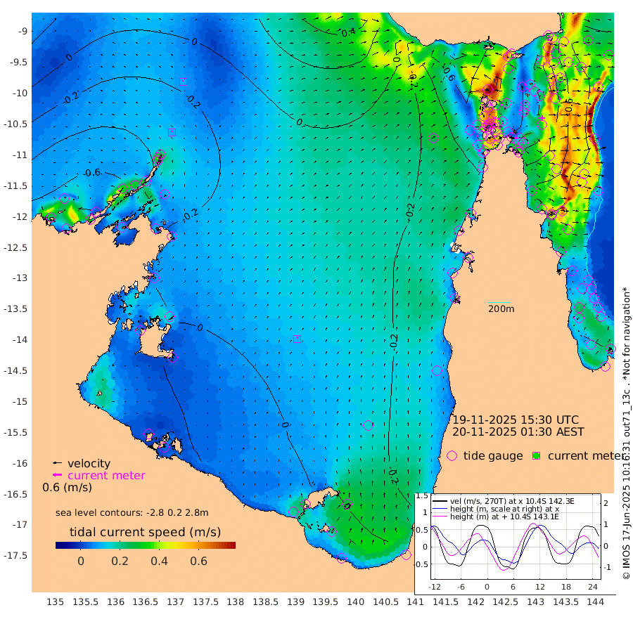 10cm/s -12T +3cm/s rms + 7cm/s -42T. ARA-GOC87 57m 12cm/s 9T +3cm/s rms + 2cm/s -2T. ARA-GOC87 60m 10cm/s -9T +2cm/s rms + 3cm/s 61T. ARA-GOC87 47m -60cm Daru -59cm Bobo Island -76cm Meer Island Barge -85cm Bramble Cay -78cm Unnamed Cay -67cm Pearce Cay -76cm Stephens Island -82cm Merrie England Shoals -65cm Mutacomal Reef -71cm Darnley Island Barge -87cm East Cay -60cm Yorke Island Barge -67cm Rennel Island -52cm Aureed Island -52cm Dungeness Reef -20cm Zagai Island -26cm Yam Island -14cm Dauan Island -11cm Saibai Island -36cm Phipi Reef -23cm Warrior Reef - West -24cm Mabuiag Island Barge -57cm Half Way Island -54cm Coconut Island -51cm Dugong Islet -33cm Poll Island -47cm Kirkcaldie Reef -27cm Suarji Island -32cm Sue Islet -85cm Hawkesbury Island -40cm Alert Patches -32cm Twin Island -79cm Badu Island -20cm St Pauls (Moa Island) -60cm Kubin (Moa Island) -37cm Ince Point -43cm Thursday Island -41cm Nardana Patches -65cm Turtle Head -75cm Round Island -87cm Goods Island -86cm Booby Island -85cm White Rocks Area -46cm Carpentaria -27cm Papou Point -106cm Bampfield Head -72cm Crab Island -73cm Red Wallis Island -68cm Packe Island -53cm Harrington Reef -86cm Herald Camp 6cm Sharp Point -65cm Red Island Point -48cm Possession Island -25cm Alpha Rock -41cm Frederick Point -59cm Wyborn Reef Light -52cm Tetley Island -63cm Triangle Reef -66cm Turtle Head Island -74cm Maclennan Cay -83cm Raine Island -69cm Mcsweeny Reef -75cm Collette Reef -77cm Shadwell Reef -82cm Hannibal Island -89cm Round Point -56cm Vrilya Point -83cm Cape Grenville -85cm Hicks Island -90cm Sir Charles Hardy Island -24cm Harvey Island -92cm Kay Reef -86cm Rocky Island -87cm Chapman Island -82cm Ham Reef -83cm Jubilee Reef -70cm Night Island -83cm Unnamed Reef No. 3 -89cm Morris Island -86cm 1st 3 Mile Opening -84cm Creech Reef -80cm Fife Island -99cm Eden Reef -90cm Stanley Island -94cm Normanby River -79cm Yabooma Island -96cm Hutchison River -72cm Elcho Island -66cm North West Crocodile Island -31cm Cape Wessel -58cm Stevens Island -40cm Guluwuru Island -59cm Hopeful Bay -45cm Auster Point -33cm Two Island Bay -61cm Cadell Strait -34cm Mallison Island -36cm Melville Bay (Gove Harbour) -36cm Truant Island -17cm Cape Arnhem -10cm Cape Grey 7cm Hawk Island 34cm Milner Bay (Groote Eylandt) 34cm Cape Beatrice 63cm West Island 63cm Centre Island 26cm Mornington Island 30cm West Wellesley Islands 4cm Bountiful Island 32cm Albert River Mouth 44cm Sweers Island 22cm Karumba -10cm Nassau River Offshore -39cm Christmas Creek -60cm Archer River -53cm Boyd Point -70cm Weipa (Humbug Point) -44cm Pennefather River -51cm Cullen Point