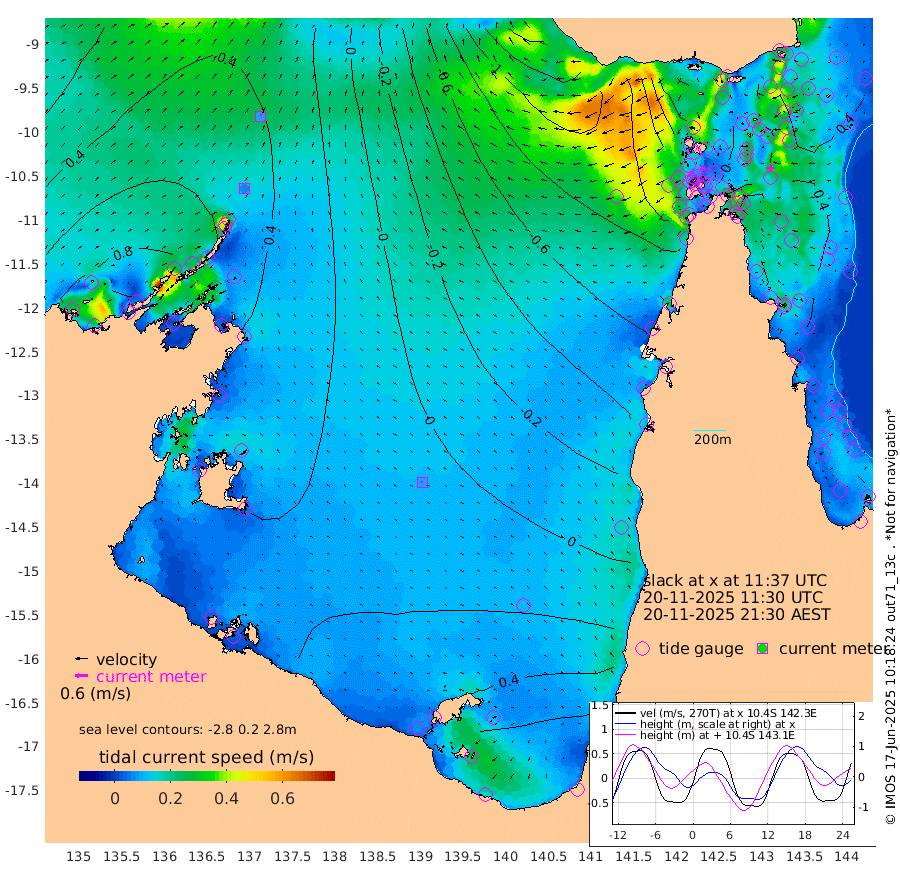 7cm/s 14T +3cm/s rms + 7cm/s -42T. ARA-GOC87 57m 10cm/s -91T +3cm/s rms + 2cm/s -2T. ARA-GOC87 60m 10cm/s 25T +2cm/s rms + 3cm/s 61T. ARA-GOC87 47m 47cm Daru 47cm Bobo Island 24cm Meer Island Barge 47cm Bramble Cay 51cm Unnamed Cay 44cm Pearce Cay 42cm Stephens Island 56cm Merrie England Shoals 57cm Mutacomal Reef 35cm Darnley Island Barge 31cm East Cay 36cm Yorke Island Barge 40cm Rennel Island 36cm Aureed Island 32cm Dungeness Reef 19cm Zagai Island 20cm Yam Island -6cm Dauan Island -5cm Saibai Island 9cm Phipi Reef 25cm Warrior Reef - West -26cm Mabuiag Island Barge 37cm Half Way Island 33cm Coconut Island 34cm Dugong Islet 23cm Poll Island 23cm Kirkcaldie Reef 4cm Suarji Island 16cm Sue Islet -72cm Hawkesbury Island -11cm Alert Patches -4cm Twin Island -56cm Badu Island -8cm St Pauls (Moa Island) -48cm Kubin (Moa Island) -24cm Ince Point -39cm Thursday Island -34cm Nardana Patches -47cm Turtle Head -62cm Round Island -71cm Goods Island -100cm Booby Island -82cm White Rocks Area -120cm Carpentaria -9cm Papou Point -117cm Bampfield Head -90cm Crab Island -88cm Red Wallis Island -54cm Packe Island 34cm Harrington Reef -87cm Herald Camp 0cm Sharp Point -42cm Red Island Point -36cm Possession Island 9cm Alpha Rock 14cm Frederick Point 44cm Wyborn Reef Light 39cm Tetley Island 21cm Triangle Reef 24cm Turtle Head Island 20cm Maclennan Cay 15cm Raine Island 39cm Mcsweeny Reef 38cm Collette Reef 24cm Shadwell Reef 47cm Hannibal Island 46cm Round Point -101cm Vrilya Point 36cm Cape Grenville 30cm Hicks Island 30cm Sir Charles Hardy Island 9cm Harvey Island 34cm Kay Reef 24cm Rocky Island 20cm Chapman Island 15cm Ham Reef 19cm Jubilee Reef 19cm Night Island 17cm Unnamed Reef No. 3 25cm Morris Island 10cm 1st 3 Mile Opening 16cm Creech Reef 23cm Fife Island 29cm Eden Reef 22cm Stanley Island 34cm Normanby River 89cm Yabooma Island 115cm Hutchison River 98cm Elcho Island 100cm North West Crocodile Island 55cm Cape Wessel 94cm Stevens Island 66cm Guluwuru Island 82cm Hopeful Bay 57cm Auster Point 59cm Two Island Bay 98cm Cadell Strait 96cm Mallison Island 62cm Melville Bay (Gove Harbour) 56cm Truant Island 38cm Cape Arnhem 36cm Cape Grey 40cm Hawk Island 34cm Milner Bay (Groote Eylandt) 40cm Cape Beatrice 29cm West Island 20cm Centre Island 69cm Mornington Island 65cm West Wellesley Islands 106cm Bountiful Island 140cm Albert River Mouth 131cm Sweers Island 126cm Karumba 58cm Nassau River Offshore 21cm Christmas Creek -24cm Archer River -49cm Boyd Point -43cm Weipa (Humbug Point) -67cm Pennefather River -85cm Cullen Point