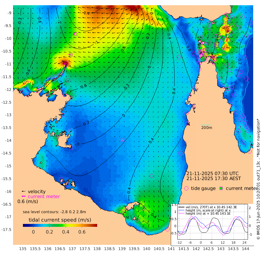 39cm/s -87T +3cm/s rms + 7cm/s -42T. ARA-GOC87 57m 14cm/s -164T +3cm/s rms + 2cm/s -2T. ARA-GOC87 60m 40cm/s -97T +2cm/s rms + 3cm/s 61T. ARA-GOC87 47m -33cm Daru -44cm Bobo Island -9cm Meer Island Barge -26cm Bramble Cay -33cm Unnamed Cay -36cm Pearce Cay -27cm Stephens Island -38cm Merrie England Shoals -41cm Mutacomal Reef -24cm Darnley Island Barge -8cm East Cay -29cm Yorke Island Barge -27cm Rennel Island -33cm Aureed Island -18cm Dungeness Reef -24cm Zagai Island -8cm Yam Island 22cm Dauan Island 12cm Saibai Island 26cm Phipi Reef -10cm Warrior Reef - West 22cm Mabuiag Island Barge -27cm Half Way Island -36cm Coconut Island -22cm Dugong Islet -23cm Poll Island -10cm Kirkcaldie Reef -3cm Suarji Island -19cm Sue Islet 71cm Hawkesbury Island 4cm Alert Patches -5cm Twin Island 58cm Badu Island 0cm St Pauls (Moa Island) 47cm Kubin (Moa Island) 18cm Ince Point 32cm Thursday Island 28cm Nardana Patches 52cm Turtle Head 53cm Round Island 73cm Goods Island 88cm Booby Island 77cm White Rocks Area 64cm Carpentaria -1cm Papou Point 74cm Bampfield Head 75cm Crab Island 77cm Red Wallis Island 57cm Packe Island -32cm Harrington Reef 91cm Herald Camp -1cm Sharp Point 52cm Red Island Point 20cm Possession Island -20cm Alpha Rock -19cm Frederick Point -48cm Wyborn Reef Light -46cm Tetley Island -13cm Triangle Reef -38cm Turtle Head Island -1cm Maclennan Cay 5cm Raine Island -29cm Mcsweeny Reef -26cm Collette Reef -9cm Shadwell Reef -32cm Hannibal Island -27cm Round Point 70cm Vrilya Point -15cm Cape Grenville -8cm Hicks Island 0cm Sir Charles Hardy Island -3cm Harvey Island -10cm Kay Reef 2cm Rocky Island 0cm Chapman Island 3cm Ham Reef 1cm Jubilee Reef -2cm Night Island 1cm Unnamed Reef No. 3 0cm Morris Island 8cm 1st 3 Mile Opening 4cm Creech Reef -3cm Fife Island -3cm Eden Reef 1cm Stanley Island -4cm Normanby River -77cm Yabooma Island -109cm Hutchison River -95cm Elcho Island -82cm North West Crocodile Island -105cm Cape Wessel -117cm Stevens Island -117cm Guluwuru Island -96cm Hopeful Bay -98cm Auster Point -98cm Two Island Bay -122cm Cadell Strait -213cm Mallison Island -100cm Melville Bay (Gove Harbour) -111cm Truant Island -75cm Cape Arnhem -41cm Cape Grey -39cm Hawk Island -15cm Milner Bay (Groote Eylandt) -1cm Cape Beatrice 33cm West Island 29cm Centre Island 52cm Mornington Island 55cm West Wellesley Islands 87cm Bountiful Island 58cm Albert River Mouth 50cm Sweers Island 75cm Karumba 78cm Nassau River Offshore 82cm Christmas Creek 71cm Archer River 65cm Boyd Point 81cm Weipa (Humbug Point) 50cm Pennefather River 72cm Cullen Point