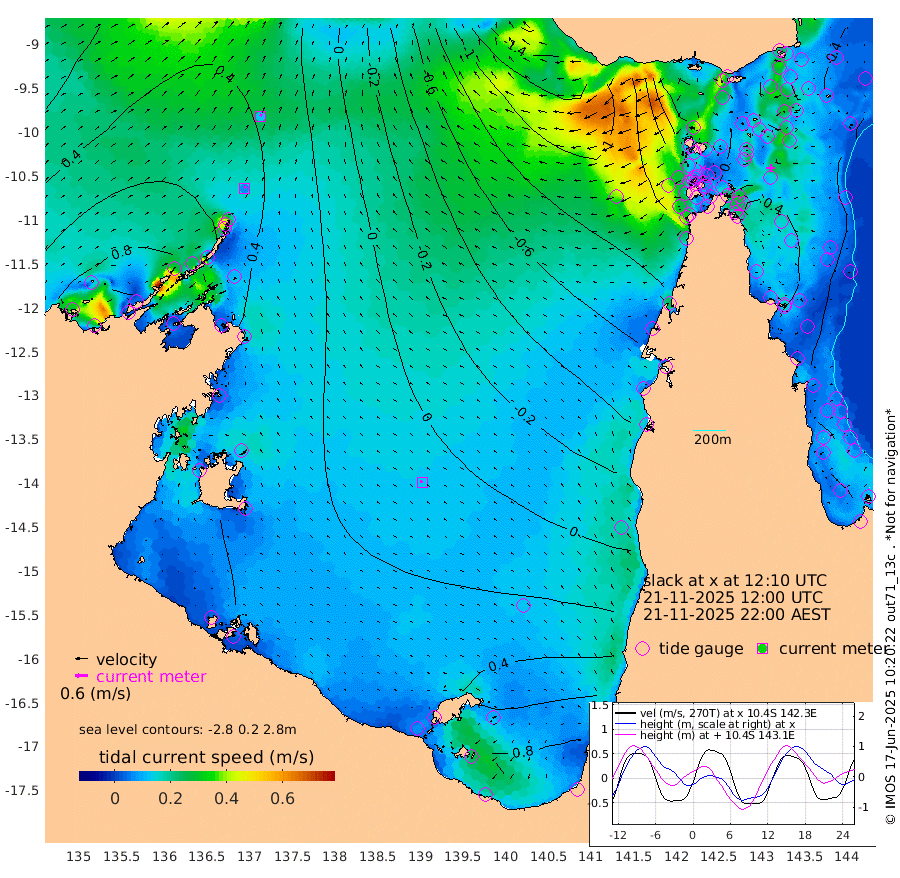 7cm/s 21T +3cm/s rms + 7cm/s -42T. ARA-GOC87 57m 12cm/s -79T +3cm/s rms + 2cm/s -2T. ARA-GOC87 60m 12cm/s 30T +2cm/s rms + 3cm/s 61T. ARA-GOC87 47m 39cm Daru 39cm Bobo Island 14cm Meer Island Barge 36cm Bramble Cay 41cm Unnamed Cay 35cm Pearce Cay 31cm Stephens Island 44cm Merrie England Shoals 47cm Mutacomal Reef 25cm Darnley Island Barge 19cm East Cay 28cm Yorke Island Barge 30cm Rennel Island 27cm Aureed Island 27cm Dungeness Reef 18cm Zagai Island 18cm Yam Island -2cm Dauan Island -2cm Saibai Island 18cm Phipi Reef 24cm Warrior Reef - West -24cm Mabuiag Island Barge 28cm Half Way Island 26cm Coconut Island 26cm Dugong Islet 19cm Poll Island 18cm Kirkcaldie Reef 2cm Suarji Island 14cm Sue Islet -78cm Hawkesbury Island -13cm Alert Patches -8cm Twin Island -57cm Badu Island -9cm St Pauls (Moa Island) -54cm Kubin (Moa Island) -27cm Ince Point -43cm Thursday Island -37cm Nardana Patches -52cm Turtle Head -69cm Round Island -77cm Goods Island -108cm Booby Island -91cm White Rocks Area -132cm Carpentaria -11cm Papou Point -131cm Bampfield Head -96cm Crab Island -99cm Red Wallis Island -65cm Packe Island 24cm Harrington Reef -99cm Herald Camp 2cm Sharp Point -44cm Red Island Point -39cm Possession Island 2cm Alpha Rock 8cm Frederick Point 34cm Wyborn Reef Light 30cm Tetley Island 11cm Triangle Reef 17cm Turtle Head Island 9cm Maclennan Cay 5cm Raine Island 29cm Mcsweeny Reef 28cm Collette Reef 15cm Shadwell Reef 36cm Hannibal Island 32cm Round Point -106cm Vrilya Point 23cm Cape Grenville 19cm Hicks Island 17cm Sir Charles Hardy Island 5cm Harvey Island 21cm Kay Reef 13cm Rocky Island 8cm Chapman Island 3cm Ham Reef 9cm Jubilee Reef 8cm Night Island 4cm Unnamed Reef No. 3 13cm Morris Island 0cm 1st 3 Mile Opening 5cm Creech Reef 9cm Fife Island 16cm Eden Reef 10cm Stanley Island 20cm Normanby River 88cm Yabooma Island 116cm Hutchison River 98cm Elcho Island 101cm North West Crocodile Island 48cm Cape Wessel 92cm Stevens Island 64cm Guluwuru Island 79cm Hopeful Bay 54cm Auster Point 56cm Two Island Bay 100cm Cadell Strait 77cm Mallison Island 61cm Melville Bay (Gove Harbour) 52cm Truant Island 37cm Cape Arnhem 41cm Cape Grey 45cm Hawk Island 42cm Milner Bay (Groote Eylandt) 48cm Cape Beatrice 39cm West Island 31cm Centre Island 82cm Mornington Island 78cm West Wellesley Islands 124cm Bountiful Island 166cm Albert River Mouth 160cm Sweers Island 150cm Karumba 65cm Nassau River Offshore 22cm Christmas Creek -26cm Archer River -54cm Boyd Point -48cm Weipa (Humbug Point) -69cm Pennefather River -93cm Cullen Point