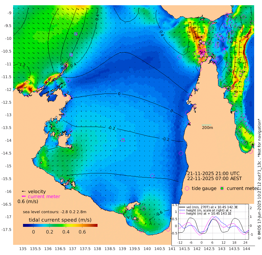 15cm/s 133T +3cm/s rms + 7cm/s -42T. ARA-GOC87 57m 18cm/s 8T +3cm/s rms + 2cm/s -2T. ARA-GOC87 60m 20cm/s 129T +2cm/s rms + 3cm/s 61T. ARA-GOC87 47m -66cm Daru -62cm Bobo Island -6cm Meer Island Barge -22cm Bramble Cay -44cm Unnamed Cay -50cm Pearce Cay -33cm Stephens Island -37cm Merrie England Shoals -66cm Mutacomal Reef -35cm Darnley Island Barge -9cm East Cay -53cm Yorke Island Barge -48cm Rennel Island -63cm Aureed Island -67cm Dungeness Reef -93cm Zagai Island -87cm Yam Island -105cm Dauan Island -112cm Saibai Island -108cm Phipi Reef -110cm Warrior Reef - West -62cm Mabuiag Island Barge -44cm Half Way Island -65cm Coconut Island -58cm Dugong Islet -74cm Poll Island -66cm Kirkcaldie Reef -88cm Suarji Island -80cm Sue Islet 28cm Hawkesbury Island -62cm Alert Patches -66cm Twin Island 1cm Badu Island -75cm St Pauls (Moa Island) 0cm Kubin (Moa Island) -46cm Ince Point -29cm Thursday Island -35cm Nardana Patches -10cm Turtle Head 18cm Round Island 32cm Goods Island 59cm Booby Island 50cm White Rocks Area 63cm Carpentaria -54cm Papou Point 73cm Bampfield Head 57cm Crab Island 46cm Red Wallis Island 9cm Packe Island -60cm Harrington Reef 34cm Herald Camp -34cm Sharp Point -11cm Red Island Point -25cm Possession Island -66cm Alpha Rock -66cm Frederick Point -60cm Wyborn Reef Light -65cm Tetley Island -21cm Triangle Reef -34cm Turtle Head Island -10cm Maclennan Cay 10cm Raine Island -41cm Mcsweeny Reef -36cm Collette Reef -12cm Shadwell Reef -35cm Hannibal Island -19cm Round Point 63cm Vrilya Point -15cm Cape Grenville -9cm Hicks Island -21cm Sir Charles Hardy Island -4cm Harvey Island -5cm Kay Reef -1cm Rocky Island -3cm Chapman Island 2cm Ham Reef 2cm Jubilee Reef 1cm Night Island 2cm Unnamed Reef No. 3 5cm Morris Island 13cm 1st 3 Mile Opening 5cm Creech Reef 1cm Fife Island 10cm Eden Reef 8cm Stanley Island 6cm Normanby River 126cm Yabooma Island 132cm Hutchison River 125cm Elcho Island 116cm North West Crocodile Island 62cm Cape Wessel 100cm Stevens Island 28cm Guluwuru Island 92cm Hopeful Bay 84cm Auster Point 90cm Two Island Bay 87cm Cadell Strait -67cm Mallison Island 31cm Melville Bay (Gove Harbour) 38cm Truant Island 14cm Cape Arnhem 0cm Cape Grey -10cm Hawk Island -13cm Milner Bay (Groote Eylandt) -23cm Cape Beatrice -46cm West Island -42cm Centre Island -87cm Mornington Island -90cm West Wellesley Islands -113cm Bountiful Island -97cm Albert River Mouth -96cm Sweers Island -99cm Karumba -86cm Nassau River Offshore -65cm Christmas Creek -12cm Archer River 5cm Boyd Point 7cm Weipa (Humbug Point) 37cm Pennefather River 40cm Cullen Point