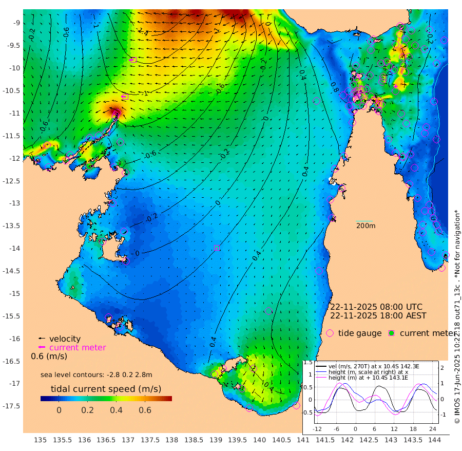 43cm/s -87T +3cm/s rms + 7cm/s -42T. ARA-GOC87 57m 16cm/s -163T +3cm/s rms + 2cm/s -2T. ARA-GOC87 60m 44cm/s -96T +2cm/s rms + 3cm/s 61T. ARA-GOC87 47m -25cm Daru -34cm Bobo Island -5cm Meer Island Barge -20cm Bramble Cay -27cm Unnamed Cay -26cm Pearce Cay -19cm Stephens Island -30cm Merrie England Shoals -33cm Mutacomal Reef -18cm Darnley Island Barge -2cm East Cay -23cm Yorke Island Barge -19cm Rennel Island -24cm Aureed Island -10cm Dungeness Reef -20cm Zagai Island -4cm Yam Island 22cm Dauan Island 11cm Saibai Island 32cm Phipi Reef -4cm Warrior Reef - West 22cm Mabuiag Island Barge -19cm Half Way Island -27cm Coconut Island -15cm Dugong Islet -16cm Poll Island -3cm Kirkcaldie Reef 4cm Suarji Island -14cm Sue Islet 73cm Hawkesbury Island 10cm Alert Patches 1cm Twin Island 58cm Badu Island 5cm St Pauls (Moa Island) 50cm Kubin (Moa Island) 22cm Ince Point 35cm Thursday Island 31cm Nardana Patches 54cm Turtle Head 57cm Round Island 74cm Goods Island 87cm Booby Island 77cm White Rocks Area 61cm Carpentaria 3cm Papou Point 75cm Bampfield Head 75cm Crab Island 78cm Red Wallis Island 62cm Packe Island -22cm Harrington Reef 96cm Herald Camp 0cm Sharp Point 57cm Red Island Point 27cm Possession Island -15cm Alpha Rock -11cm Frederick Point -40cm Wyborn Reef Light -39cm Tetley Island -8cm Triangle Reef -30cm Turtle Head Island 4cm Maclennan Cay 7cm Raine Island -22cm Mcsweeny Reef -20cm Collette Reef -6cm Shadwell Reef -25cm Hannibal Island -19cm Round Point 69cm Vrilya Point -9cm Cape Grenville -2cm Hicks Island 4cm Sir Charles Hardy Island 0cm Harvey Island -5cm Kay Reef 6cm Rocky Island 5cm Chapman Island 7cm Ham Reef 4cm Jubilee Reef 3cm Night Island 6cm Unnamed Reef No. 3 4cm Morris Island 10cm 1st 3 Mile Opening 8cm Creech Reef 3cm Fife Island 1cm Eden Reef 5cm Stanley Island 1cm Normanby River -86cm Yabooma Island -117cm Hutchison River -101cm Elcho Island -88cm North West Crocodile Island -113cm Cape Wessel -125cm Stevens Island -128cm Guluwuru Island -101cm Hopeful Bay -105cm Auster Point -105cm Two Island Bay -131cm Cadell Strait -233cm Mallison Island -107cm Melville Bay (Gove Harbour) -120cm Truant Island -81cm Cape Arnhem -47cm Cape Grey -38cm Hawk Island -18cm Milner Bay (Groote Eylandt) -1cm Cape Beatrice 35cm West Island 32cm Centre Island 61cm Mornington Island 60cm West Wellesley Islands 94cm Bountiful Island 63cm Albert River Mouth 59cm Sweers Island 86cm Karumba 87cm Nassau River Offshore 90cm Christmas Creek 75cm Archer River 66cm Boyd Point 83cm Weipa (Humbug Point) 51cm Pennefather River 74cm Cullen Point