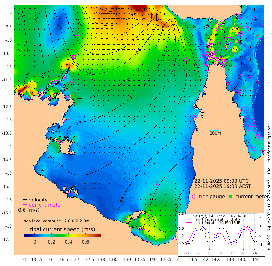 38cm/s -87T +3cm/s rms + 7cm/s -42T. ARA-GOC87 57m 14cm/s -139T +3cm/s rms + 2cm/s -2T. ARA-GOC87 60m 37cm/s -95T +2cm/s rms + 3cm/s 61T. ARA-GOC87 47m -19cm Daru -27cm Bobo Island 2cm Meer Island Barge -7cm Bramble Cay -15cm Unnamed Cay -18cm Pearce Cay -10cm Stephens Island -17cm Merrie England Shoals -25cm Mutacomal Reef -12cm Darnley Island Barge 7cm East Cay -19cm Yorke Island Barge -13cm Rennel Island -22cm Aureed Island -9cm Dungeness Reef -28cm Zagai Island -11cm Yam Island 4cm Dauan Island -10cm Saibai Island 23cm Phipi Reef -14cm Warrior Reef - West 3cm Mabuiag Island Barge -13cm Half Way Island -27cm Coconut Island -13cm Dugong Islet -20cm Poll Island -5cm Kirkcaldie Reef -10cm Suarji Island -22cm Sue Islet 53cm Hawkesbury Island -4cm Alert Patches -12cm Twin Island 41cm Badu Island -11cm St Pauls (Moa Island) 33cm Kubin (Moa Island) 6cm Ince Point 16cm Thursday Island 13cm Nardana Patches 36cm Turtle Head 38cm Round Island 54cm Goods Island 60cm Booby Island 54cm White Rocks Area 22cm Carpentaria -8cm Papou Point 42cm Bampfield Head 51cm Crab Island 50cm Red Wallis Island 41cm Packe Island -21cm Harrington Reef 67cm Herald Camp -5cm Sharp Point 41cm Red Island Point 11cm Possession Island -26cm Alpha Rock -18cm Frederick Point -35cm Wyborn Reef Light -36cm Tetley Island -6cm Triangle Reef -25cm Turtle Head Island 8cm Maclennan Cay 14cm Raine Island -15cm Mcsweeny Reef -13cm Collette Reef 0cm Shadwell Reef -15cm Hannibal Island -7cm Round Point 42cm Vrilya Point 0cm Cape Grenville 7cm Hicks Island 8cm Sir Charles Hardy Island 2cm Harvey Island 4cm Kay Reef 13cm Rocky Island 9cm Chapman Island 10cm Ham Reef 10cm Jubilee Reef 8cm Night Island 9cm Unnamed Reef No. 3 12cm Morris Island 16cm 1st 3 Mile Opening 13cm Creech Reef 8cm Fife Island 12cm Eden Reef 12cm Stanley Island 13cm Normanby River -16cm Yabooma Island -31cm Hutchison River -28cm Elcho Island -15cm North West Crocodile Island -77cm Cape Wessel -61cm Stevens Island -92cm Guluwuru Island -45cm Hopeful Bay -60cm Auster Point -58cm Two Island Bay -64cm Cadell Strait -221cm Mallison Island -72cm Melville Bay (Gove Harbour) -86cm Truant Island -61cm Cape Arnhem -28cm Cape Grey -21cm Hawk Island -4cm Milner Bay (Groote Eylandt) 13cm Cape Beatrice 37cm West Island 33cm Centre Island 74cm Mornington Island 70cm West Wellesley Islands 120cm Bountiful Island 109cm Albert River Mouth 103cm Sweers Island 127cm Karumba 95cm Nassau River Offshore 85cm Christmas Creek 64cm Archer River 47cm Boyd Point 67cm Weipa (Humbug Point) 33cm Pennefather River 46cm Cullen Point