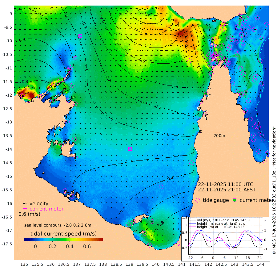 15cm/s -78T +3cm/s rms + 7cm/s -42T. ARA-GOC87 57m 15cm/s -98T +3cm/s rms + 2cm/s -2T. ARA-GOC87 60m 11cm/s -70T +2cm/s rms + 3cm/s 61T. ARA-GOC87 47m 15cm Daru 11cm Bobo Island 15cm Meer Island Barge 23cm Bramble Cay 21cm Unnamed Cay 16cm Pearce Cay 17cm Stephens Island 22cm Merrie England Shoals 16cm Mutacomal Reef 12cm Darnley Island Barge 19cm East Cay 9cm Yorke Island Barge 14cm Rennel Island 5cm Aureed Island 13cm Dungeness Reef -7cm Zagai Island 2cm Yam Island -5cm Dauan Island -15cm Saibai Island 25cm Phipi Reef 3cm Warrior Reef - West -18cm Mabuiag Island Barge 13cm Half Way Island 1cm Coconut Island 9cm Dugong Islet -1cm Poll Island 9cm Kirkcaldie Reef -9cm Suarji Island -7cm Sue Islet -17cm Hawkesbury Island -13cm Alert Patches -15cm Twin Island -11cm Badu Island -16cm St Pauls (Moa Island) -16cm Kubin (Moa Island) -18cm Ince Point -21cm Thursday Island -19cm Nardana Patches -14cm Turtle Head -21cm Round Island -17cm Goods Island -35cm Booby Island -28cm White Rocks Area -80cm Carpentaria -13cm Papou Point -58cm Bampfield Head -31cm Crab Island -38cm Red Wallis Island -21cm Packe Island 4cm Harrington Reef -27cm Herald Camp -5cm Sharp Point -5cm Red Island Point -18cm Possession Island -19cm Alpha Rock -8cm Frederick Point 2cm Wyborn Reef Light -2cm Tetley Island 5cm Triangle Reef 3cm Turtle Head Island 13cm Maclennan Cay 14cm Raine Island 11cm Mcsweeny Reef 13cm Collette Reef 13cm Shadwell Reef 18cm Hannibal Island 21cm Round Point -45cm Vrilya Point 17cm Cape Grenville 20cm Hicks Island 16cm Sir Charles Hardy Island 5cm Harvey Island 19cm Kay Reef 18cm Rocky Island 11cm Chapman Island 9cm Ham Reef 14cm Jubilee Reef 11cm Night Island 9cm Unnamed Reef No. 3 19cm Morris Island 14cm 1st 3 Mile Opening 13cm Creech Reef 10cm Fife Island 23cm Eden Reef 17cm Stanley Island 24cm Normanby River 84cm Yabooma Island 102cm Hutchison River 86cm Elcho Island 93cm North West Crocodile Island 5cm Cape Wessel 56cm Stevens Island 9cm Guluwuru Island 54cm Hopeful Bay 26cm Auster Point 29cm Two Island Bay 64cm Cadell Strait -79cm Mallison Island 16cm Melville Bay (Gove Harbour) 2cm Truant Island 0cm Cape Arnhem 20cm Cape Grey 24cm Hawk Island 27cm Milner Bay (Groote Eylandt) 38cm Cape Beatrice 38cm West Island 31cm Centre Island 90cm Mornington Island 83cm West Wellesley Islands 145cm Bountiful Island 173cm Albert River Mouth 168cm Sweers Island 173cm Karumba 89cm Nassau River Offshore 55cm Christmas Creek 17cm Archer River -13cm Boyd Point 5cm Weipa (Humbug Point) -24cm Pennefather River -38cm Cullen Point