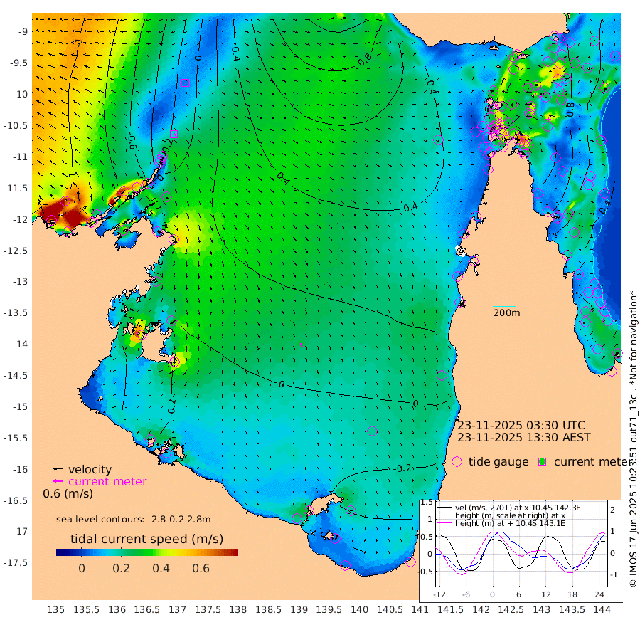 16cm/s 117T +3cm/s rms + 7cm/s -42T. ARA-GOC87 57m 29cm/s 160T +3cm/s rms + 2cm/s -2T. ARA-GOC87 60m 5cm/s 122T +2cm/s rms + 3cm/s 61T. ARA-GOC87 47m 106cm Daru 100cm Bobo Island 55cm Meer Island Barge 71cm Bramble Cay 94cm Unnamed Cay 92cm Pearce Cay 82cm Stephens Island 89cm Merrie England Shoals 109cm Mutacomal Reef 83cm Darnley Island Barge 58cm East Cay 96cm Yorke Island Barge 94cm Rennel Island 99cm Aureed Island 103cm Dungeness Reef 119cm Zagai Island 114cm Yam Island 126cm Dauan Island 128cm Saibai Island 118cm Phipi Reef 127cm Warrior Reef - West 102cm Mabuiag Island Barge 88cm Half Way Island 110cm Coconut Island 98cm Dugong Islet 109cm Poll Island 103cm Kirkcaldie Reef 117cm Suarji Island 114cm Sue Islet 87cm Hawkesbury Island 115cm Alert Patches 114cm Twin Island 89cm Badu Island 116cm St Pauls (Moa Island) 91cm Kubin (Moa Island) 104cm Ince Point 97cm Thursday Island 99cm Nardana Patches 92cm Turtle Head 91cm Round Island 76cm Goods Island 66cm Booby Island 63cm White Rocks Area 61cm Carpentaria 98cm Papou Point 97cm Bampfield Head 51cm Crab Island 69cm Red Wallis Island 90cm Packe Island 104cm Harrington Reef 93cm Herald Camp 34cm Sharp Point 74cm Red Island Point 99cm Possession Island 111cm Alpha Rock 112cm Frederick Point 115cm Wyborn Reef Light 118cm Tetley Island 68cm Triangle Reef 103cm Turtle Head Island 57cm Maclennan Cay 40cm Raine Island 88cm Mcsweeny Reef 85cm Collette Reef 63cm Shadwell Reef 87cm Hannibal Island 75cm Round Point 44cm Vrilya Point 67cm Cape Grenville 60cm Hicks Island 74cm Sir Charles Hardy Island 20cm Harvey Island 59cm Kay Reef 49cm Rocky Island 54cm Chapman Island 48cm Ham Reef 48cm Jubilee Reef 45cm Night Island 49cm Unnamed Reef No. 3 46cm Morris Island 44cm 1st 3 Mile Opening 47cm Creech Reef 47cm Fife Island 47cm Eden Reef 48cm Stanley Island 45cm Normanby River -81cm Yabooma Island -84cm Hutchison River -89cm Elcho Island -95cm North West Crocodile Island -11cm Cape Wessel -52cm Stevens Island 24cm Guluwuru Island -48cm Hopeful Bay -30cm Auster Point -36cm Two Island Bay -40cm Cadell Strait 183cm Mallison Island 10cm Melville Bay (Gove Harbour) 19cm Truant Island 16cm Cape Arnhem -12cm Cape Grey -15cm Hawk Island -53cm Milner Bay (Groote Eylandt) -57cm Cape Beatrice -76cm West Island -71cm Centre Island -60cm Mornington Island -58cm West Wellesley Islands -83cm Bountiful Island -138cm Albert River Mouth -147cm Sweers Island -125cm Karumba -23cm Nassau River Offshore 22cm Christmas Creek 36cm Archer River 50cm Boyd Point 44cm Weipa (Humbug Point) 35cm Pennefather River 53cm Cullen Point