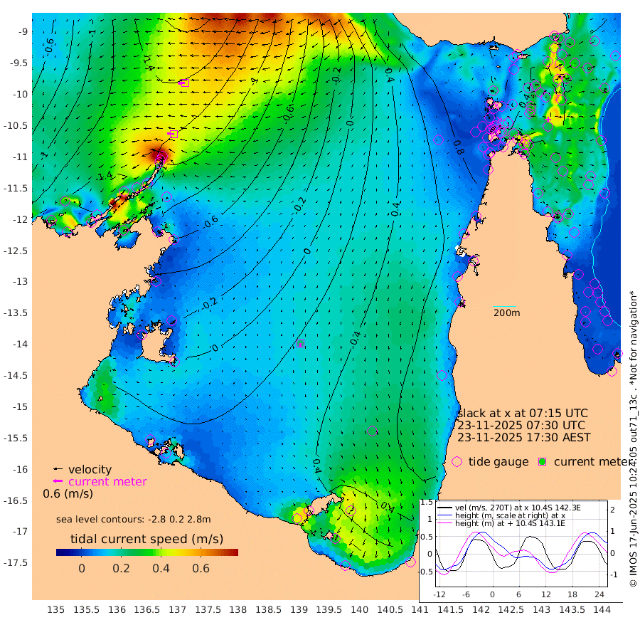 44cm/s -87T +3cm/s rms + 7cm/s -42T. ARA-GOC87 57m 22cm/s -179T +3cm/s rms + 2cm/s -2T. ARA-GOC87 60m 49cm/s -95T +2cm/s rms + 3cm/s 61T. ARA-GOC87 47m -9cm Daru -17cm Bobo Island -4cm Meer Island Barge -16cm Bramble Cay -16cm Unnamed Cay -13cm Pearce Cay -10cm Stephens Island -20cm Merrie England Shoals -15cm Mutacomal Reef -9cm Darnley Island Barge 1cm East Cay -9cm Yorke Island Barge -5cm Rennel Island -5cm Aureed Island 6cm Dungeness Reef 7cm Zagai Island 20cm Yam Island 48cm Dauan Island 42cm Saibai Island 52cm Phipi Reef 24cm Warrior Reef - West 46cm Mabuiag Island Barge -7cm Half Way Island -5cm Coconut Island 1cm Dugong Islet 7cm Poll Island 15cm Kirkcaldie Reef 32cm Suarji Island 10cm Sue Islet 86cm Hawkesbury Island 36cm Alert Patches 29cm Twin Island 69cm Badu Island 32cm St Pauls (Moa Island) 66cm Kubin (Moa Island) 46cm Ince Point 57cm Thursday Island 54cm Nardana Patches 71cm Turtle Head 75cm Round Island 84cm Goods Island 98cm Booby Island 86cm White Rocks Area 85cm Carpentaria 25cm Papou Point 95cm Bampfield Head 84cm Crab Island 94cm Red Wallis Island 83cm Packe Island -1cm Harrington Reef 115cm Herald Camp 11cm Sharp Point 70cm Red Island Point 49cm Possession Island 14cm Alpha Rock 15cm Frederick Point -18cm Wyborn Reef Light -14cm Tetley Island 2cm Triangle Reef -17cm Turtle Head Island 8cm Maclennan Cay 5cm Raine Island -9cm Mcsweeny Reef -9cm Collette Reef -1cm Shadwell Reef -16cm Hannibal Island -12cm Round Point 81cm Vrilya Point -2cm Cape Grenville 1cm Hicks Island 9cm Sir Charles Hardy Island 1cm Harvey Island -2cm Kay Reef 6cm Rocky Island 9cm Chapman Island 10cm Ham Reef 3cm Jubilee Reef 6cm Night Island 10cm Unnamed Reef No. 3 3cm Morris Island 6cm 1st 3 Mile Opening 8cm Creech Reef 8cm Fife Island -3cm Eden Reef 4cm Stanley Island -1cm Normanby River -152cm Yabooma Island -192cm Hutchison River -168cm Elcho Island -155cm North West Crocodile Island -136cm Cape Wessel -175cm Stevens Island -150cm Guluwuru Island -145cm Hopeful Bay -141cm Auster Point -142cm Two Island Bay -185cm Cadell Strait -194cm Mallison Island -128cm Melville Bay (Gove Harbour) -138cm Truant Island -90cm Cape Arnhem -62cm Cape Grey -48cm Hawk Island -32cm Milner Bay (Groote Eylandt) -15cm Cape Beatrice 26cm West Island 26cm Centre Island 48cm Mornington Island 47cm West Wellesley Islands 62cm Bountiful Island 14cm Albert River Mouth 13cm Sweers Island 44cm Karumba 80cm Nassau River Offshore 93cm Christmas Creek 81cm Archer River 79cm Boyd Point 89cm Weipa (Humbug Point) 60cm Pennefather River 90cm Cullen Point