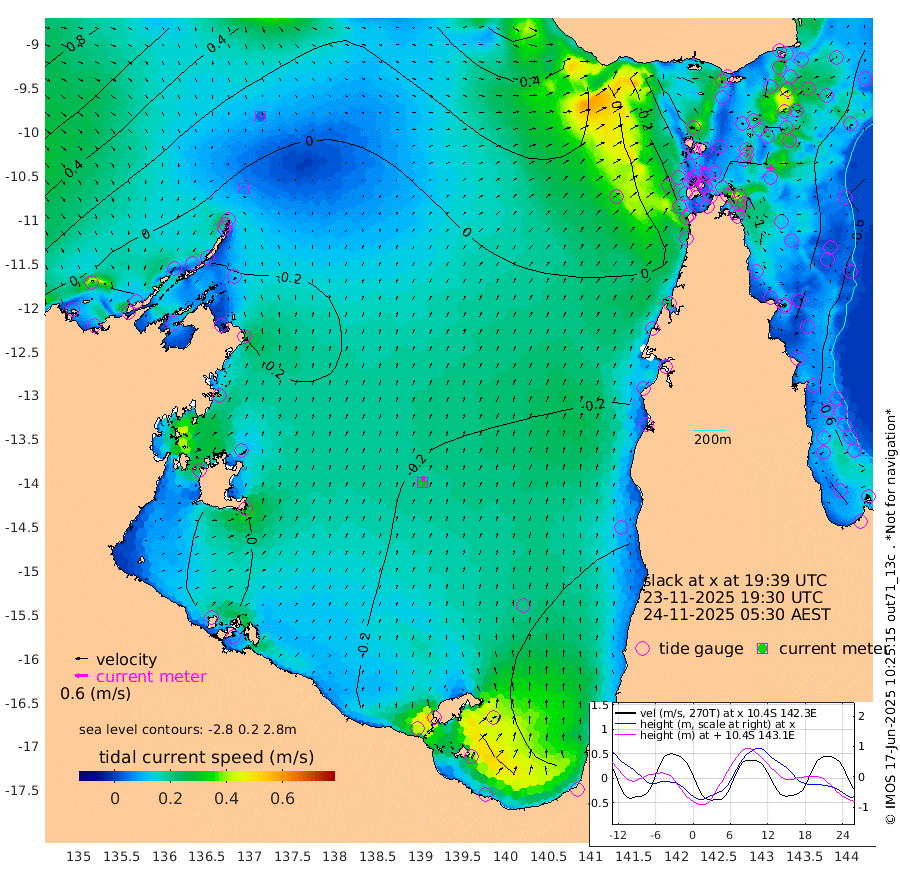 6cm/s -15T +3cm/s rms + 7cm/s -42T. ARA-GOC87 57m 30cm/s 12T +3cm/s rms + 2cm/s -2T. ARA-GOC87 60m 4cm/s 88T +2cm/s rms + 3cm/s 61T. ARA-GOC87 47m -114cm Daru -104cm Bobo Island -68cm Meer Island Barge -89cm Bramble Cay -107cm Unnamed Cay -103cm Pearce Cay -94cm Stephens Island -103cm Merrie England Shoals -115cm Mutacomal Reef -90cm Darnley Island Barge -72cm East Cay -99cm Yorke Island Barge -101cm Rennel Island -97cm Aureed Island -113cm Dungeness Reef -107cm Zagai Island -111cm Yam Island -124cm Dauan Island -108cm Saibai Island -148cm Phipi Reef -125cm Warrior Reef - West -82cm Mabuiag Island Barge -96cm Half Way Island -103cm Coconut Island -103cm Dugong Islet -104cm Poll Island -107cm Kirkcaldie Reef -104cm Suarji Island -101cm Sue Islet -79cm Hawkesbury Island -98cm Alert Patches -95cm Twin Island -83cm Badu Island -99cm St Pauls (Moa Island) -82cm Kubin (Moa Island) -86cm Ince Point -78cm Thursday Island -81cm Nardana Patches -82cm Turtle Head -79cm Round Island -66cm Goods Island -39cm Booby Island -40cm White Rocks Area 17cm Carpentaria -82cm Papou Point -47cm Bampfield Head -27cm Crab Island -37cm Red Wallis Island -75cm Packe Island -100cm Harrington Reef -78cm Herald Camp -27cm Sharp Point -70cm Red Island Point -84cm Possession Island -85cm Alpha Rock -99cm Frederick Point -108cm Wyborn Reef Light -107cm Tetley Island -69cm Triangle Reef -104cm Turtle Head Island -66cm Maclennan Cay -52cm Raine Island -93cm Mcsweeny Reef -90cm Collette Reef -71cm Shadwell Reef -98cm Hannibal Island -89cm Round Point -6cm Vrilya Point -78cm Cape Grenville -77cm Hicks Island -84cm Sir Charles Hardy Island -24cm Harvey Island -70cm Kay Reef -64cm Rocky Island -59cm Chapman Island -52cm Ham Reef -58cm Jubilee Reef -55cm Night Island -51cm Unnamed Reef No. 3 -62cm Morris Island -57cm 1st 3 Mile Opening -57cm Creech Reef -52cm Fife Island -67cm Eden Reef -61cm Stanley Island -64cm Normanby River -22cm Yabooma Island -39cm Hutchison River -15cm Elcho Island -16cm North West Crocodile Island 2cm Cape Wessel -17cm Stevens Island -36cm Guluwuru Island -17cm Hopeful Bay -7cm Auster Point -8cm Two Island Bay -42cm Cadell Strait -78cm Mallison Island -30cm Melville Bay (Gove Harbour) -26cm Truant Island -18cm Cape Arnhem -7cm Cape Grey -10cm Hawk Island 29cm Milner Bay (Groote Eylandt) 22cm Cape Beatrice 45cm West Island 45cm Centre Island -27cm Mornington Island -19cm West Wellesley Islands -57cm Bountiful Island -35cm Albert River Mouth -22cm Sweers Island -50cm Karumba -64cm Nassau River Offshore -76cm Christmas Creek -54cm Archer River -40cm Boyd Point -53cm Weipa (Humbug Point) -17cm Pennefather River -21cm Cullen Point