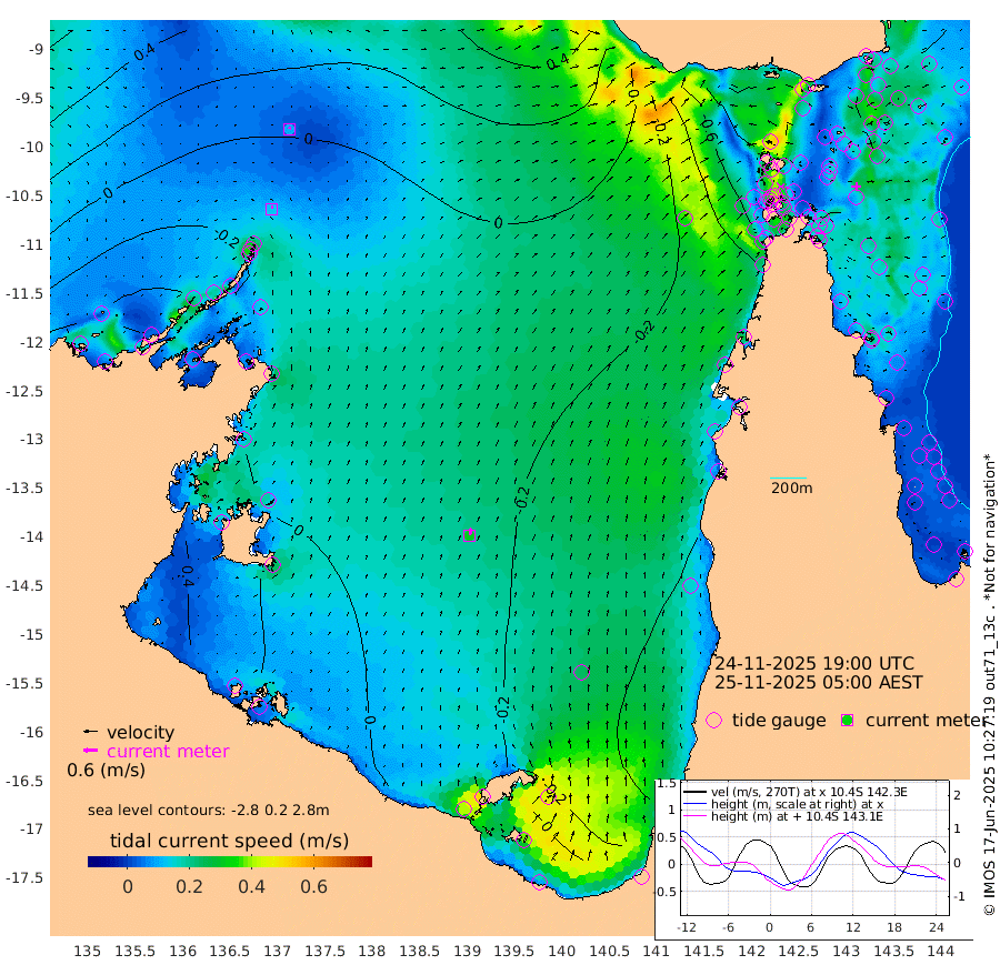 13cm/s 2T +3cm/s rms + 7cm/s -42T. ARA-GOC87 57m 30cm/s 12T +3cm/s rms + 2cm/s -2T. ARA-GOC87 60m 10cm/s 32T +2cm/s rms + 3cm/s 61T. ARA-GOC87 47m -92cm Daru -83cm Bobo Island -67cm Meer Island Barge -79cm Bramble Cay -90cm Unnamed Cay -89cm Pearce Cay -84cm Stephens Island -84cm Merrie England Shoals -90cm Mutacomal Reef -78cm Darnley Island Barge -70cm East Cay -82cm Yorke Island Barge -87cm Rennel Island -80cm Aureed Island -99cm Dungeness Reef -85cm Zagai Island -96cm Yam Island -112cm Dauan Island -86cm Saibai Island -132cm Phipi Reef -103cm Warrior Reef - West -78cm Mabuiag Island Barge -86cm Half Way Island -84cm Coconut Island -90cm Dugong Islet -88cm Poll Island -94cm Kirkcaldie Reef -90cm Suarji Island -79cm Sue Islet -122cm Hawkesbury Island -92cm Alert Patches -88cm Twin Island -113cm Badu Island -91cm St Pauls (Moa Island) -114cm Kubin (Moa Island) -91cm Ince Point -93cm Thursday Island -93cm Nardana Patches -109cm Turtle Head -114cm Round Island -114cm Goods Island -99cm Booby Island -94cm White Rocks Area -34cm Carpentaria -79cm Papou Point -107cm Bampfield Head -78cm Crab Island -92cm Red Wallis Island -116cm Packe Island -84cm Harrington Reef -131cm Herald Camp -18cm Sharp Point -90cm Red Island Point -94cm Possession Island -70cm Alpha Rock -86cm Frederick Point -85cm Wyborn Reef Light -84cm Tetley Island -65cm Triangle Reef -94cm Turtle Head Island -68cm Maclennan Cay -58cm Raine Island -78cm Mcsweeny Reef -75cm Collette Reef -66cm Shadwell Reef -82cm Hannibal Island -80cm Round Point -54cm Vrilya Point -72cm Cape Grenville -75cm Hicks Island -82cm Sir Charles Hardy Island -23cm Harvey Island -65cm Kay Reef -65cm Rocky Island -60cm Chapman Island -54cm Ham Reef -60cm Jubilee Reef -58cm Night Island -53cm Unnamed Reef No. 3 -65cm Morris Island -66cm 1st 3 Mile Opening -62cm Creech Reef -53cm Fife Island -73cm Eden Reef -64cm Stanley Island -66cm Normanby River -61cm Yabooma Island -77cm Hutchison River -49cm Elcho Island -49cm North West Crocodile Island -5cm Cape Wessel -34cm Stevens Island -27cm Guluwuru Island -34cm Hopeful Bay -22cm Auster Point -29cm Two Island Bay -59cm Cadell Strait 6cm Mallison Island -25cm Melville Bay (Gove Harbour) -22cm Truant Island -10cm Cape Arnhem 7cm Cape Grey 6cm Hawk Island 47cm Milner Bay (Groote Eylandt) 41cm Cape Beatrice 70cm West Island 68cm Centre Island 5cm Mornington Island 15cm West Wellesley Islands -17cm Bountiful Island 5cm Albert River Mouth 28cm Sweers Island -12cm Karumba -46cm Nassau River Offshore -73cm Christmas Creek -69cm Archer River -63cm Boyd Point -82cm Weipa (Humbug Point) -45cm Pennefather River -65cm Cullen Point