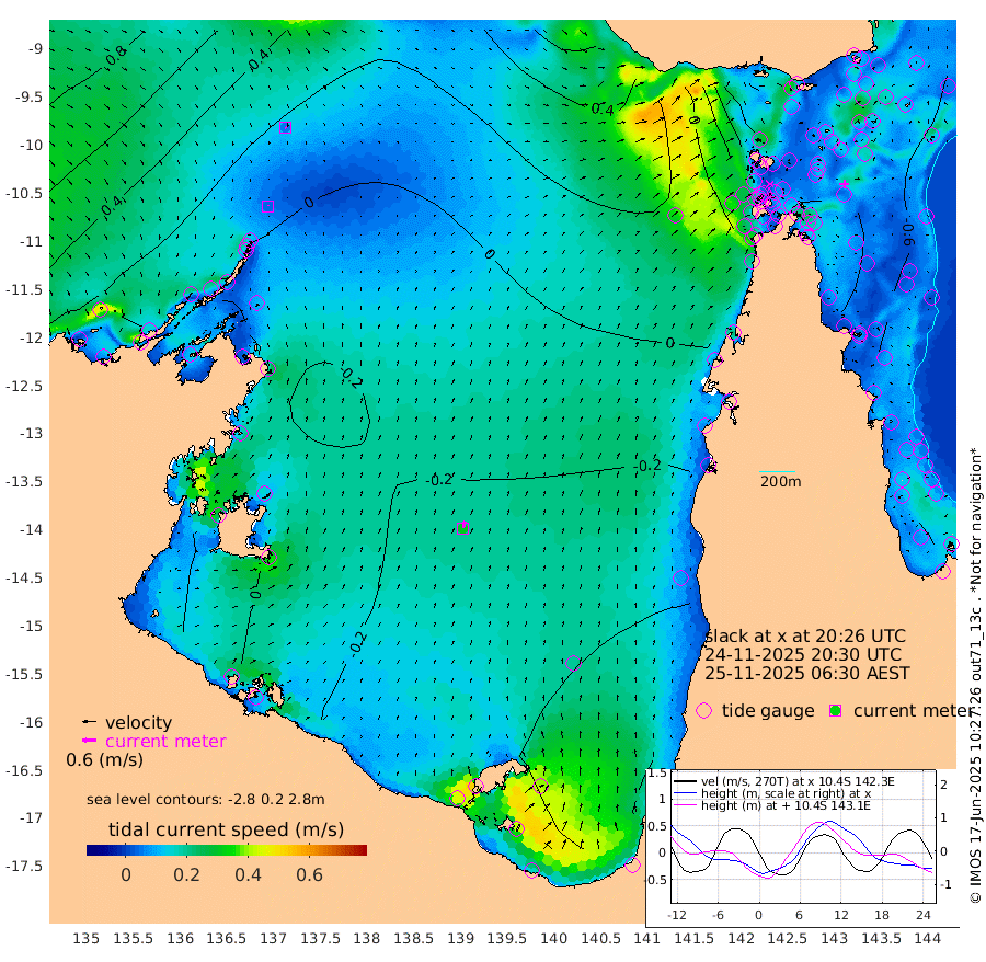 4cm/s -20T +3cm/s rms + 7cm/s -42T. ARA-GOC87 57m 31cm/s 12T +3cm/s rms + 2cm/s -2T. ARA-GOC87 60m 6cm/s 125T +2cm/s rms + 3cm/s 61T. ARA-GOC87 47m -97cm Daru -85cm Bobo Island -54cm Meer Island Barge -71cm Bramble Cay -89cm Unnamed Cay -84cm Pearce Cay -76cm Stephens Island -83cm Merrie England Shoals -96cm Mutacomal Reef -76cm Darnley Island Barge -55cm East Cay -84cm Yorke Island Barge -82cm Rennel Island -81cm Aureed Island -96cm Dungeness Reef -94cm Zagai Island -97cm Yam Island -120cm Dauan Island -103cm Saibai Island -137cm Phipi Reef -115cm Warrior Reef - West -70cm Mabuiag Island Barge -79cm Half Way Island -83cm Coconut Island -86cm Dugong Islet -88cm Poll Island -89cm Kirkcaldie Reef -86cm Suarji Island -87cm Sue Islet -53cm Hawkesbury Island -79cm Alert Patches -77cm Twin Island -58cm Badu Island -83cm St Pauls (Moa Island) -60cm Kubin (Moa Island) -68cm Ince Point -59cm Thursday Island -63cm Nardana Patches -61cm Turtle Head -54cm Round Island -41cm Goods Island -14cm Booby Island -13cm White Rocks Area 36cm Carpentaria -64cm Papou Point -14cm Bampfield Head -6cm Crab Island -14cm Red Wallis Island -53cm Packe Island -79cm Harrington Reef -53cm Herald Camp -25cm Sharp Point -46cm Red Island Point -62cm Possession Island -71cm Alpha Rock -80cm Frederick Point -89cm Wyborn Reef Light -88cm Tetley Island -56cm Triangle Reef -82cm Turtle Head Island -52cm Maclennan Cay -39cm Raine Island -76cm Mcsweeny Reef -75cm Collette Reef -59cm Shadwell Reef -80cm Hannibal Island -70cm Round Point 10cm Vrilya Point -62cm Cape Grenville -60cm Hicks Island -67cm Sir Charles Hardy Island -19cm Harvey Island -53cm Kay Reef -49cm Rocky Island -46cm Chapman Island -39cm Ham Reef -45cm Jubilee Reef -43cm Night Island -38cm Unnamed Reef No. 3 -46cm Morris Island -43cm 1st 3 Mile Opening -44cm Creech Reef -41cm Fife Island -52cm Eden Reef -47cm Stanley Island -48cm Normanby River 1cm Yabooma Island -9cm Hutchison River 9cm Elcho Island 8cm North West Crocodile Island 14cm Cape Wessel 1cm Stevens Island -28cm Guluwuru Island -2cm Hopeful Bay 8cm Auster Point 4cm Two Island Bay -27cm Cadell Strait -102cm Mallison Island -23cm Melville Bay (Gove Harbour) -18cm Truant Island -15cm Cape Arnhem -5cm Cape Grey -12cm Hawk Island 21cm Milner Bay (Groote Eylandt) 14cm Cape Beatrice 31cm West Island 32cm Centre Island -42cm Mornington Island -37cm West Wellesley Islands -71cm Bountiful Island -55cm Albert River Mouth -45cm Sweers Island -67cm Karumba -75cm Nassau River Offshore -79cm Christmas Creek -47cm Archer River -31cm Boyd Point -42cm Weipa (Humbug Point) -8cm Pennefather River -9cm Cullen Point