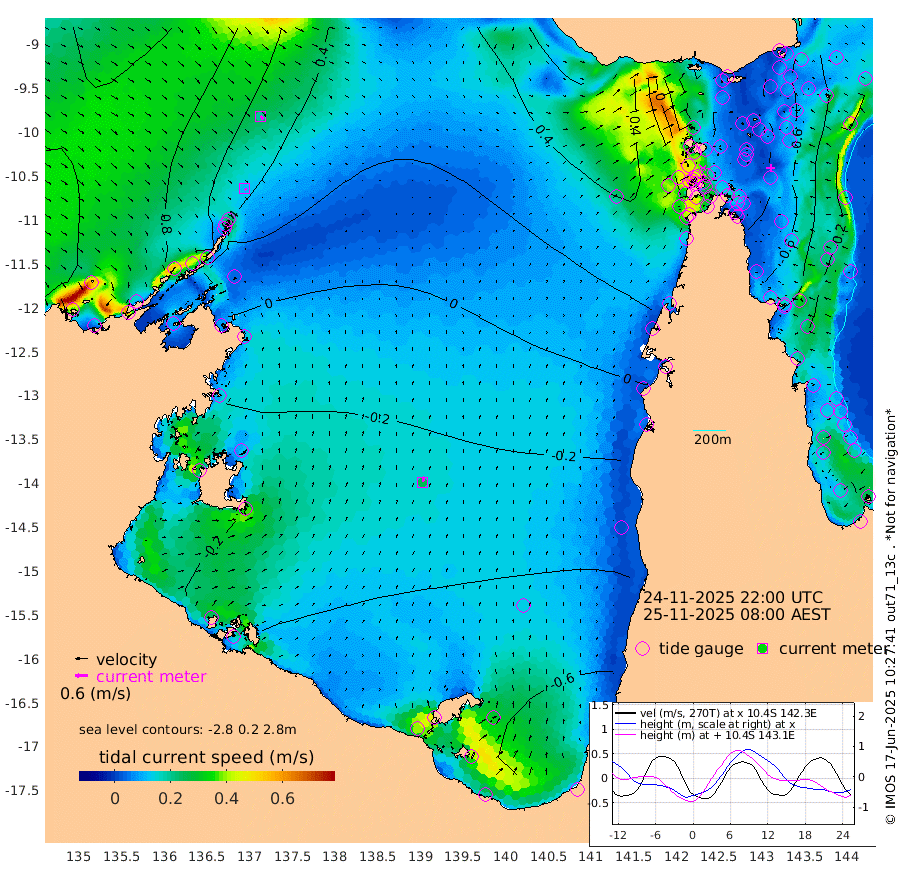 11cm/s 137T +3cm/s rms + 7cm/s -42T. ARA-GOC87 57m 26cm/s 12T +3cm/s rms + 2cm/s -2T. ARA-GOC87 60m 19cm/s 134T +2cm/s rms + 3cm/s 61T. ARA-GOC87 47m -69cm Daru -56cm Bobo Island -23cm Meer Island Barge -38cm Bramble Cay -56cm Unnamed Cay -49cm Pearce Cay -42cm Stephens Island -53cm Merrie England Shoals -69cm Mutacomal Reef -46cm Darnley Island Barge -23cm East Cay -57cm Yorke Island Barge -50cm Rennel Island -54cm Aureed Island -63cm Dungeness Reef -73cm Zagai Island -69cm Yam Island -94cm Dauan Island -91cm Saibai Island -104cm Phipi Reef -92cm Warrior Reef - West -45cm Mabuiag Island Barge -46cm Half Way Island -54cm Coconut Island -54cm Dugong Islet -59cm Poll Island -57cm Kirkcaldie Reef -59cm Suarji Island -68cm Sue Islet 18cm Hawkesbury Island -48cm Alert Patches -46cm Twin Island 4cm Badu Island -53cm St Pauls (Moa Island) 1cm Kubin (Moa Island) -31cm Ince Point -17cm Thursday Island -22cm Nardana Patches -6cm Turtle Head 10cm Round Island 29cm Goods Island 57cm Booby Island 56cm White Rocks Area 78cm Carpentaria -32cm Papou Point 64cm Bampfield Head 51cm Crab Island 49cm Red Wallis Island 9cm Packe Island -49cm Harrington Reef 20cm Herald Camp -26cm Sharp Point 0cm Red Island Point -19cm Possession Island -51cm Alpha Rock -51cm Frederick Point -60cm Wyborn Reef Light -61cm Tetley Island -29cm Triangle Reef -40cm Turtle Head Island -19cm Maclennan Cay -7cm Raine Island -48cm Mcsweeny Reef -48cm Collette Reef -31cm Shadwell Reef -50cm Hannibal Island -36cm Round Point 56cm Vrilya Point -31cm Cape Grenville -25cm Hicks Island -32cm Sir Charles Hardy Island -9cm Harvey Island -24cm Kay Reef -19cm Rocky Island -18cm Chapman Island -13cm Ham Reef -15cm Jubilee Reef -16cm Night Island -12cm Unnamed Reef No. 3 -14cm Morris Island -7cm 1st 3 Mile Opening -12cm Creech Reef -18cm Fife Island -13cm Eden Reef -15cm Stanley Island -14cm Normanby River 92cm Yabooma Island 100cm Hutchison River 97cm Elcho Island 91cm North West Crocodile Island 57cm Cape Wessel 69cm Stevens Island 14cm Guluwuru Island 59cm Hopeful Bay 63cm Auster Point 64cm Two Island Bay 52cm Cadell Strait -135cm Mallison Island 14cm Melville Bay (Gove Harbour) 21cm Truant Island 4cm Cape Arnhem -2cm Cape Grey -17cm Hawk Island -6cm Milner Bay (Groote Eylandt) -15cm Cape Beatrice -25cm West Island -21cm Centre Island -87cm Mornington Island -86cm West Wellesley Islands -113cm Bountiful Island -101cm Albert River Mouth -108cm Sweers Island -111cm Karumba -95cm Nassau River Offshore -77cm Christmas Creek -27cm Archer River -4cm Boyd Point -6cm Weipa (Humbug Point) 20cm Pennefather River 32cm Cullen Point