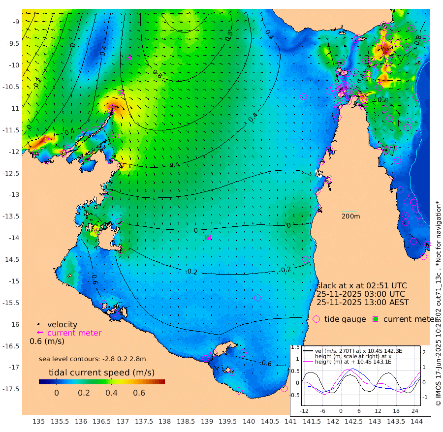37cm/s 114T +3cm/s rms + 7cm/s -42T. ARA-GOC87 57m 22cm/s 158T +3cm/s rms + 2cm/s -2T. ARA-GOC87 60m 28cm/s 108T +2cm/s rms + 3cm/s 61T. ARA-GOC87 47m 100cm Daru 95cm Bobo Island 73cm Meer Island Barge 86cm Bramble Cay 101cm Unnamed Cay 93cm Pearce Cay 91cm Stephens Island 97cm Merrie England Shoals 103cm Mutacomal Reef 91cm Darnley Island Barge 72cm East Cay 95cm Yorke Island Barge 94cm Rennel Island 88cm Aureed Island 94cm Dungeness Reef 93cm Zagai Island 93cm Yam Island 95cm Dauan Island 86cm Saibai Island 83cm Phipi Reef 95cm Warrior Reef - West 74cm Mabuiag Island Barge 92cm Half Way Island 95cm Coconut Island 96cm Dugong Islet 92cm Poll Island 91cm Kirkcaldie Reef 81cm Suarji Island 91cm Sue Islet 91cm Hawkesbury Island 86cm Alert Patches 89cm Twin Island 88cm Badu Island 89cm St Pauls (Moa Island) 91cm Kubin (Moa Island) 83cm Ince Point 81cm Thursday Island 82cm Nardana Patches 84cm Turtle Head 86cm Round Island 83cm Goods Island 74cm Booby Island 72cm White Rocks Area 55cm Carpentaria 79cm Papou Point 99cm Bampfield Head 57cm Crab Island 72cm Red Wallis Island 86cm Packe Island 93cm Harrington Reef 90cm Herald Camp 17cm Sharp Point 60cm Red Island Point 78cm Possession Island 87cm Alpha Rock 92cm Frederick Point 107cm Wyborn Reef Light 106cm Tetley Island 71cm Triangle Reef 110cm Turtle Head Island 70cm Maclennan Cay 60cm Raine Island 91cm Mcsweeny Reef 87cm Collette Reef 73cm Shadwell Reef 94cm Hannibal Island 87cm Round Point 47cm Vrilya Point 77cm Cape Grenville 76cm Hicks Island 87cm Sir Charles Hardy Island 23cm Harvey Island 72cm Kay Reef 64cm Rocky Island 63cm Chapman Island 60cm Ham Reef 66cm Jubilee Reef 58cm Night Island 59cm Unnamed Reef No. 3 65cm Morris Island 68cm 1st 3 Mile Opening 65cm Creech Reef 59cm Fife Island 74cm Eden Reef 68cm Stanley Island 68cm Normanby River 60cm Yabooma Island 77cm Hutchison River 49cm Elcho Island 37cm North West Crocodile Island 71cm Cape Wessel 70cm Stevens Island 107cm Guluwuru Island 55cm Hopeful Bay 66cm Auster Point 69cm Two Island Bay 95cm Cadell Strait 218cm Mallison Island 81cm Melville Bay (Gove Harbour) 94cm Truant Island 59cm Cape Arnhem 13cm Cape Grey -7cm Hawk Island -56cm Milner Bay (Groote Eylandt) -67cm Cape Beatrice -114cm West Island -114cm Centre Island -107cm Mornington Island -103cm West Wellesley Islands -127cm Bountiful Island -160cm Albert River Mouth -186cm Sweers Island -162cm Karumba -63cm Nassau River Offshore -11cm Christmas Creek 18cm Archer River 38cm Boyd Point 37cm Weipa (Humbug Point) 31cm Pennefather River 47cm Cullen Point