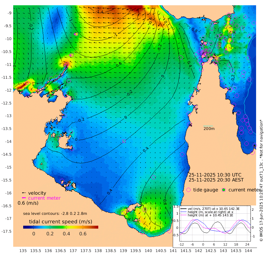 42cm/s -89T +3cm/s rms + 7cm/s -42T. ARA-GOC87 57m 17cm/s -139T +3cm/s rms + 2cm/s -2T. ARA-GOC87 60m 42cm/s -95T +2cm/s rms + 3cm/s 61T. ARA-GOC87 47m -16cm Daru -21cm Bobo Island -13cm Meer Island Barge -18cm Bramble Cay -22cm Unnamed Cay -13cm Pearce Cay -17cm Stephens Island -24cm Merrie England Shoals -20cm Mutacomal Reef -22cm Darnley Island Barge -8cm East Cay -22cm Yorke Island Barge -13cm Rennel Island -14cm Aureed Island 0cm Dungeness Reef -9cm Zagai Island 5cm Yam Island 24cm Dauan Island 6cm Saibai Island 49cm Phipi Reef 8cm Warrior Reef - West 16cm Mabuiag Island Barge -13cm Half Way Island -14cm Coconut Island -10cm Dugong Islet -3cm Poll Island 3cm Kirkcaldie Reef 15cm Suarji Island -14cm Sue Islet 58cm Hawkesbury Island 14cm Alert Patches 9cm Twin Island 46cm Badu Island 12cm St Pauls (Moa Island) 46cm Kubin (Moa Island) 23cm Ince Point 31cm Thursday Island 29cm Nardana Patches 47cm Turtle Head 52cm Round Island 59cm Goods Island 61cm Booby Island 56cm White Rocks Area 22cm Carpentaria 8cm Papou Point 46cm Bampfield Head 52cm Crab Island 59cm Red Wallis Island 61cm Packe Island -12cm Harrington Reef 77cm Herald Camp 3cm Sharp Point 48cm Red Island Point 30cm Possession Island -9cm Alpha Rock -2cm Frederick Point -28cm Wyborn Reef Light -25cm Tetley Island -9cm Triangle Reef -24cm Turtle Head Island -5cm Maclennan Cay -5cm Raine Island -20cm Mcsweeny Reef -20cm Collette Reef -14cm Shadwell Reef -23cm Hannibal Island -15cm Round Point 41cm Vrilya Point -11cm Cape Grenville -8cm Hicks Island -9cm Sir Charles Hardy Island -2cm Harvey Island -13cm Kay Reef -5cm Rocky Island -7cm Chapman Island -8cm Ham Reef -11cm Jubilee Reef -3cm Night Island -7cm Unnamed Reef No. 3 -6cm Morris Island -7cm 1st 3 Mile Opening -6cm Creech Reef -8cm Fife Island -10cm Eden Reef -9cm Stanley Island -9cm Normanby River -42cm Yabooma Island -54cm Hutchison River -45cm Elcho Island -31cm North West Crocodile Island -93cm Cape Wessel -79cm Stevens Island -116cm Guluwuru Island -59cm Hopeful Bay -78cm Auster Point -74cm Two Island Bay -88cm Cadell Strait -258cm Mallison Island -89cm Melville Bay (Gove Harbour) -104cm Truant Island -71cm Cape Arnhem -43cm Cape Grey -18cm Hawk Island -6cm Milner Bay (Groote Eylandt) 14cm Cape Beatrice 40cm West Island 43cm Centre Island 88cm Mornington Island 75cm West Wellesley Islands 118cm Bountiful Island 118cm Albert River Mouth 115cm Sweers Island 142cm Karumba 106cm Nassau River Offshore 91cm Christmas Creek 65cm Archer River 46cm Boyd Point 65cm Weipa (Humbug Point) 35cm Pennefather River 51cm Cullen Point