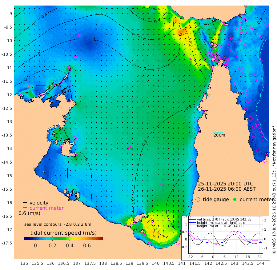 11cm/s -7T +3cm/s rms + 7cm/s -42T. ARA-GOC87 57m 32cm/s 12T +3cm/s rms + 2cm/s -2T. ARA-GOC87 60m 7cm/s 37T +2cm/s rms + 3cm/s 61T. ARA-GOC87 47m -75cm Daru -65cm Bobo Island -54cm Meer Island Barge -62cm Bramble Cay -71cm Unnamed Cay -72cm Pearce Cay -66cm Stephens Island -64cm Merrie England Shoals -71cm Mutacomal Reef -63cm Darnley Island Barge -54cm East Cay -67cm Yorke Island Barge -68cm Rennel Island -65cm Aureed Island -83cm Dungeness Reef -74cm Zagai Island -83cm Yam Island -111cm Dauan Island -83cm Saibai Island -123cm Phipi Reef -94cm Warrior Reef - West -67cm Mabuiag Island Barge -69cm Half Way Island -65cm Coconut Island -74cm Dugong Islet -73cm Poll Island -76cm Kirkcaldie Reef -73cm Suarji Island -65cm Sue Islet -96cm Hawkesbury Island -72cm Alert Patches -70cm Twin Island -91cm Badu Island -76cm St Pauls (Moa Island) -93cm Kubin (Moa Island) -74cm Ince Point -74cm Thursday Island -75cm Nardana Patches -88cm Turtle Head -87cm Round Island -89cm Goods Island -73cm Booby Island -68cm White Rocks Area -12cm Carpentaria -62cm Papou Point -70cm Bampfield Head -56cm Crab Island -69cm Red Wallis Island -94cm Packe Island -63cm Harrington Reef -103cm Herald Camp -16cm Sharp Point -67cm Red Island Point -71cm Possession Island -55cm Alpha Rock -67cm Frederick Point -65cm Wyborn Reef Light -65cm Tetley Island -53cm Triangle Reef -70cm Turtle Head Island -54cm Maclennan Cay -45cm Raine Island -61cm Mcsweeny Reef -58cm Collette Reef -53cm Shadwell Reef -63cm Hannibal Island -61cm Round Point -36cm Vrilya Point -55cm Cape Grenville -59cm Hicks Island -66cm Sir Charles Hardy Island -18cm Harvey Island -48cm Kay Reef -50cm Rocky Island -47cm Chapman Island -42cm Ham Reef -47cm Jubilee Reef -46cm Night Island -40cm Unnamed Reef No. 3 -50cm Morris Island -52cm 1st 3 Mile Opening -49cm Creech Reef -42cm Fife Island -58cm Eden Reef -49cm Stanley Island -50cm Normanby River -49cm Yabooma Island -62cm Hutchison River -38cm Elcho Island -38cm North West Crocodile Island -3cm Cape Wessel -27cm Stevens Island -28cm Guluwuru Island -27cm Hopeful Bay -16cm Auster Point -26cm Two Island Bay -57cm Cadell Strait -23cm Mallison Island -25cm Melville Bay (Gove Harbour) -22cm Truant Island -12cm Cape Arnhem 7cm Cape Grey 3cm Hawk Island 40cm Milner Bay (Groote Eylandt) 33cm Cape Beatrice 59cm West Island 59cm Centre Island -7cm Mornington Island -1cm West Wellesley Islands -30cm Bountiful Island -17cm Albert River Mouth 7cm Sweers Island -29cm Karumba -56cm Nassau River Offshore -75cm Christmas Creek -61cm Archer River -54cm Boyd Point -71cm Weipa (Humbug Point) -34cm Pennefather River -50cm Cullen Point