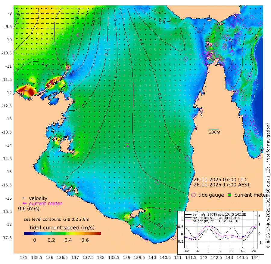 19cm/s -91T +3cm/s rms + 7cm/s -42T. ARA-GOC87 57m 35cm/s 166T +3cm/s rms + 2cm/s -2T. ARA-GOC87 60m 31cm/s -95T +2cm/s rms + 3cm/s 61T. ARA-GOC87 47m 78cm Daru 62cm Bobo Island 38cm Meer Island Barge 52cm Bramble Cay 69cm Unnamed Cay 55cm Pearce Cay 59cm Stephens Island 71cm Merrie England Shoals 85cm Mutacomal Reef 57cm Darnley Island Barge 46cm East Cay 64cm Yorke Island Barge 69cm Rennel Island 63cm Aureed Island 70cm Dungeness Reef 72cm Zagai Island 83cm Yam Island 87cm Dauan Island 87cm Saibai Island 76cm Phipi Reef 88cm Warrior Reef - West 74cm Mabuiag Island Barge 66cm Half Way Island 73cm Coconut Island 75cm Dugong Islet 76cm Poll Island 81cm Kirkcaldie Reef 76cm Suarji Island 80cm Sue Islet 79cm Hawkesbury Island 84cm Alert Patches 83cm Twin Island 69cm Badu Island 83cm St Pauls (Moa Island) 78cm Kubin (Moa Island) 82cm Ince Point 81cm Thursday Island 80cm Nardana Patches 80cm Turtle Head 75cm Round Island 71cm Goods Island 70cm Booby Island 66cm White Rocks Area 72cm Carpentaria 66cm Papou Point 78cm Bampfield Head 61cm Crab Island 80cm Red Wallis Island 92cm Packe Island 76cm Harrington Reef 97cm Herald Camp 28cm Sharp Point 65cm Red Island Point 68cm Possession Island 87cm Alpha Rock 83cm Frederick Point 80cm Wyborn Reef Light 83cm Tetley Island 47cm Triangle Reef 63cm Turtle Head Island 45cm Maclennan Cay 32cm Raine Island 66cm Mcsweeny Reef 63cm Collette Reef 48cm Shadwell Reef 63cm Hannibal Island 57cm Round Point 62cm Vrilya Point 57cm Cape Grenville 46cm Hicks Island 61cm Sir Charles Hardy Island 16cm Harvey Island 51cm Kay Reef 40cm Rocky Island 42cm Chapman Island 40cm Ham Reef 38cm Jubilee Reef 39cm Night Island 43cm Unnamed Reef No. 3 39cm Morris Island 32cm 1st 3 Mile Opening 39cm Creech Reef 48cm Fife Island 34cm Eden Reef 43cm Stanley Island 39cm Normanby River -158cm Yabooma Island -190cm Hutchison River -172cm Elcho Island -167cm North West Crocodile Island -90cm Cape Wessel -137cm Stevens Island -72cm Guluwuru Island -124cm Hopeful Bay -114cm Auster Point -114cm Two Island Bay -146cm Cadell Strait 87cm Mallison Island -72cm Melville Bay (Gove Harbour) -72cm Truant Island -45cm Cape Arnhem -51cm Cape Grey -42cm Hawk Island -52cm Milner Bay (Groote Eylandt) -41cm Cape Beatrice -24cm West Island -28cm Centre Island -9cm Mornington Island -5cm West Wellesley Islands -28cm Bountiful Island -81cm Albert River Mouth -98cm Sweers Island -62cm Karumba 36cm Nassau River Offshore 68cm Christmas Creek 61cm Archer River 67cm Boyd Point 65cm Weipa (Humbug Point) 50cm Pennefather River 72cm Cullen Point