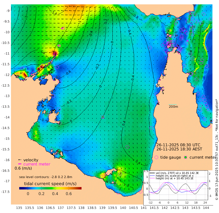40cm/s -88T +3cm/s rms + 7cm/s -42T. ARA-GOC87 57m 29cm/s 175T +3cm/s rms + 2cm/s -2T. ARA-GOC87 60m 48cm/s -95T +2cm/s rms + 3cm/s 61T. ARA-GOC87 47m 40cm Daru 27cm Bobo Island 8cm Meer Island Barge 17cm Bramble Cay 29cm Unnamed Cay 23cm Pearce Cay 24cm Stephens Island 32cm Merrie England Shoals 46cm Mutacomal Reef 18cm Darnley Island Barge 18cm East Cay 25cm Yorke Island Barge 36cm Rennel Island 31cm Aureed Island 42cm Dungeness Reef 45cm Zagai Island 60cm Yam Island 67cm Dauan Island 64cm Saibai Island 68cm Phipi Reef 62cm Warrior Reef - West 63cm Mabuiag Island Barge 33cm Half Way Island 43cm Coconut Island 42cm Dugong Islet 50cm Poll Island 56cm Kirkcaldie Reef 63cm Suarji Island 48cm Sue Islet 85cm Hawkesbury Island 70cm Alert Patches 67cm Twin Island 72cm Badu Island 67cm St Pauls (Moa Island) 78cm Kubin (Moa Island) 73cm Ince Point 77cm Thursday Island 75cm Nardana Patches 81cm Turtle Head 80cm Round Island 80cm Goods Island 85cm Booby Island 80cm White Rocks Area 78cm Carpentaria 53cm Papou Point 84cm Bampfield Head 75cm Crab Island 94cm Red Wallis Island 100cm Packe Island 46cm Harrington Reef 108cm Herald Camp 24cm Sharp Point 72cm Red Island Point 65cm Possession Island 62cm Alpha Rock 59cm Frederick Point 40cm Wyborn Reef Light 45cm Tetley Island 22cm Triangle Reef 25cm Turtle Head Island 20cm Maclennan Cay 10cm Raine Island 29cm Mcsweeny Reef 27cm Collette Reef 17cm Shadwell Reef 24cm Hannibal Island 23cm Round Point 74cm Vrilya Point 26cm Cape Grenville 18cm Hicks Island 27cm Sir Charles Hardy Island 7cm Harvey Island 21cm Kay Reef 15cm Rocky Island 17cm Chapman Island 16cm Ham Reef 11cm Jubilee Reef 18cm Night Island 20cm Unnamed Reef No. 3 13cm Morris Island 7cm 1st 3 Mile Opening 14cm Creech Reef 21cm Fife Island 4cm Eden Reef 15cm Stanley Island 11cm Normanby River -169cm Yabooma Island -205cm Hutchison River -178cm Elcho Island -167cm North West Crocodile Island -129cm Cape Wessel -166cm Stevens Island -136cm Guluwuru Island -144cm Hopeful Bay -144cm Auster Point -144cm Two Island Bay -188cm Cadell Strait -83cm Mallison Island -119cm Melville Bay (Gove Harbour) -126cm Truant Island -82cm Cape Arnhem -69cm Cape Grey -47cm Hawk Island -41cm Milner Bay (Groote Eylandt) -22cm Cape Beatrice 13cm West Island 12cm Centre Island 35cm Mornington Island 32cm West Wellesley Islands 26cm Bountiful Island -13cm Albert River Mouth -27cm Sweers Island 13cm Karumba 73cm Nassau River Offshore 89cm Christmas Creek 74cm Archer River 72cm Boyd Point 77cm Weipa (Humbug Point) 58cm Pennefather River 84cm Cullen Point