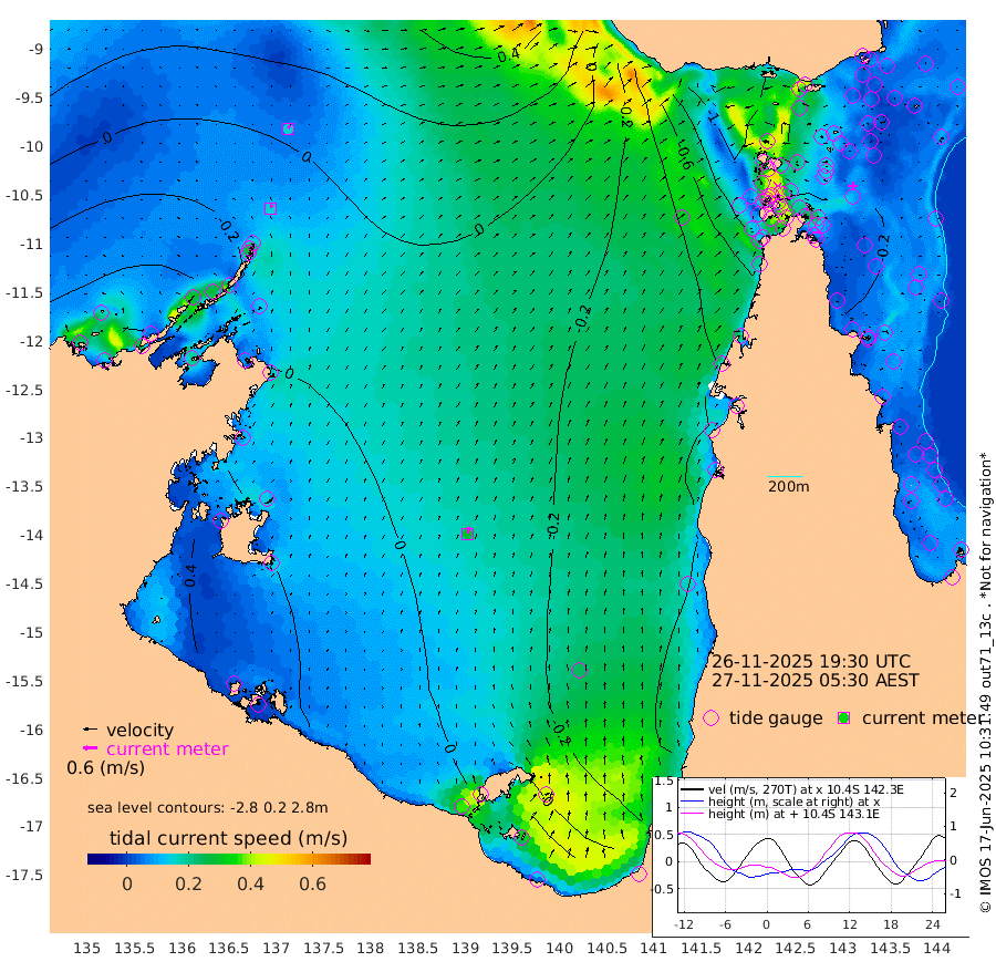 16cm/s 12T +3cm/s rms + 7cm/s -42T. ARA-GOC87 57m 28cm/s 10T +3cm/s rms + 2cm/s -2T. ARA-GOC87 60m 16cm/s 29T +2cm/s rms + 3cm/s 61T. ARA-GOC87 47m -37cm Daru -30cm Bobo Island -33cm Meer Island Barge -31cm Bramble Cay -32cm Unnamed Cay -42cm Pearce Cay -35cm Stephens Island -24cm Merrie England Shoals -32cm Mutacomal Reef -31cm Darnley Island Barge -32cm East Cay -32cm Yorke Island Barge -38cm Rennel Island -35cm Aureed Island -55cm Dungeness Reef -50cm Zagai Island -64cm Yam Island -98cm Dauan Island -68cm Saibai Island -99cm Phipi Reef -69cm Warrior Reef - West -68cm Mabuiag Island Barge -40cm Half Way Island -36cm Coconut Island -45cm Dugong Islet -52cm Poll Island -53cm Kirkcaldie Reef -59cm Suarji Island -38cm Sue Islet -131cm Hawkesbury Island -62cm Alert Patches -62cm Twin Island -119cm Badu Island -68cm St Pauls (Moa Island) -118cm Kubin (Moa Island) -78cm Ince Point -87cm Thursday Island -85cm Nardana Patches -109cm Turtle Head -111cm Round Island -129cm Goods Island -127cm Booby Island -121cm White Rocks Area -69cm Carpentaria -59cm Papou Point -117cm Bampfield Head -102cm Crab Island -123cm Red Wallis Island -128cm Packe Island -35cm Harrington Reef -142cm Herald Camp -10cm Sharp Point -87cm Red Island Point -73cm Possession Island -40cm Alpha Rock -49cm Frederick Point -29cm Wyborn Reef Light -32cm Tetley Island -35cm Triangle Reef -39cm Turtle Head Island -38cm Maclennan Cay -33cm Raine Island -29cm Mcsweeny Reef -25cm Collette Reef -28cm Shadwell Reef -26cm Hannibal Island -31cm Round Point -81cm Vrilya Point -28cm Cape Grenville -36cm Hicks Island -45cm Sir Charles Hardy Island -10cm Harvey Island -24cm Kay Reef -33cm Rocky Island -32cm Chapman Island -28cm Ham Reef -31cm Jubilee Reef -32cm Night Island -28cm Unnamed Reef No. 3 -32cm Morris Island -38cm 1st 3 Mile Opening -34cm Creech Reef -25cm Fife Island -39cm Eden Reef -31cm Stanley Island -31cm Normanby River -65cm Yabooma Island -73cm Hutchison River -52cm Elcho Island -53cm North West Crocodile Island -5cm Cape Wessel -27cm Stevens Island -6cm Guluwuru Island -26cm Hopeful Bay -16cm Auster Point -29cm Two Island Bay -50cm Cadell Strait 73cm Mallison Island -6cm Melville Bay (Gove Harbour) -5cm Truant Island 4cm Cape Arnhem 25cm Cape Grey 24cm Hawk Island 55cm Milner Bay (Groote Eylandt) 47cm Cape Beatrice 71cm West Island 70cm Centre Island 26cm Mornington Island 30cm West Wellesley Islands 12cm Bountiful Island 24cm Albert River Mouth 61cm Sweers Island 14cm Karumba -33cm Nassau River Offshore -64cm Christmas Creek -69cm Archer River -72cm Boyd Point -92cm Weipa (Humbug Point) -55cm Pennefather River -89cm Cullen Point