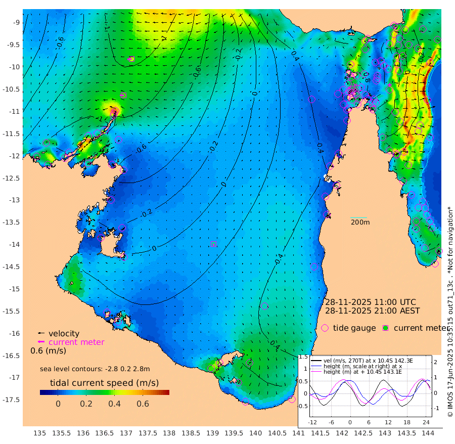 36cm/s -91T +3cm/s rms + 7cm/s -42T. ARA-GOC87 57m 18cm/s -171T +3cm/s rms + 2cm/s -2T. ARA-GOC87 60m 41cm/s -98T +2cm/s rms + 3cm/s 61T. ARA-GOC87 47m 16cm Daru 5cm Bobo Island -29cm Meer Island Barge -17cm Bramble Cay -2cm Unnamed Cay 0cm Pearce Cay -9cm Stephens Island 0cm Merrie England Shoals 23cm Mutacomal Reef -18cm Darnley Island Barge -24cm East Cay -5cm Yorke Island Barge 9cm Rennel Island 7cm Aureed Island 26cm Dungeness Reef 39cm Zagai Island 53cm Yam Island 63cm Dauan Island 54cm Saibai Island 70cm Phipi Reef 55cm Warrior Reef - West 58cm Mabuiag Island Barge 11cm Half Way Island 26cm Coconut Island 20cm Dugong Islet 41cm Poll Island 42cm Kirkcaldie Reef 58cm Suarji Island 31cm Sue Islet 67cm Hawkesbury Island 60cm Alert Patches 59cm Twin Island 65cm Badu Island 64cm St Pauls (Moa Island) 68cm Kubin (Moa Island) 66cm Ince Point 68cm Thursday Island 68cm Nardana Patches 68cm Turtle Head 61cm Round Island 65cm Goods Island 65cm Booby Island 66cm White Rocks Area 50cm Carpentaria 50cm Papou Point 43cm Bampfield Head 59cm Crab Island 78cm Red Wallis Island 86cm Packe Island 26cm Harrington Reef 74cm Herald Camp 26cm Sharp Point 62cm Red Island Point 51cm Possession Island 51cm Alpha Rock 45cm Frederick Point 18cm Wyborn Reef Light 26cm Tetley Island -9cm Triangle Reef 2cm Turtle Head Island -17cm Maclennan Cay -28cm Raine Island -3cm Mcsweeny Reef -8cm Collette Reef -20cm Shadwell Reef -11cm Hannibal Island -14cm Round Point 57cm Vrilya Point -12cm Cape Grenville -21cm Hicks Island -20cm Sir Charles Hardy Island -5cm Harvey Island -22cm Kay Reef -26cm Rocky Island -26cm Chapman Island -28cm Ham Reef -29cm Jubilee Reef -17cm Night Island -23cm Unnamed Reef No. 3 -28cm Morris Island -34cm 1st 3 Mile Opening -27cm Creech Reef -25cm Fife Island -40cm Eden Reef -30cm Stanley Island -33cm Normanby River -119cm Yabooma Island -139cm Hutchison River -117cm Elcho Island -103cm North West Crocodile Island -111cm Cape Wessel -121cm Stevens Island -129cm Guluwuru Island -109cm Hopeful Bay -118cm Auster Point -115cm Two Island Bay -146cm Cadell Strait -157cm Mallison Island -109cm Melville Bay (Gove Harbour) -119cm Truant Island -79cm Cape Arnhem -63cm Cape Grey -34cm Hawk Island -20cm Milner Bay (Groote Eylandt) 0cm Cape Beatrice 33cm West Island 34cm Centre Island 53cm Mornington Island 46cm West Wellesley Islands 47cm Bountiful Island 48cm Albert River Mouth 29cm Sweers Island 63cm Karumba 77cm Nassau River Offshore 73cm Christmas Creek 53cm Archer River 45cm Boyd Point 50cm Weipa (Humbug Point) 44cm Pennefather River 60cm Cullen Point