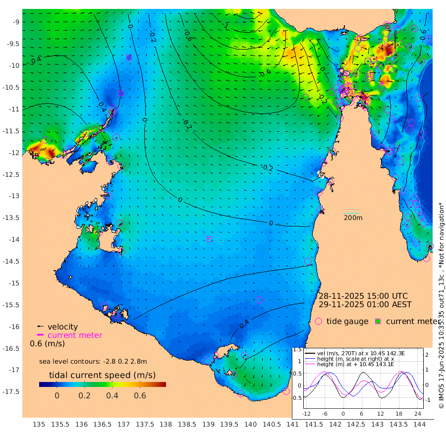 2cm/s -108T +3cm/s rms + 7cm/s -42T. ARA-GOC87 57m 14cm/s -79T +3cm/s rms + 2cm/s -2T. ARA-GOC87 60m 4cm/s 27T +2cm/s rms + 3cm/s 61T. ARA-GOC87 47m -83cm Daru -81cm Bobo Island -45cm Meer Island Barge -65cm Bramble Cay -84cm Unnamed Cay -68cm Pearce Cay -74cm Stephens Island -88cm Merrie England Shoals -94cm Mutacomal Reef -67cm Darnley Island Barge -56cm East Cay -74cm Yorke Island Barge -81cm Rennel Island -71cm Aureed Island -68cm Dungeness Reef -65cm Zagai Island -73cm Yam Island -21cm Dauan Island -43cm Saibai Island -14cm Phipi Reef -56cm Warrior Reef - West -49cm Mabuiag Island Barge -78cm Half Way Island -85cm Coconut Island -83cm Dugong Islet -74cm Poll Island -84cm Kirkcaldie Reef -68cm Suarji Island -80cm Sue Islet -48cm Hawkesbury Island -73cm Alert Patches -77cm Twin Island -39cm Badu Island -70cm St Pauls (Moa Island) -47cm Kubin (Moa Island) -63cm Ince Point -59cm Thursday Island -58cm Nardana Patches -45cm Turtle Head -49cm Round Island -37cm Goods Island -39cm Booby Island -45cm White Rocks Area -68cm Carpentaria -71cm Papou Point -67cm Bampfield Head -32cm Crab Island -44cm Red Wallis Island -45cm Packe Island -96cm Harrington Reef -49cm Herald Camp -20cm Sharp Point -51cm Red Island Point -60cm Possession Island -85cm Alpha Rock -86cm Frederick Point -97cm Wyborn Reef Light -96cm Tetley Island -46cm Triangle Reef -92cm Turtle Head Island -50cm Maclennan Cay -35cm Raine Island -77cm Mcsweeny Reef -71cm Collette Reef -49cm Shadwell Reef -76cm Hannibal Island -68cm Round Point -36cm Vrilya Point -66cm Cape Grenville -56cm Hicks Island -63cm Sir Charles Hardy Island -19cm Harvey Island -62cm Kay Reef -43cm Rocky Island -39cm Chapman Island -43cm Ham Reef -44cm Jubilee Reef -36cm Night Island -44cm Unnamed Reef No. 3 -45cm Morris Island -37cm 1st 3 Mile Opening -42cm Creech Reef -42cm Fife Island -39cm Eden Reef -47cm Stanley Island -52cm Normanby River 61cm Yabooma Island 70cm Hutchison River 67cm Elcho Island 68cm North West Crocodile Island 2cm Cape Wessel 40cm Stevens Island -5cm Guluwuru Island 45cm Hopeful Bay 24cm Auster Point 29cm Two Island Bay 55cm Cadell Strait -83cm Mallison Island 9cm Melville Bay (Gove Harbour) 2cm Truant Island 4cm Cape Arnhem 9cm Cape Grey 26cm Hawk Island 30cm Milner Bay (Groote Eylandt) 35cm Cape Beatrice 32cm West Island 35cm Centre Island 74cm Mornington Island 69cm West Wellesley Islands 98cm Bountiful Island 150cm Albert River Mouth 161cm Sweers Island 145cm Karumba 62cm Nassau River Offshore 29cm Christmas Creek 5cm Archer River -16cm Boyd Point -2cm Weipa (Humbug Point) -13cm Pennefather River -28cm Cullen Point