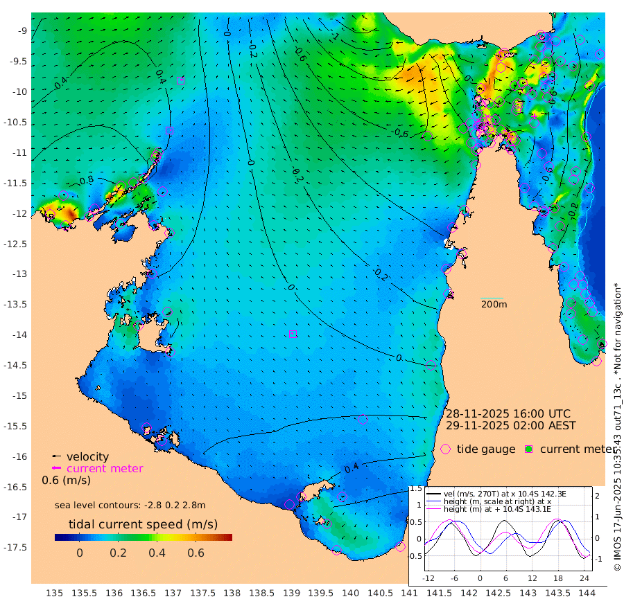 9cm/s 76T +3cm/s rms + 7cm/s -42T. ARA-GOC87 57m 14cm/s -63T +3cm/s rms + 2cm/s -2T. ARA-GOC87 60m 15cm/s 56T +2cm/s rms + 3cm/s 61T. ARA-GOC87 47m -72cm Daru -67cm Bobo Island -24cm Meer Island Barge -43cm Bramble Cay -65cm Unnamed Cay -55cm Pearce Cay -55cm Stephens Island -67cm Merrie England Shoals -84cm Mutacomal Reef -46cm Darnley Island Barge -35cm East Cay -57cm Yorke Island Barge -69cm Rennel Island -60cm Aureed Island -67cm Dungeness Reef -74cm Zagai Island -87cm Yam Island -50cm Dauan Island -66cm Saibai Island -42cm Phipi Reef -71cm Warrior Reef - West -78cm Mabuiag Island Barge -67cm Half Way Island -82cm Coconut Island -76cm Dugong Islet -81cm Poll Island -88cm Kirkcaldie Reef -88cm Suarji Island -82cm Sue Islet -91cm Hawkesbury Island -92cm Alert Patches -96cm Twin Island -81cm Badu Island -92cm St Pauls (Moa Island) -85cm Kubin (Moa Island) -91cm Ince Point -91cm Thursday Island -90cm Nardana Patches -82cm Turtle Head -85cm Round Island -80cm Goods Island -86cm Booby Island -91cm White Rocks Area -104cm Carpentaria -91cm Papou Point -105cm Bampfield Head -71cm Crab Island -92cm Red Wallis Island -89cm Packe Island -90cm Harrington Reef -93cm Herald Camp -27cm Sharp Point -84cm Red Island Point -83cm Possession Island -97cm Alpha Rock -93cm Frederick Point -86cm Wyborn Reef Light -91cm Tetley Island -35cm Triangle Reef -78cm Turtle Head Island -36cm Maclennan Cay -18cm Raine Island -59cm Mcsweeny Reef -52cm Collette Reef -29cm Shadwell Reef -53cm Hannibal Island -46cm Round Point -70cm Vrilya Point -46cm Cape Grenville -36cm Hicks Island -45cm Sir Charles Hardy Island -13cm Harvey Island -40cm Kay Reef -24cm Rocky Island -22cm Chapman Island -24cm Ham Reef -24cm Jubilee Reef -21cm Night Island -27cm Unnamed Reef No. 3 -25cm Morris Island -18cm 1st 3 Mile Opening -23cm Creech Reef -20cm Fife Island -15cm Eden Reef -25cm Stanley Island -28cm Normanby River 74cm Yabooma Island 87cm Hutchison River 80cm Elcho Island 76cm North West Crocodile Island 27cm Cape Wessel 64cm Stevens Island 34cm Guluwuru Island 66cm Hopeful Bay 49cm Auster Point 52cm Two Island Bay 86cm Cadell Strait 9cm Mallison Island 41cm Melville Bay (Gove Harbour) 36cm Truant Island 29cm Cape Arnhem 30cm Cape Grey 41cm Hawk Island 41cm Milner Bay (Groote Eylandt) 41cm Cape Beatrice 31cm West Island 32cm Centre Island 72cm Mornington Island 68cm West Wellesley Islands 94cm Bountiful Island 145cm Albert River Mouth 166cm Sweers Island 137cm Karumba 48cm Nassau River Offshore 11cm Christmas Creek -14cm Archer River -36cm Boyd Point -28cm Weipa (Humbug Point) -34cm Pennefather River -62cm Cullen Point