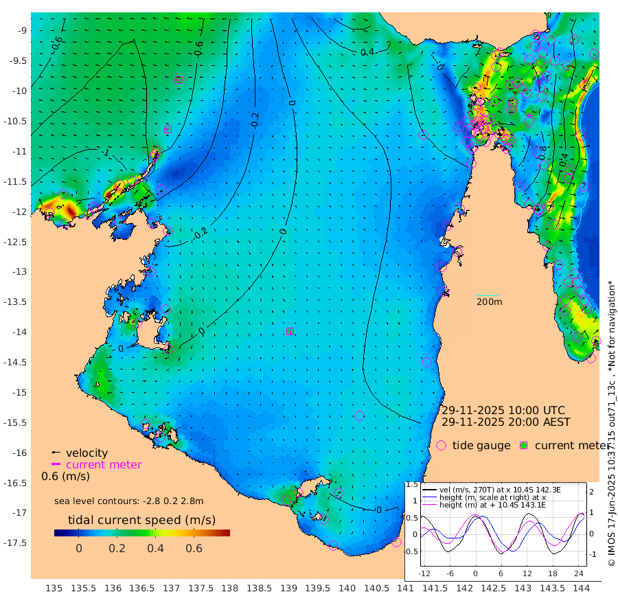 20cm/s -85T +3cm/s rms + 7cm/s -42T. ARA-GOC87 57m 22cm/s 169T +3cm/s rms + 2cm/s -2T. ARA-GOC87 60m 28cm/s -94T +2cm/s rms + 3cm/s 61T. ARA-GOC87 47m 85cm Daru 71cm Bobo Island 20cm Meer Island Barge 46cm Bramble Cay 71cm Unnamed Cay 60cm Pearce Cay 58cm Stephens Island 78cm Merrie England Shoals 97cm Mutacomal Reef 48cm Darnley Island Barge 29cm East Cay 61cm Yorke Island Barge 73cm Rennel Island 63cm Aureed Island 75cm Dungeness Reef 74cm Zagai Island 90cm Yam Island 60cm Dauan Island 62cm Saibai Island 63cm Phipi Reef 85cm Warrior Reef - West 57cm Mabuiag Island Barge 76cm Half Way Island 81cm Coconut Island 83cm Dugong Islet 84cm Poll Island 93cm Kirkcaldie Reef 75cm Suarji Island 80cm Sue Islet 43cm Hawkesbury Island 80cm Alert Patches 85cm Twin Island 39cm Badu Island 85cm St Pauls (Moa Island) 54cm Kubin (Moa Island) 73cm Ince Point 66cm Thursday Island 67cm Nardana Patches 53cm Turtle Head 38cm Round Island 32cm Goods Island 23cm Booby Island 28cm White Rocks Area 23cm Carpentaria 72cm Papou Point 6cm Bampfield Head 24cm Crab Island 39cm Red Wallis Island 62cm Packe Island 91cm Harrington Reef 40cm Herald Camp 33cm Sharp Point 52cm Red Island Point 52cm Possession Island 89cm Alpha Rock 89cm Frederick Point 88cm Wyborn Reef Light 91cm Tetley Island 30cm Triangle Reef 72cm Turtle Head Island 28cm Maclennan Cay 7cm Raine Island 63cm Mcsweeny Reef 55cm Collette Reef 27cm Shadwell Reef 59cm Hannibal Island 49cm Round Point 28cm Vrilya Point 46cm Cape Grenville 31cm Hicks Island 35cm Sir Charles Hardy Island 13cm Harvey Island 34cm Kay Reef 16cm Rocky Island 10cm Chapman Island 11cm Ham Reef 14cm Jubilee Reef 20cm Night Island 16cm Unnamed Reef No. 3 17cm Morris Island 4cm 1st 3 Mile Opening 14cm Creech Reef 20cm Fife Island 7cm Eden Reef 19cm Stanley Island 21cm Normanby River -120cm Yabooma Island -137cm Hutchison River -122cm Elcho Island -110cm North West Crocodile Island -79cm Cape Wessel -100cm Stevens Island -70cm Guluwuru Island -100cm Hopeful Bay -98cm Auster Point -91cm Two Island Bay -112cm Cadell Strait 8cm Mallison Island -69cm Melville Bay (Gove Harbour) -74cm Truant Island -49cm Cape Arnhem -43cm Cape Grey -30cm Hawk Island -26cm Milner Bay (Groote Eylandt) -10cm Cape Beatrice 14cm West Island 8cm Centre Island 21cm Mornington Island 18cm West Wellesley Islands 6cm Bountiful Island -12cm Albert River Mouth -35cm Sweers Island 0cm Karumba 47cm Nassau River Offshore 52cm Christmas Creek 30cm Archer River 26cm Boyd Point 21cm Weipa (Humbug Point) 24cm Pennefather River 28cm Cullen Point
