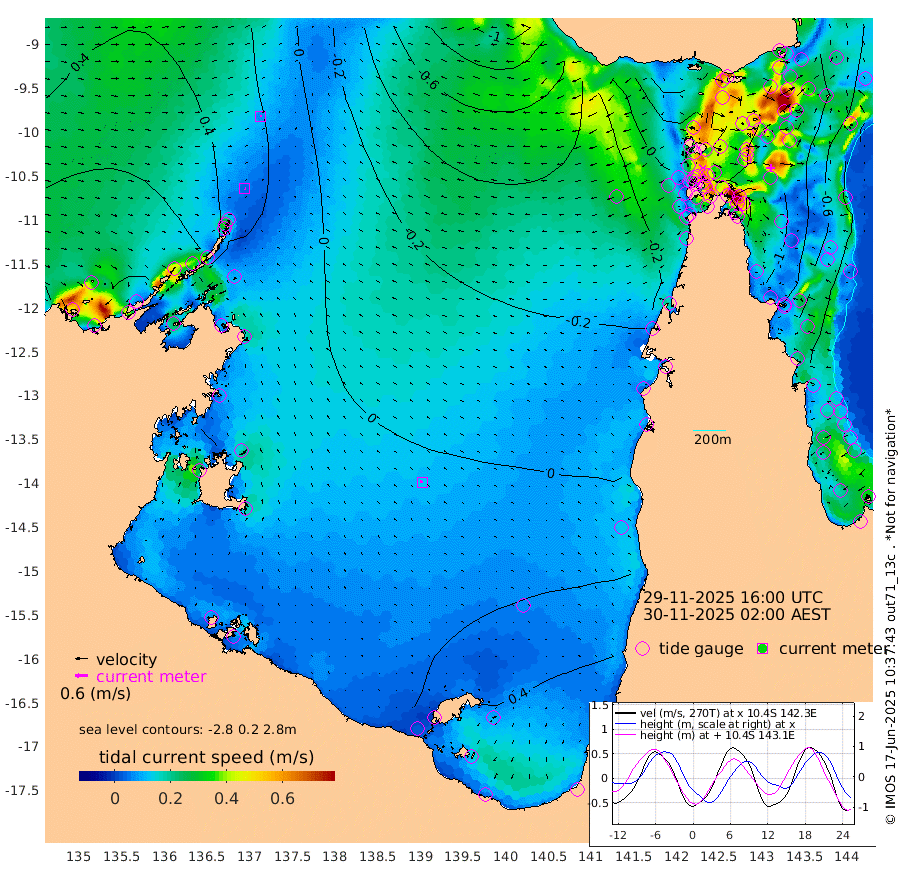 4cm/s 123T +3cm/s rms + 7cm/s -42T. ARA-GOC87 57m 12cm/s -70T +3cm/s rms + 2cm/s -2T. ARA-GOC87 60m 7cm/s 78T +2cm/s rms + 3cm/s 61T. ARA-GOC87 47m -104cm Daru -99cm Bobo Island -46cm Meer Island Barge -72cm Bramble Cay -99cm Unnamed Cay -84cm Pearce Cay -85cm Stephens Island -101cm Merrie England Shoals -115cm Mutacomal Reef -76cm Darnley Island Barge -58cm East Cay -89cm Yorke Island Barge -97cm Rennel Island -88cm Aureed Island -91cm Dungeness Reef -90cm Zagai Island -100cm Yam Island -46cm Dauan Island -66cm Saibai Island -48cm Phipi Reef -85cm Warrior Reef - West -68cm Mabuiag Island Barge -95cm Half Way Island -106cm Coconut Island -103cm Dugong Islet -98cm Poll Island -108cm Kirkcaldie Reef -97cm Suarji Island -103cm Sue Islet -55cm Hawkesbury Island -96cm Alert Patches -101cm Twin Island -48cm Badu Island -95cm St Pauls (Moa Island) -59cm Kubin (Moa Island) -82cm Ince Point -75cm Thursday Island -76cm Nardana Patches -57cm Turtle Head -60cm Round Island -41cm Goods Island -36cm Booby Island -44cm White Rocks Area -56cm Carpentaria -93cm Papou Point -64cm Bampfield Head -27cm Crab Island -41cm Red Wallis Island -54cm Packe Island -117cm Harrington Reef -56cm Herald Camp -30cm Sharp Point -64cm Red Island Point -79cm Possession Island -106cm Alpha Rock -108cm Frederick Point -116cm Wyborn Reef Light -117cm Tetley Island -50cm Triangle Reef -109cm Turtle Head Island -53cm Maclennan Cay -30cm Raine Island -88cm Mcsweeny Reef -81cm Collette Reef -50cm Shadwell Reef -86cm Hannibal Island -74cm Round Point -26cm Vrilya Point -71cm Cape Grenville -60cm Hicks Island -67cm Sir Charles Hardy Island -21cm Harvey Island -63cm Kay Reef -42cm Rocky Island -35cm Chapman Island -38cm Ham Reef -41cm Jubilee Reef -35cm Night Island -39cm Unnamed Reef No. 3 -43cm Morris Island -33cm 1st 3 Mile Opening -39cm Creech Reef -36cm Fife Island -35cm Eden Reef -44cm Stanley Island -50cm Normanby River 69cm Yabooma Island 75cm Hutchison River 75cm Elcho Island 71cm North West Crocodile Island 15cm Cape Wessel 51cm Stevens Island 6cm Guluwuru Island 54cm Hopeful Bay 36cm Auster Point 40cm Two Island Bay 65cm Cadell Strait -46cm Mallison Island 18cm Melville Bay (Gove Harbour) 14cm Truant Island 11cm Cape Arnhem 10cm Cape Grey 22cm Hawk Island 25cm Milner Bay (Groote Eylandt) 27cm Cape Beatrice 19cm West Island 21cm Centre Island 51cm Mornington Island 49cm West Wellesley Islands 65cm Bountiful Island 117cm Albert River Mouth 128cm Sweers Island 109cm Karumba 41cm Nassau River Offshore 14cm Christmas Creek 3cm Archer River -13cm Boyd Point -2cm Weipa (Humbug Point) -7cm Pennefather River -23cm Cullen Point