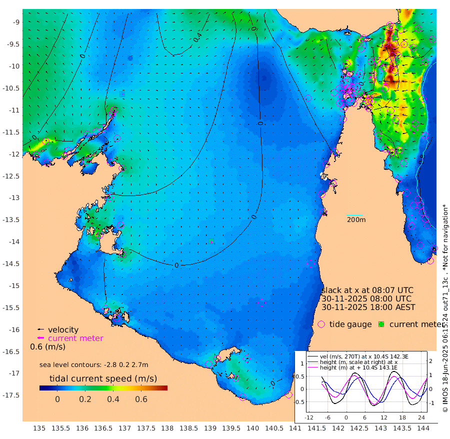 9cm/s 87T +3cm/s rms + 7cm/s -42T. ARA-GOC87 57m 19cm/s 169T +3cm/s rms + 2cm/s -2T. ARA-GOC87 60m 5cm/s 59T +2cm/s rms + 3cm/s 61T. ARA-GOC87 47m 87cm Daru 85cm Bobo Island 81cm Meer Island Barge 95cm Bramble Cay 98cm Unnamed Cay 85cm Pearce Cay 98cm Stephens Island 102cm Merrie England Shoals 91cm Mutacomal Reef 93cm Darnley Island Barge 90cm East Cay 86cm Yorke Island Barge 86cm Rennel Island 74cm Aureed Island 66cm Dungeness Reef 32cm Zagai Island 44cm Yam Island 1cm Dauan Island 4cm Saibai Island 0cm Phipi Reef 37cm Warrior Reef - West -9cm Mabuiag Island Barge 88cm Half Way Island 63cm Coconut Island 84cm Dugong Islet 49cm Poll Island 65cm Kirkcaldie Reef 11cm Suarji Island 51cm Sue Islet -4cm Hawkesbury Island 15cm Alert Patches 24cm Twin Island -17cm Badu Island 16cm St Pauls (Moa Island) 2cm Kubin (Moa Island) 7cm Ince Point 0cm Thursday Island 0cm Nardana Patches -5cm Turtle Head -13cm Round Island -15cm Goods Island -28cm Booby Island -25cm White Rocks Area -32cm Carpentaria 19cm Papou Point -34cm Bampfield Head -25cm Crab Island -23cm Red Wallis Island -3cm Packe Island 79cm Harrington Reef -6cm Herald Camp 2cm Sharp Point 2cm Red Island Point -1cm Possession Island 34cm Alpha Rock 49cm Frederick Point 79cm Wyborn Reef Light 72cm Tetley Island 63cm Triangle Reef 83cm Turtle Head Island 77cm Maclennan Cay 67cm Raine Island 88cm Mcsweeny Reef 86cm Collette Reef 75cm Shadwell Reef 97cm Hannibal Island 96cm Round Point -24cm Vrilya Point 90cm Cape Grenville 88cm Hicks Island 95cm Sir Charles Hardy Island 29cm Harvey Island 90cm Kay Reef 78cm Rocky Island 70cm Chapman Island 72cm Ham Reef 77cm Jubilee Reef 68cm Night Island 72cm Unnamed Reef No. 3 81cm Morris Island 69cm 1st 3 Mile Opening 76cm Creech Reef 84cm Fife Island 90cm Eden Reef 85cm Stanley Island 97cm Normanby River 29cm Yabooma Island 30cm Hutchison River 16cm Elcho Island 17cm North West Crocodile Island 36cm Cape Wessel 32cm Stevens Island 63cm Guluwuru Island 24cm Hopeful Bay 25cm Auster Point 40cm Two Island Bay 62cm Cadell Strait 163cm Mallison Island 44cm Melville Bay (Gove Harbour) 46cm Truant Island 28cm Cape Arnhem 13cm Cape Grey -5cm Hawk Island -26cm Milner Bay (Groote Eylandt) -22cm Cape Beatrice -36cm West Island -49cm Centre Island -21cm Mornington Island -19cm West Wellesley Islands -14cm Bountiful Island -43cm Albert River Mouth -62cm Sweers Island -39cm Karumba 7cm Nassau River Offshore 20cm Christmas Creek 4cm Archer River 1cm Boyd Point 0cm Weipa (Humbug Point) -16cm Pennefather River -18cm Cullen Point