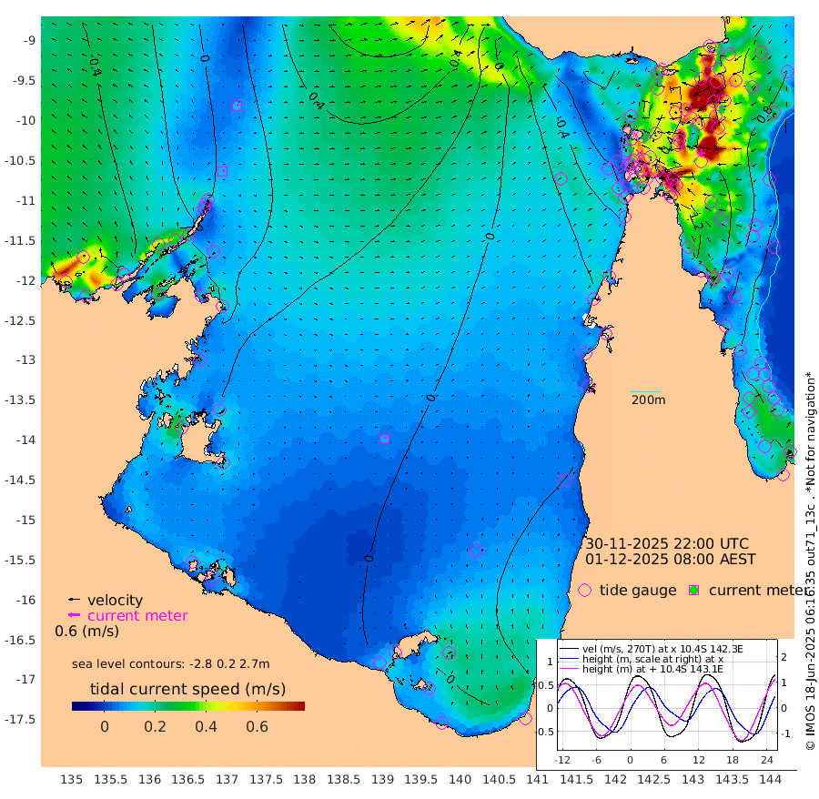 11cm/s 61T +3cm/s rms + 7cm/s -42T. ARA-GOC87 57m 9cm/s 28T +3cm/s rms + 2cm/s -2T. ARA-GOC87 60m 11cm/s 51T +2cm/s rms + 3cm/s 61T. ARA-GOC87 47m 104cm Daru 105cm Bobo Island 67cm Meer Island Barge 90cm Bramble Cay 109cm Unnamed Cay 96cm Pearce Cay 101cm Stephens Island 117cm Merrie England Shoals 110cm Mutacomal Reef 94cm Darnley Island Barge 73cm East Cay 96cm Yorke Island Barge 100cm Rennel Island 94cm Aureed Island 84cm Dungeness Reef 57cm Zagai Island 48cm Yam Island -20cm Dauan Island -9cm Saibai Island 11cm Phipi Reef 43cm Warrior Reef - West -8cm Mabuiag Island Barge 96cm Half Way Island 99cm Coconut Island 92cm Dugong Islet 72cm Poll Island 79cm Kirkcaldie Reef 59cm Suarji Island 72cm Sue Islet -50cm Hawkesbury Island 53cm Alert Patches 52cm Twin Island -43cm Badu Island 41cm St Pauls (Moa Island) -24cm Kubin (Moa Island) 20cm Ince Point 4cm Thursday Island 7cm Nardana Patches -15cm Turtle Head -13cm Round Island -46cm Goods Island -60cm Booby Island -53cm White Rocks Area -35cm Carpentaria 37cm Papou Point -19cm Bampfield Head -50cm Crab Island -61cm Red Wallis Island -34cm Packe Island 111cm Harrington Reef -46cm Herald Camp 14cm Sharp Point -15cm Red Island Point 35cm Possession Island 60cm Alpha Rock 77cm Frederick Point 110cm Wyborn Reef Light 103cm Tetley Island 56cm Triangle Reef 115cm Turtle Head Island 60cm Maclennan Cay 47cm Raine Island 99cm Mcsweeny Reef 96cm Collette Reef 68cm Shadwell Reef 108cm Hannibal Island 93cm Round Point -44cm Vrilya Point 87cm Cape Grenville 75cm Hicks Island 65cm Sir Charles Hardy Island 26cm Harvey Island 78cm Kay Reef 57cm Rocky Island 46cm Chapman Island 47cm Ham Reef 54cm Jubilee Reef 54cm Night Island 49cm Unnamed Reef No. 3 62cm Morris Island 54cm 1st 3 Mile Opening 56cm Creech Reef 58cm Fife Island 62cm Eden Reef 65cm Stanley Island 68cm Normanby River -56cm Yabooma Island -39cm Hutchison River -42cm Elcho Island -51cm North West Crocodile Island -4cm Cape Wessel -19cm Stevens Island 29cm Guluwuru Island -21cm Hopeful Bay -7cm Auster Point -19cm Two Island Bay -29cm Cadell Strait 97cm Mallison Island 20cm Melville Bay (Gove Harbour) 23cm Truant Island 22cm Cape Arnhem 26cm Cape Grey 25cm Hawk Island 19cm Milner Bay (Groote Eylandt) 14cm Cape Beatrice 13cm West Island 19cm Centre Island 9cm Mornington Island 4cm West Wellesley Islands -15cm Bountiful Island -24cm Albert River Mouth -2cm Sweers Island -21cm Karumba -23cm Nassau River Offshore -25cm Christmas Creek -28cm Archer River -29cm Boyd Point -44cm Weipa (Humbug Point) -18cm Pennefather River -49cm Cullen Point