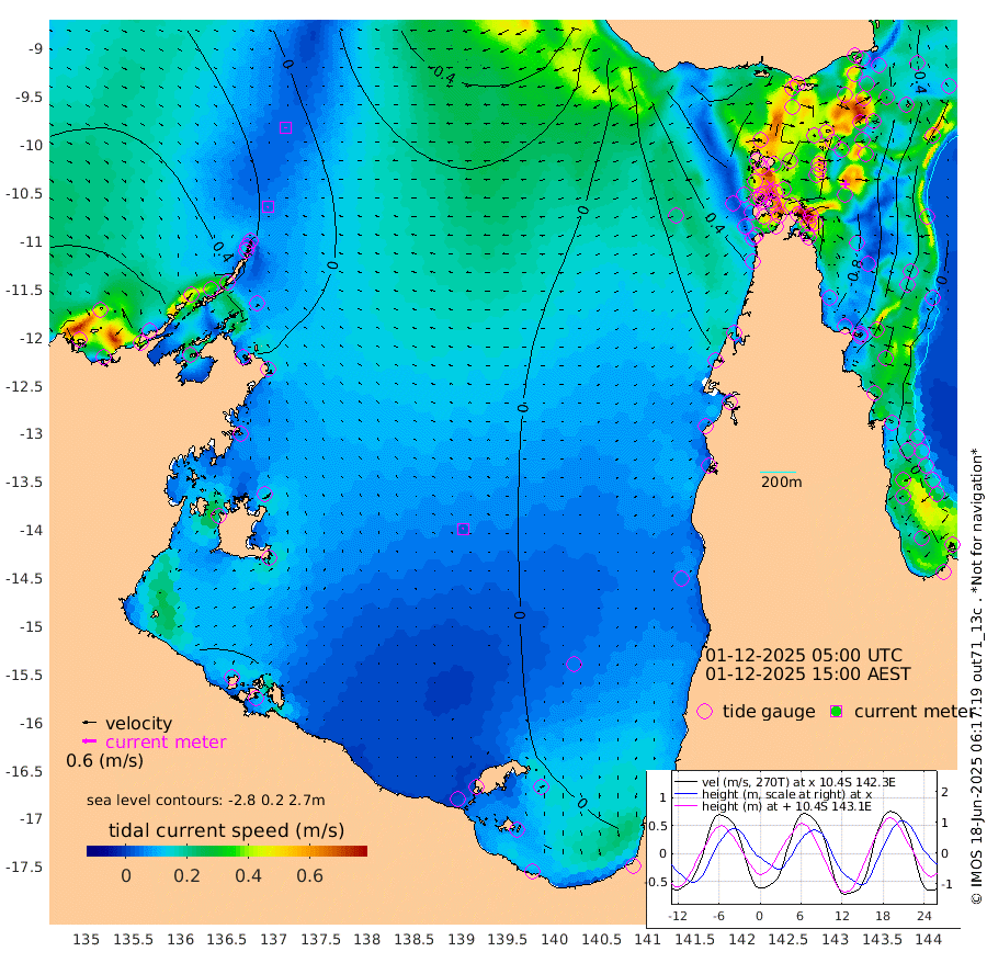 5cm/s -127T +3cm/s rms + 7cm/s -42T. ARA-GOC87 57m 2cm/s -118T +3cm/s rms + 2cm/s -2T. ARA-GOC87 60m 4cm/s -176T +2cm/s rms + 3cm/s 61T. ARA-GOC87 47m -73cm Daru -69cm Bobo Island -16cm Meer Island Barge -43cm Bramble Cay -65cm Unnamed Cay -59cm Pearce Cay -54cm Stephens Island -75cm Merrie England Shoals -82cm Mutacomal Reef -45cm Darnley Island Barge -19cm East Cay -56cm Yorke Island Barge -62cm Rennel Island -58cm Aureed Island -59cm Dungeness Reef -47cm Zagai Island -44cm Yam Island 7cm Dauan Island 4cm Saibai Island -15cm Phipi Reef -41cm Warrior Reef - West 3cm Mabuiag Island Barge -67cm Half Way Island -71cm Coconut Island -65cm Dugong Islet -60cm Poll Island -63cm Kirkcaldie Reef -43cm Suarji Island -54cm Sue Islet 54cm Hawkesbury Island -43cm Alert Patches -46cm Twin Island 41cm Badu Island -42cm St Pauls (Moa Island) 25cm Kubin (Moa Island) -20cm Ince Point -5cm Thursday Island -8cm Nardana Patches 19cm Turtle Head 35cm Round Island 52cm Goods Island 67cm Booby Island 59cm White Rocks Area 47cm Carpentaria -32cm Papou Point 74cm Bampfield Head 48cm Crab Island 55cm Red Wallis Island 27cm Packe Island -80cm Harrington Reef 70cm Herald Camp -21cm Sharp Point 18cm Red Island Point -12cm Possession Island -53cm Alpha Rock -61cm Frederick Point -78cm Wyborn Reef Light -76cm Tetley Island -18cm Triangle Reef -75cm Turtle Head Island -13cm Maclennan Cay 2cm Raine Island -58cm Mcsweeny Reef -51cm Collette Reef -21cm Shadwell Reef -59cm Hannibal Island -44cm Round Point 35cm Vrilya Point -38cm Cape Grenville -22cm Hicks Island -7cm Sir Charles Hardy Island -10cm Harvey Island -24cm Kay Reef -4cm Rocky Island 5cm Chapman Island 5cm Ham Reef -3cm Jubilee Reef -12cm Night Island 0cm Unnamed Reef No. 3 -8cm Morris Island 2cm 1st 3 Mile Opening -4cm Creech Reef -10cm Fife Island -2cm Eden Reef -10cm Stanley Island -11cm Normanby River 87cm Yabooma Island 78cm Hutchison River 68cm Elcho Island 67cm North West Crocodile Island 40cm Cape Wessel 45cm Stevens Island 17cm Guluwuru Island 52cm Hopeful Bay 46cm Auster Point 47cm Two Island Bay 54cm Cadell Strait -53cm Mallison Island 19cm Melville Bay (Gove Harbour) 22cm Truant Island 8cm Cape Arnhem 2cm Cape Grey -12cm Hawk Island -18cm Milner Bay (Groote Eylandt) -24cm Cape Beatrice -37cm West Island -39cm Centre Island -35cm Mornington Island -28cm West Wellesley Islands 0cm Bountiful Island -23cm Albert River Mouth -30cm Sweers Island -22cm Karumba -12cm Nassau River Offshore 7cm Christmas Creek 24cm Archer River 33cm Boyd Point 48cm Weipa (Humbug Point) 7cm Pennefather River 46cm Cullen Point