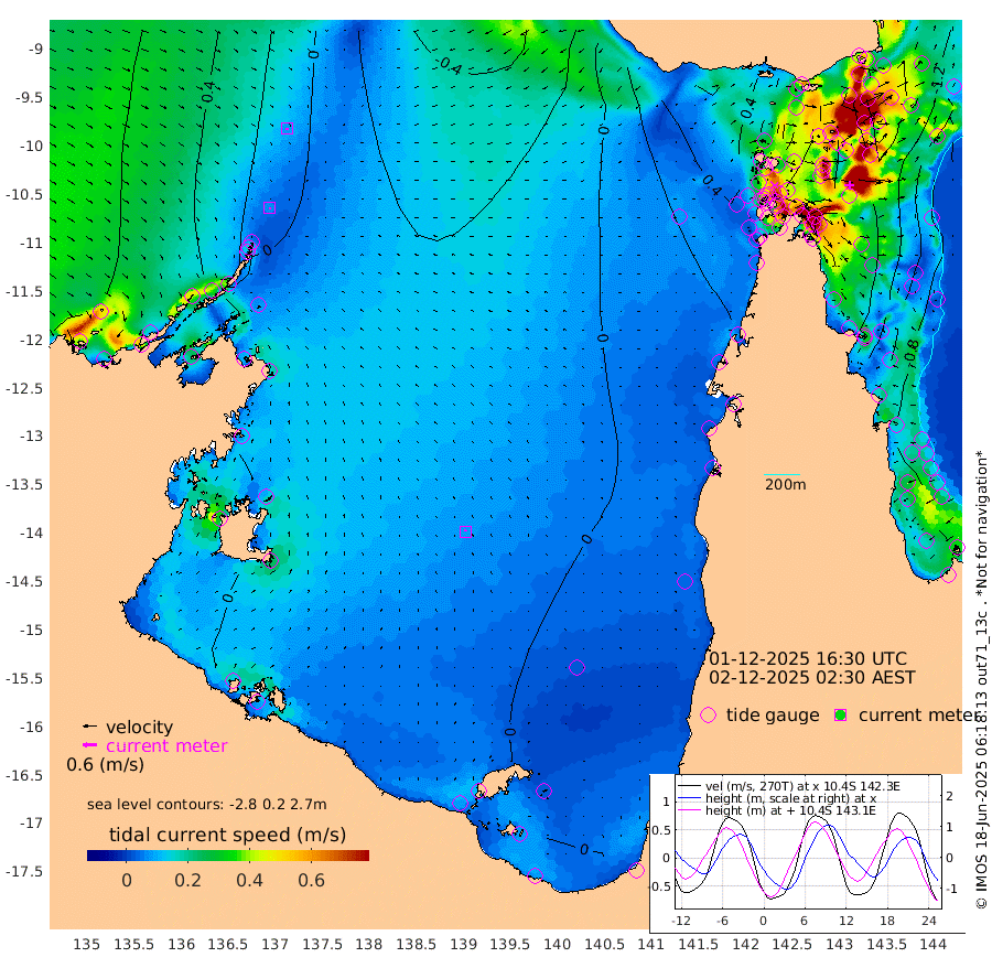 7cm/s -179T +3cm/s rms + 7cm/s -42T. ARA-GOC87 57m 8cm/s -37T +3cm/s rms + 2cm/s -2T. ARA-GOC87 60m 8cm/s 163T +2cm/s rms + 3cm/s 61T. ARA-GOC87 47m -150cm Daru -148cm Bobo Island -89cm Meer Island Barge -121cm Bramble Cay -151cm Unnamed Cay -134cm Pearce Cay -137cm Stephens Island -151cm Merrie England Shoals -158cm Mutacomal Reef -128cm Darnley Island Barge -102cm East Cay -137cm Yorke Island Barge -142cm Rennel Island -134cm Aureed Island -133cm Dungeness Reef -112cm Zagai Island -118cm Yam Island -50cm Dauan Island -62cm Saibai Island -73cm Phipi Reef -109cm Warrior Reef - West -48cm Mabuiag Island Barge -139cm Half Way Island -141cm Coconut Island -144cm Dugong Islet -123cm Poll Island -136cm Kirkcaldie Reef -113cm Suarji Island -126cm Sue Islet -9cm Hawkesbury Island -99cm Alert Patches -105cm Twin Island -6cm Badu Island -98cm St Pauls (Moa Island) -32cm Kubin (Moa Island) -70cm Ince Point -53cm Thursday Island -57cm Nardana Patches -32cm Turtle Head -34cm Round Island 3cm Goods Island 27cm Booby Island 15cm White Rocks Area 20cm Carpentaria -91cm Papou Point -12cm Bampfield Head 30cm Crab Island 23cm Red Wallis Island -16cm Packe Island -157cm Harrington Reef -19cm Herald Camp -30cm Sharp Point -35cm Red Island Point -77cm Possession Island -110cm Alpha Rock -127cm Frederick Point -154cm Wyborn Reef Light -149cm Tetley Island -82cm Triangle Reef -152cm Turtle Head Island -90cm Maclennan Cay -62cm Raine Island -134cm Mcsweeny Reef -126cm Collette Reef -89cm Shadwell Reef -139cm Hannibal Island -122cm Round Point 37cm Vrilya Point -115cm Cape Grenville -105cm Hicks Island -109cm Sir Charles Hardy Island -36cm Harvey Island -103cm Kay Reef -80cm Rocky Island -67cm Chapman Island -68cm Ham Reef -75cm Jubilee Reef -70cm Night Island -68cm Unnamed Reef No. 3 -82cm Morris Island -69cm 1st 3 Mile Opening -75cm Creech Reef -73cm Fife Island -82cm Eden Reef -84cm Stanley Island -95cm Normanby River 44cm Yabooma Island 36cm Hutchison River 48cm Elcho Island 48cm North West Crocodile Island 1cm Cape Wessel 26cm Stevens Island -33cm Guluwuru Island 27cm Hopeful Bay 13cm Auster Point 15cm Two Island Bay 23cm Cadell Strait -90cm Mallison Island -18cm Melville Bay (Gove Harbour) -19cm Truant Island -15cm Cape Arnhem -18cm Cape Grey -10cm Hawk Island 4cm Milner Bay (Groote Eylandt) 5cm Cape Beatrice 5cm West Island 6cm Centre Island -1cm Mornington Island 1cm West Wellesley Islands -7cm Bountiful Island 39cm Albert River Mouth 38cm Sweers Island 29cm Karumba 2cm Nassau River Offshore -7cm Christmas Creek 10cm Archer River 8cm Boyd Point 17cm Weipa (Humbug Point) 27cm Pennefather River 27cm Cullen Point
