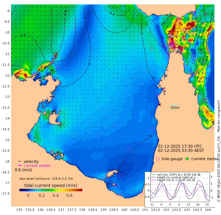 12cm/s 132T +3cm/s rms + 7cm/s -42T. ARA-GOC87 57m 8cm/s -43T +3cm/s rms + 2cm/s -2T. ARA-GOC87 60m 14cm/s 120T +2cm/s rms + 3cm/s 61T. ARA-GOC87 47m -135cm Daru -127cm Bobo Island -50cm Meer Island Barge -83cm Bramble Cay -122cm Unnamed Cay -108cm Pearce Cay -103cm Stephens Island -120cm Merrie England Shoals -145cm Mutacomal Reef -93cm Darnley Island Barge -60cm East Cay -114cm Yorke Island Barge -121cm Rennel Island -116cm Aureed Island -125cm Dungeness Reef -129cm Zagai Island -137cm Yam Island -86cm Dauan Island -99cm Saibai Island -102cm Phipi Reef -129cm Warrior Reef - West -83cm Mabuiag Island Barge -119cm Half Way Island -133cm Coconut Island -131cm Dugong Islet -131cm Poll Island -138cm Kirkcaldie Reef -135cm Suarji Island -134cm Sue Islet -32cm Hawkesbury Island -120cm Alert Patches -125cm Twin Island -33cm Badu Island -125cm St Pauls (Moa Island) -54cm Kubin (Moa Island) -96cm Ince Point -79cm Thursday Island -84cm Nardana Patches -53cm Turtle Head -52cm Round Island -15cm Goods Island 7cm Booby Island -6cm White Rocks Area -1cm Carpentaria -112cm Papou Point -22cm Bampfield Head 14cm Crab Island -1cm Red Wallis Island -38cm Packe Island -146cm Harrington Reef -37cm Herald Camp -44cm Sharp Point -56cm Red Island Point -93cm Possession Island -128cm Alpha Rock -134cm Frederick Point -143cm Wyborn Reef Light -144cm Tetley Island -56cm Triangle Reef -132cm Turtle Head Island -56cm Maclennan Cay -22cm Raine Island -106cm Mcsweeny Reef -96cm Collette Reef -55cm Shadwell Reef -104cm Hannibal Island -83cm Round Point 20cm Vrilya Point -78cm Cape Grenville -65cm Hicks Island -71cm Sir Charles Hardy Island -24cm Harvey Island -62cm Kay Reef -40cm Rocky Island -28cm Chapman Island -30cm Ham Reef -35cm Jubilee Reef -34cm Night Island -30cm Unnamed Reef No. 3 -39cm Morris Island -28cm 1st 3 Mile Opening -34cm Creech Reef -29cm Fife Island -30cm Eden Reef -39cm Stanley Island -46cm Normanby River 88cm Yabooma Island 92cm Hutchison River 93cm Elcho Island 86cm North West Crocodile Island 36cm Cape Wessel 69cm Stevens Island 13cm Guluwuru Island 69cm Hopeful Bay 52cm Auster Point 55cm Two Island Bay 78cm Cadell Strait -29cm Mallison Island 22cm Melville Bay (Gove Harbour) 22cm Truant Island 12cm Cape Arnhem 1cm Cape Grey 2cm Hawk Island 3cm Milner Bay (Groote Eylandt) 2cm Cape Beatrice -14cm West Island -13cm Centre Island -9cm Mornington Island -8cm West Wellesley Islands -13cm Bountiful Island 31cm Albert River Mouth 34cm Sweers Island 21cm Karumba -6cm Nassau River Offshore -11cm Christmas Creek 8cm Archer River 3cm Boyd Point 14cm Weipa (Humbug Point) 20cm Pennefather River 11cm Cullen Point