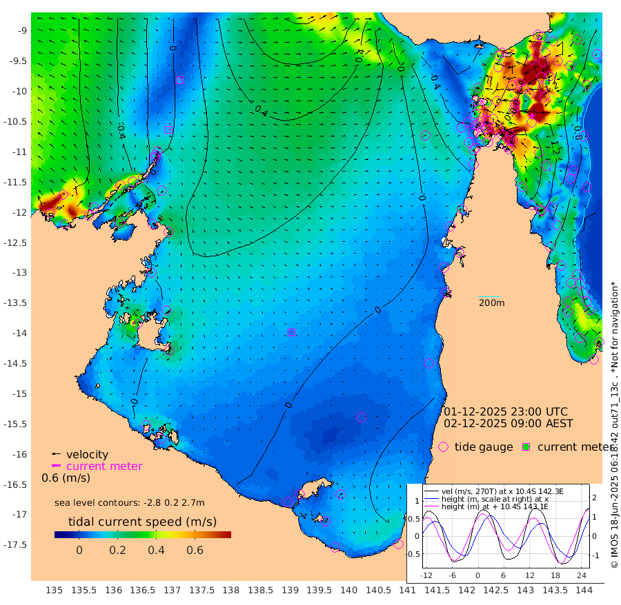 11cm/s 83T +3cm/s rms + 7cm/s -42T. ARA-GOC87 57m 5cm/s 91T +3cm/s rms + 2cm/s -2T. ARA-GOC87 60m 8cm/s 66T +2cm/s rms + 3cm/s 61T. ARA-GOC87 47m 138cm Daru 137cm Bobo Island 81cm Meer Island Barge 110cm Bramble Cay 138cm Unnamed Cay 127cm Pearce Cay 127cm Stephens Island 142cm Merrie England Shoals 144cm Mutacomal Reef 118cm Darnley Island Barge 88cm East Cay 126cm Yorke Island Barge 132cm Rennel Island 127cm Aureed Island 123cm Dungeness Reef 99cm Zagai Island 92cm Yam Island 27cm Dauan Island 32cm Saibai Island 58cm Phipi Reef 88cm Warrior Reef - West 30cm Mabuiag Island Barge 128cm Half Way Island 137cm Coconut Island 129cm Dugong Islet 113cm Poll Island 120cm Kirkcaldie Reef 105cm Suarji Island 110cm Sue Islet -10cm Hawkesbury Island 98cm Alert Patches 97cm Twin Island -1cm Badu Island 88cm St Pauls (Moa Island) 19cm Kubin (Moa Island) 63cm Ince Point 47cm Thursday Island 51cm Nardana Patches 28cm Turtle Head 25cm Round Island -6cm Goods Island -24cm Booby Island -16cm White Rocks Area -8cm Carpentaria 78cm Papou Point 18cm Bampfield Head -21cm Crab Island -24cm Red Wallis Island 9cm Packe Island 149cm Harrington Reef -6cm Herald Camp 26cm Sharp Point 20cm Red Island Point 74cm Possession Island 99cm Alpha Rock 118cm Frederick Point 145cm Wyborn Reef Light 140cm Tetley Island 74cm Triangle Reef 151cm Turtle Head Island 77cm Maclennan Cay 56cm Raine Island 126cm Mcsweeny Reef 119cm Collette Reef 83cm Shadwell Reef 132cm Hannibal Island 113cm Round Point -20cm Vrilya Point 105cm Cape Grenville 92cm Hicks Island 85cm Sir Charles Hardy Island 32cm Harvey Island 91cm Kay Reef 68cm Rocky Island 56cm Chapman Island 56cm Ham Reef 65cm Jubilee Reef 65cm Night Island 59cm Unnamed Reef No. 3 73cm Morris Island 66cm 1st 3 Mile Opening 68cm Creech Reef 66cm Fife Island 73cm Eden Reef 75cm Stanley Island 79cm Normanby River -70cm Yabooma Island -50cm Hutchison River -57cm Elcho Island -67cm North West Crocodile Island -13cm Cape Wessel -34cm Stevens Island 28cm Guluwuru Island -37cm Hopeful Bay -18cm Auster Point -30cm Two Island Bay -39cm Cadell Strait 91cm Mallison Island 15cm Melville Bay (Gove Harbour) 20cm Truant Island 20cm Cape Arnhem 18cm Cape Grey 16cm Hawk Island 3cm Milner Bay (Groote Eylandt) -1cm Cape Beatrice -5cm West Island 2cm Centre Island -3cm Mornington Island -8cm West Wellesley Islands -31cm Bountiful Island -50cm Albert River Mouth -39cm Sweers Island -45cm Karumba -21cm Nassau River Offshore -12cm Christmas Creek -13cm Archer River -9cm Boyd Point -23cm Weipa (Humbug Point) -2cm Pennefather River -25cm Cullen Point