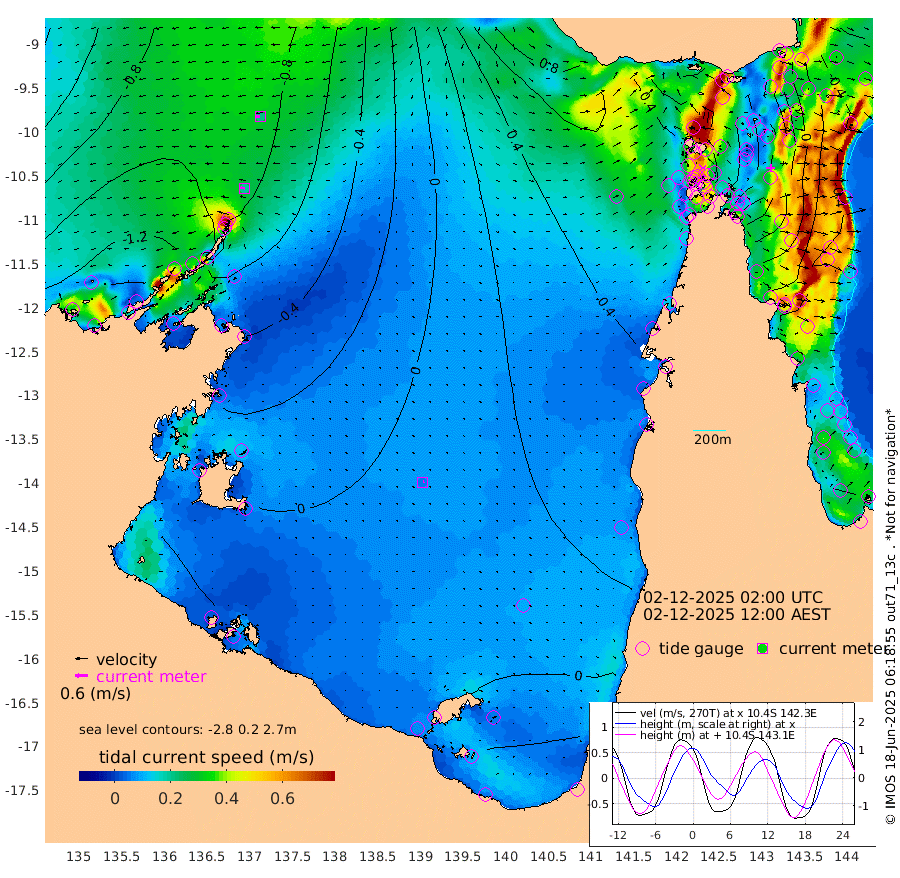 20cm/s -81T +3cm/s rms + 7cm/s -42T. ARA-GOC87 57m 5cm/s 72T +3cm/s rms + 2cm/s -2T. ARA-GOC87 60m 21cm/s -93T +2cm/s rms + 3cm/s 61T. ARA-GOC87 47m 28cm Daru 17cm Bobo Island -33cm Meer Island Barge -26cm Bramble Cay 6cm Unnamed Cay 1cm Pearce Cay -11cm Stephens Island -4cm Merrie England Shoals 31cm Mutacomal Reef -12cm Darnley Island Barge -35cm East Cay 12cm Yorke Island Barge 17cm Rennel Island 22cm Aureed Island 44cm Dungeness Reef 89cm Zagai Island 87cm Yam Island 113cm Dauan Island 117cm Saibai Island 111cm Phipi Reef 90cm Warrior Reef - West 114cm Mabuiag Island Barge 11cm Half Way Island 50cm Coconut Island 30cm Dugong Islet 69cm Poll Island 60cm Kirkcaldie Reef 117cm Suarji Island 74cm Sue Islet 86cm Hawkesbury Island 107cm Alert Patches 99cm Twin Island 96cm Badu Island 111cm St Pauls (Moa Island) 87cm Kubin (Moa Island) 103cm Ince Point 102cm Thursday Island 104cm Nardana Patches 94cm Turtle Head 102cm Round Island 81cm Goods Island 84cm Booby Island 85cm White Rocks Area 89cm Carpentaria 92cm Papou Point 118cm Bampfield Head 65cm Crab Island 82cm Red Wallis Island 84cm Packe Island 42cm Harrington Reef 101cm Herald Camp 39cm Sharp Point 79cm Red Island Point 104cm Possession Island 89cm Alpha Rock 74cm Frederick Point 42cm Wyborn Reef Light 53cm Tetley Island -8cm Triangle Reef 28cm Turtle Head Island -22cm Maclennan Cay -37cm Raine Island 3cm Mcsweeny Reef -2cm Collette Reef -20cm Shadwell Reef -10cm Hannibal Island -26cm Round Point 56cm Vrilya Point -21cm Cape Grenville -28cm Hicks Island -21cm Sir Charles Hardy Island -8cm Harvey Island -33cm Kay Reef -35cm Rocky Island -34cm Chapman Island -34cm Ham Reef -37cm Jubilee Reef -32cm Night Island -35cm Unnamed Reef No. 3 -41cm Morris Island -33cm 1st 3 Mile Opening -36cm Creech Reef -49cm Fife Island -57cm Eden Reef -43cm Stanley Island -54cm Normanby River -134cm Yabooma Island -153cm Hutchison River -137cm Elcho Island -134cm North West Crocodile Island -87cm Cape Wessel -126cm Stevens Island -89cm Guluwuru Island -113cm Hopeful Bay -95cm Auster Point -112cm Two Island Bay -162cm Cadell Strait -113cm Mallison Island -80cm Melville Bay (Gove Harbour) -79cm Truant Island -49cm Cape Arnhem -30cm Cape Grey -20cm Hawk Island -5cm Milner Bay (Groote Eylandt) -7cm Cape Beatrice 19cm West Island 29cm Centre Island 0cm Mornington Island 3cm West Wellesley Islands -6cm Bountiful Island -38cm Albert River Mouth -34cm Sweers Island -31cm Karumba -7cm Nassau River Offshore 9cm Christmas Creek 20cm Archer River 37cm Boyd Point 32cm Weipa (Humbug Point) 31cm Pennefather River 59cm Cullen Point