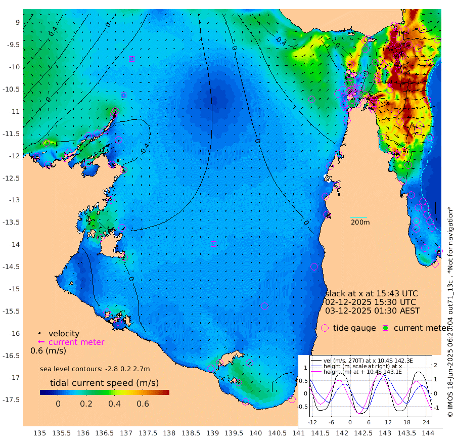 7cm/s -98T +3cm/s rms + 7cm/s -42T. ARA-GOC87 57m 10cm/s 11T +3cm/s rms + 2cm/s -2T. ARA-GOC87 60m 8cm/s -124T +2cm/s rms + 3cm/s 61T. ARA-GOC87 47m -121cm Daru -127cm Bobo Island -122cm Meer Island Barge -137cm Bramble Cay -140cm Unnamed Cay -130cm Pearce Cay -142cm Stephens Island -141cm Merrie England Shoals -122cm Mutacomal Reef -136cm Darnley Island Barge -135cm East Cay -125cm Yorke Island Barge -127cm Rennel Island -119cm Aureed Island -105cm Dungeness Reef -56cm Zagai Island -57cm Yam Island -1cm Dauan Island 0cm Saibai Island -32cm Phipi Reef -55cm Warrior Reef - West 9cm Mabuiag Island Barge -120cm Half Way Island -105cm Coconut Island -114cm Dugong Islet -75cm Poll Island -88cm Kirkcaldie Reef -55cm Suarji Island -71cm Sue Islet 5cm Hawkesbury Island -44cm Alert Patches -46cm Twin Island 12cm Badu Island -32cm St Pauls (Moa Island) -9cm Kubin (Moa Island) -21cm Ince Point -10cm Thursday Island -12cm Nardana Patches -12cm Turtle Head -19cm Round Island 1cm Goods Island 21cm Booby Island 14cm White Rocks Area 33cm Carpentaria -34cm Papou Point -22cm Bampfield Head 25cm Crab Island 26cm Red Wallis Island -4cm Packe Island -119cm Harrington Reef -17cm Herald Camp 0cm Sharp Point -9cm Red Island Point -41cm Possession Island -47cm Alpha Rock -76cm Frederick Point -115cm Wyborn Reef Light -103cm Tetley Island -98cm Triangle Reef -126cm Turtle Head Island -117cm Maclennan Cay -106cm Raine Island -128cm Mcsweeny Reef -128cm Collette Reef -114cm Shadwell Reef -143cm Hannibal Island -140cm Round Point 39cm Vrilya Point -133cm Cape Grenville -133cm Hicks Island -137cm Sir Charles Hardy Island -42cm Harvey Island -132cm Kay Reef -120cm Rocky Island -111cm Chapman Island -109cm Ham Reef -114cm Jubilee Reef -105cm Night Island -108cm Unnamed Reef No. 3 -125cm Morris Island -116cm 1st 3 Mile Opening -117cm Creech Reef -118cm Fife Island -139cm Eden Reef -127cm Stanley Island -139cm Normanby River -45cm Yabooma Island -70cm Hutchison River -43cm Elcho Island -33cm North West Crocodile Island -45cm Cape Wessel -43cm Stevens Island -80cm Guluwuru Island -45cm Hopeful Bay -47cm Auster Point -44cm Two Island Bay -63cm Cadell Strait -108cm Mallison Island -65cm Melville Bay (Gove Harbour) -67cm Truant Island -46cm Cape Arnhem -34cm Cape Grey -22cm Hawk Island 10cm Milner Bay (Groote Eylandt) 11cm Cape Beatrice 36cm West Island 36cm Centre Island -3cm Mornington Island 1cm West Wellesley Islands -21cm Bountiful Island 13cm Albert River Mouth 12cm Sweers Island 4cm Karumba -11cm Nassau River Offshore -24cm Christmas Creek -11cm Archer River -6cm Boyd Point -10cm Weipa (Humbug Point) 21cm Pennefather River 23cm Cullen Point