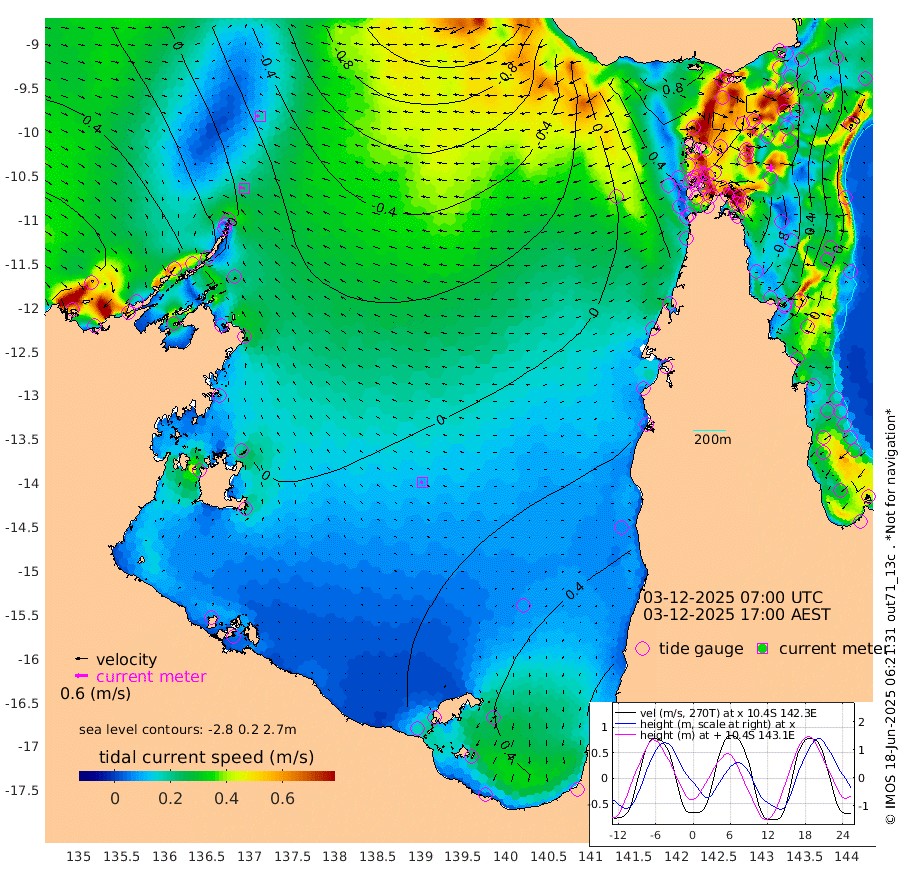 22cm/s -82T +3cm/s rms + 7cm/s -42T. ARA-GOC87 57m 10cm/s -104T +3cm/s rms + 2cm/s -2T. ARA-GOC87 60m 17cm/s -87T +2cm/s rms + 3cm/s 61T. ARA-GOC87 47m -79cm Daru -77cm Bobo Island -11cm Meer Island Barge -35cm Bramble Cay -64cm Unnamed Cay -66cm Pearce Cay -53cm Stephens Island -69cm Merrie England Shoals -85cm Mutacomal Reef -46cm Darnley Island Barge -8cm East Cay -64cm Yorke Island Barge -67cm Rennel Island -68cm Aureed Island -72cm Dungeness Reef -76cm Zagai Island -69cm Yam Island -29cm Dauan Island -33cm Saibai Island -34cm Phipi Reef -66cm Warrior Reef - West -34cm Mabuiag Island Barge -74cm Half Way Island -85cm Coconut Island -78cm Dugong Islet -82cm Poll Island -80cm Kirkcaldie Reef -71cm Suarji Island -79cm Sue Islet 17cm Hawkesbury Island -72cm Alert Patches -77cm Twin Island 3cm Badu Island -77cm St Pauls (Moa Island) -8cm Kubin (Moa Island) -52cm Ince Point -39cm Thursday Island -42cm Nardana Patches -11cm Turtle Head 8cm Round Island 20cm Goods Island 31cm Booby Island 25cm White Rocks Area 5cm Carpentaria -65cm Papou Point 36cm Bampfield Head 20cm Crab Island 21cm Red Wallis Island 2cm Packe Island -93cm Harrington Reef 45cm Herald Camp -29cm Sharp Point -8cm Red Island Point -39cm Possession Island -78cm Alpha Rock -83cm Frederick Point -89cm Wyborn Reef Light -91cm Tetley Island -18cm Triangle Reef -93cm Turtle Head Island -9cm Maclennan Cay 11cm Raine Island -59cm Mcsweeny Reef -49cm Collette Reef -15cm Shadwell Reef -54cm Hannibal Island -35cm Round Point 5cm Vrilya Point -27cm Cape Grenville -14cm Hicks Island -2cm Sir Charles Hardy Island -7cm Harvey Island -10cm Kay Reef 8cm Rocky Island 15cm Chapman Island 14cm Ham Reef 5cm Jubilee Reef -2cm Night Island 10cm Unnamed Reef No. 3 4cm Morris Island 8cm 1st 3 Mile Opening 5cm Creech Reef 6cm Fife Island 11cm Eden Reef 3cm Stanley Island 4cm Normanby River 74cm Yabooma Island 63cm Hutchison River 59cm Elcho Island 61cm North West Crocodile Island 11cm Cape Wessel 29cm Stevens Island -16cm Guluwuru Island 46cm Hopeful Bay 21cm Auster Point 23cm Two Island Bay 27cm Cadell Strait -83cm Mallison Island -2cm Melville Bay (Gove Harbour) -8cm Truant Island -9cm Cape Arnhem -3cm Cape Grey -2cm Hawk Island -1cm Milner Bay (Groote Eylandt) 3cm Cape Beatrice 1cm West Island -2cm Centre Island 32cm Mornington Island 32cm West Wellesley Islands 83cm Bountiful Island 73cm Albert River Mouth 73cm Sweers Island 80cm Karumba 48cm Nassau River Offshore 45cm Christmas Creek 37cm Archer River 28cm Boyd Point 50cm Weipa (Humbug Point) -4cm Pennefather River 26cm Cullen Point