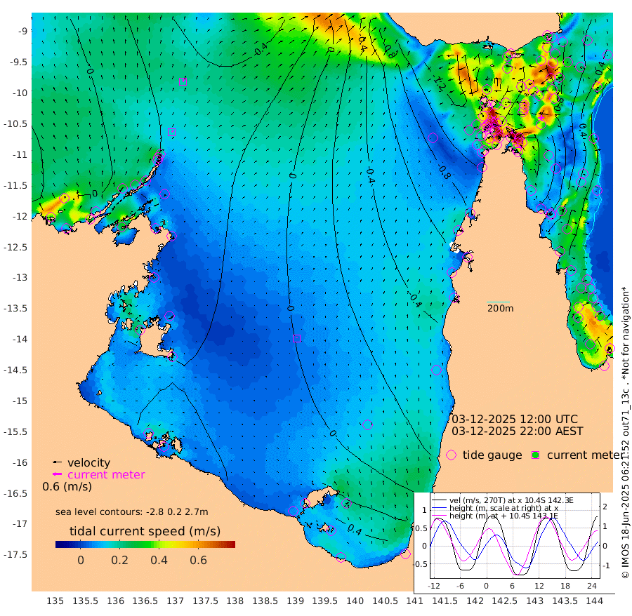 16cm/s 43T +3cm/s rms + 7cm/s -42T. ARA-GOC87 57m 4cm/s -9T +3cm/s rms + 2cm/s -2T. ARA-GOC87 60m 19cm/s 35T +2cm/s rms + 3cm/s 61T. ARA-GOC87 47m 90cm Daru 91cm Bobo Island 30cm Meer Island Barge 60cm Bramble Cay 83cm Unnamed Cay 80cm Pearce Cay 73cm Stephens Island 86cm Merrie England Shoals 97cm Mutacomal Reef 65cm Darnley Island Barge 35cm East Cay 77cm Yorke Island Barge 76cm Rennel Island 77cm Aureed Island 72cm Dungeness Reef 60cm Zagai Island 63cm Yam Island -2cm Dauan Island 9cm Saibai Island 15cm Phipi Reef 57cm Warrior Reef - West -15cm Mabuiag Island Barge 84cm Half Way Island 75cm Coconut Island 85cm Dugong Islet 68cm Poll Island 73cm Kirkcaldie Reef 39cm Suarji Island 67cm Sue Islet -96cm Hawkesbury Island 22cm Alert Patches 36cm Twin Island -90cm Badu Island 35cm St Pauls (Moa Island) -57cm Kubin (Moa Island) -4cm Ince Point -27cm Thursday Island -22cm Nardana Patches -63cm Turtle Head -80cm Round Island -112cm Goods Island -145cm Booby Island -127cm White Rocks Area -131cm Carpentaria 30cm Papou Point -157cm Bampfield Head -125cm Crab Island -128cm Red Wallis Island -80cm Packe Island 91cm Harrington Reef -115cm Herald Camp 20cm Sharp Point -46cm Red Island Point -14cm Possession Island 50cm Alpha Rock 60cm Frederick Point 89cm Wyborn Reef Light 85cm Tetley Island 25cm Triangle Reef 84cm Turtle Head Island 26cm Maclennan Cay -1cm Raine Island 70cm Mcsweeny Reef 61cm Collette Reef 26cm Shadwell Reef 72cm Hannibal Island 56cm Round Point -119cm Vrilya Point 48cm Cape Grenville 37cm Hicks Island 30cm Sir Charles Hardy Island 15cm Harvey Island 33cm Kay Reef 14cm Rocky Island 0cm Chapman Island 2cm Ham Reef 11cm Jubilee Reef 14cm Night Island 3cm Unnamed Reef No. 3 15cm Morris Island -2cm 1st 3 Mile Opening 8cm Creech Reef 13cm Fife Island 13cm Eden Reef 16cm Stanley Island 30cm Normanby River 2cm Yabooma Island 13cm Hutchison River 6cm Elcho Island 14cm North West Crocodile Island 27cm Cape Wessel 28cm Stevens Island 51cm Guluwuru Island 14cm Hopeful Bay 17cm Auster Point 31cm Two Island Bay 46cm Cadell Strait 104cm Mallison Island 38cm Melville Bay (Gove Harbour) 35cm Truant Island 27cm Cape Arnhem 32cm Cape Grey 34cm Hawk Island 36cm Milner Bay (Groote Eylandt) 38cm Cape Beatrice 45cm West Island 38cm Centre Island 47cm Mornington Island 44cm West Wellesley Islands 54cm Bountiful Island 66cm Albert River Mouth 72cm Sweers Island 61cm Karumba 20cm Nassau River Offshore -18cm Christmas Creek -65cm Archer River -79cm Boyd Point -93cm Weipa (Humbug Point) -81cm Pennefather River -111cm Cullen Point