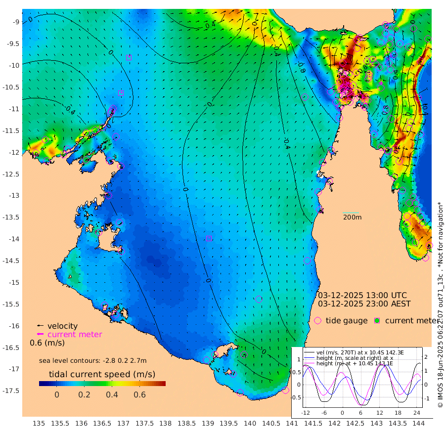 13cm/s 31T +3cm/s rms + 7cm/s -42T. ARA-GOC87 57m 8cm/s 20T +3cm/s rms + 2cm/s -2T. ARA-GOC87 60m 15cm/s 25T +2cm/s rms + 3cm/s 61T. ARA-GOC87 47m 60cm Daru 56cm Bobo Island -15cm Meer Island Barge 12cm Bramble Cay 42cm Unnamed Cay 40cm Pearce Cay 28cm Stephens Island 43cm Merrie England Shoals 67cm Mutacomal Reef 22cm Darnley Island Barge -16cm East Cay 43cm Yorke Island Barge 41cm Rennel Island 45cm Aureed Island 49cm Dungeness Reef 61cm Zagai Island 62cm Yam Island 18cm Dauan Island 31cm Saibai Island 23cm Phipi Reef 58cm Warrior Reef - West 10cm Mabuiag Island Barge 51cm Half Way Island 54cm Coconut Island 57cm Dugong Islet 60cm Poll Island 59cm Kirkcaldie Reef 44cm Suarji Island 62cm Sue Islet -81cm Hawkesbury Island 30cm Alert Patches 43cm Twin Island -70cm Badu Island 48cm St Pauls (Moa Island) -45cm Kubin (Moa Island) 11cm Ince Point -10cm Thursday Island -5cm Nardana Patches -50cm Turtle Head -69cm Round Island -99cm Goods Island -124cm Booby Island -109cm White Rocks Area -101cm Carpentaria 39cm Papou Point -144cm Bampfield Head -105cm Crab Island -106cm Red Wallis Island -68cm Packe Island 65cm Harrington Reef -106cm Herald Camp 29cm Sharp Point -35cm Red Island Point -7cm Possession Island 55cm Alpha Rock 53cm Frederick Point 63cm Wyborn Reef Light 66cm Tetley Island -8cm Triangle Reef 54cm Turtle Head Island -16cm Maclennan Cay -43cm Raine Island 32cm Mcsweeny Reef 22cm Collette Reef -13cm Shadwell Reef 27cm Hannibal Island 7cm Round Point -93cm Vrilya Point 2cm Cape Grenville -11cm Hicks Island -19cm Sir Charles Hardy Island 0cm Harvey Island -16cm Kay Reef -32cm Rocky Island -43cm Chapman Island -40cm Ham Reef -32cm Jubilee Reef -26cm Night Island -40cm Unnamed Reef No. 3 -34cm Morris Island -46cm 1st 3 Mile Opening -37cm Creech Reef -33cm Fife Island -44cm Eden Reef -33cm Stanley Island -26cm Normanby River -50cm Yabooma Island -52cm Hutchison River -45cm Elcho Island -34cm North West Crocodile Island -7cm Cape Wessel -17cm Stevens Island 8cm Guluwuru Island -31cm Hopeful Bay -20cm Auster Point -9cm Two Island Bay -11cm Cadell Strait 64cm Mallison Island 1cm Melville Bay (Gove Harbour) -1cm Truant Island 3cm Cape Arnhem 15cm Cape Grey 22cm Hawk Island 38cm Milner Bay (Groote Eylandt) 38cm Cape Beatrice 59cm West Island 54cm Centre Island 39cm Mornington Island 39cm West Wellesley Islands 33cm Bountiful Island 48cm Albert River Mouth 57cm Sweers Island 42cm Karumba 7cm Nassau River Offshore -29cm Christmas Creek -68cm Archer River -75cm Boyd Point -93cm Weipa (Humbug Point) -66cm Pennefather River -93cm Cullen Point
