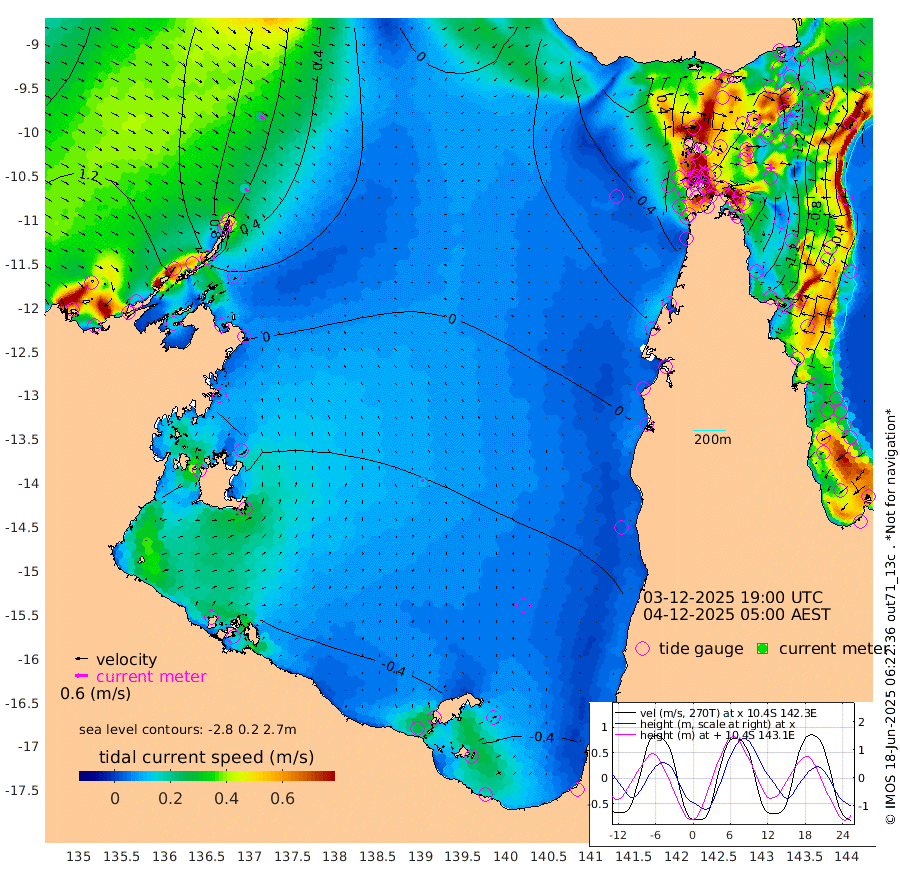 19cm/s 135T +3cm/s rms + 7cm/s -42T. ARA-GOC87 57m 11cm/s 0T +3cm/s rms + 2cm/s -2T. ARA-GOC87 60m 22cm/s 131T +2cm/s rms + 3cm/s 61T. ARA-GOC87 47m -144cm Daru -132cm Bobo Island -46cm Meer Island Barge -78cm Bramble Cay -123cm Unnamed Cay -113cm Pearce Cay -103cm Stephens Island -117cm Merrie England Shoals -149cm Mutacomal Reef -96cm Darnley Island Barge -51cm East Cay -120cm Yorke Island Barge -123cm Rennel Island -125cm Aureed Island -139cm Dungeness Reef -146cm Zagai Island -150cm Yam Island -116cm Dauan Island -119cm Saibai Island -137cm Phipi Reef -154cm Warrior Reef - West -84cm Mabuiag Island Barge -123cm Half Way Island -137cm Coconut Island -139cm Dugong Islet -142cm Poll Island -144cm Kirkcaldie Reef -151cm Suarji Island -143cm Sue Islet 6cm Hawkesbury Island -123cm Alert Patches -128cm Twin Island -7cm Badu Island -135cm St Pauls (Moa Island) -35cm Kubin (Moa Island) -93cm Ince Point -69cm Thursday Island -76cm Nardana Patches -39cm Turtle Head -26cm Round Island 18cm Goods Island 53cm Booby Island 38cm White Rocks Area 53cm Carpentaria -110cm Papou Point 31cm Bampfield Head 54cm Crab Island 41cm Red Wallis Island -15cm Packe Island -149cm Harrington Reef -5cm Herald Camp -51cm Sharp Point -32cm Red Island Point -86cm Possession Island -129cm Alpha Rock -137cm Frederick Point -144cm Wyborn Reef Light -146cm Tetley Island -53cm Triangle Reef -129cm Turtle Head Island -50cm Maclennan Cay -12cm Raine Island -108cm Mcsweeny Reef -96cm Collette Reef -51cm Shadwell Reef -103cm Hannibal Island -76cm Round Point 63cm Vrilya Point -71cm Cape Grenville -59cm Hicks Island -64cm Sir Charles Hardy Island -22cm Harvey Island -49cm Kay Reef -31cm Rocky Island -18cm Chapman Island -17cm Ham Reef -25cm Jubilee Reef -29cm Night Island -17cm Unnamed Reef No. 3 -28cm Morris Island -19cm 1st 3 Mile Opening -25cm Creech Reef -22cm Fife Island -20cm Eden Reef -29cm Stanley Island -34cm Normanby River 124cm Yabooma Island 129cm Hutchison River 128cm Elcho Island 119cm North West Crocodile Island 65cm Cape Wessel 100cm Stevens Island 25cm Guluwuru Island 96cm Hopeful Bay 79cm Auster Point 80cm Two Island Bay 100cm Cadell Strait -32cm Mallison Island 31cm Melville Bay (Gove Harbour) 35cm Truant Island 14cm Cape Arnhem -4cm Cape Grey -14cm Hawk Island -18cm Milner Bay (Groote Eylandt) -23cm Cape Beatrice -48cm West Island -48cm Centre Island -72cm Mornington Island -72cm West Wellesley Islands -89cm Bountiful Island -60cm Albert River Mouth -62cm Sweers Island -67cm Karumba -59cm Nassau River Offshore -44cm Christmas Creek 8cm Archer River 15cm Boyd Point 23cm Weipa (Humbug Point) 41cm Pennefather River 41cm Cullen Point