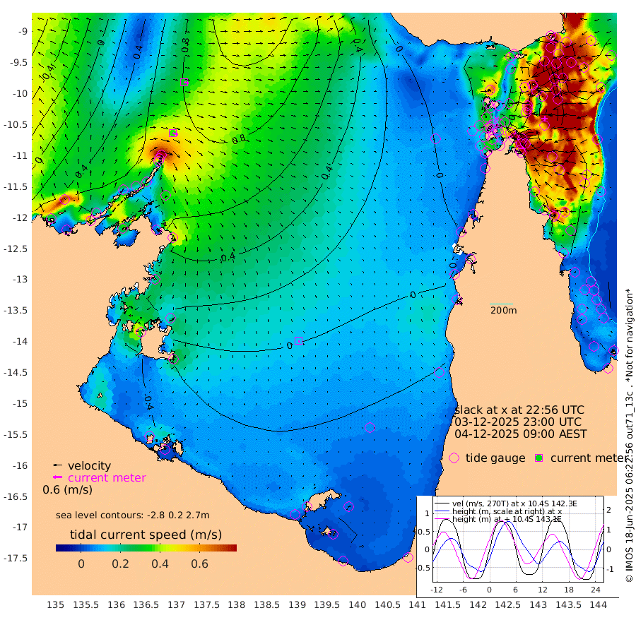 36cm/s 111T +3cm/s rms + 7cm/s -42T. ARA-GOC87 57m 13cm/s 161T +3cm/s rms + 2cm/s -2T. ARA-GOC87 60m 30cm/s 103T +2cm/s rms + 3cm/s 61T. ARA-GOC87 47m 141cm Daru 151cm Bobo Island 130cm Meer Island Barge 151cm Bramble Cay 155cm Unnamed Cay 159cm Pearce Cay 160cm Stephens Island 162cm Merrie England Shoals 142cm Mutacomal Reef 150cm Darnley Island Barge 138cm East Cay 142cm Yorke Island Barge 146cm Rennel Island 141cm Aureed Island 125cm Dungeness Reef 72cm Zagai Island 67cm Yam Island 1cm Dauan Island -6cm Saibai Island 28cm Phipi Reef 64cm Warrior Reef - West -2cm Mabuiag Island Barge 146cm Half Way Island 133cm Coconut Island 136cm Dugong Islet 99cm Poll Island 109cm Kirkcaldie Reef 68cm Suarji Island 87cm Sue Islet 14cm Hawkesbury Island 69cm Alert Patches 73cm Twin Island 14cm Badu Island 56cm St Pauls (Moa Island) 31cm Kubin (Moa Island) 45cm Ince Point 35cm Thursday Island 36cm Nardana Patches 34cm Turtle Head 26cm Round Island 26cm Goods Island 10cm Booby Island 15cm White Rocks Area 3cm Carpentaria 56cm Papou Point 35cm Bampfield Head 8cm Crab Island 7cm Red Wallis Island 30cm Packe Island 148cm Harrington Reef 9cm Herald Camp 3cm Sharp Point 25cm Red Island Point 55cm Possession Island 67cm Alpha Rock 102cm Frederick Point 140cm Wyborn Reef Light 129cm Tetley Island 109cm Triangle Reef 163cm Turtle Head Island 121cm Maclennan Cay 111cm Raine Island 146cm Mcsweeny Reef 142cm Collette Reef 120cm Shadwell Reef 160cm Hannibal Island 155cm Round Point 4cm Vrilya Point 141cm Cape Grenville 137cm Hicks Island 132cm Sir Charles Hardy Island 44cm Harvey Island 136cm Kay Reef 118cm Rocky Island 111cm Chapman Island 107cm Ham Reef 117cm Jubilee Reef 111cm Night Island 111cm Unnamed Reef No. 3 128cm Morris Island 121cm 1st 3 Mile Opening 122cm Creech Reef 122cm Fife Island 145cm Eden Reef 129cm Stanley Island 141cm Normanby River 56cm Yabooma Island 100cm Hutchison River 67cm Elcho Island 50cm North West Crocodile Island 71cm Cape Wessel 74cm Stevens Island 116cm Guluwuru Island 59cm Hopeful Bay 72cm Auster Point 69cm Two Island Bay 106cm Cadell Strait 160cm Mallison Island 89cm Melville Bay (Gove Harbour) 99cm Truant Island 65cm Cape Arnhem 31cm Cape Grey 13cm Hawk Island -34cm Milner Bay (Groote Eylandt) -38cm Cape Beatrice -83cm West Island -79cm Centre Island -61cm Mornington Island -66cm West Wellesley Islands -91cm Bountiful Island -106cm Albert River Mouth -118cm Sweers Island -106cm Karumba -43cm Nassau River Offshore -12cm Christmas Creek 7cm Archer River 11cm Boyd Point 7cm Weipa (Humbug Point) 16cm Pennefather River -5cm Cullen Point