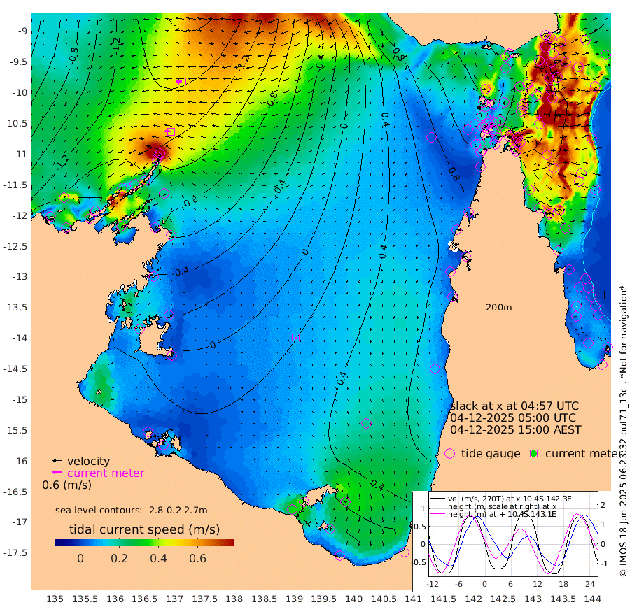 44cm/s -84T +3cm/s rms + 7cm/s -42T. ARA-GOC87 57m 11cm/s -176T +3cm/s rms + 2cm/s -2T. ARA-GOC87 60m 46cm/s -93T +2cm/s rms + 3cm/s 61T. ARA-GOC87 47m -45cm Daru -65cm Bobo Island -61cm Meer Island Barge -76cm Bramble Cay -64cm Unnamed Cay -73cm Pearce Cay -73cm Stephens Island -75cm Merrie England Shoals -49cm Mutacomal Reef -67cm Darnley Island Barge -66cm East Cay -55cm Yorke Island Barge -52cm Rennel Island -50cm Aureed Island -23cm Dungeness Reef 23cm Zagai Island 29cm Yam Island 105cm Dauan Island 98cm Saibai Island 89cm Phipi Reef 39cm Warrior Reef - West 94cm Mabuiag Island Barge -59cm Half Way Island -31cm Coconut Island -42cm Dugong Islet -2cm Poll Island -8cm Kirkcaldie Reef 51cm Suarji Island 7cm Sue Islet 104cm Hawkesbury Island 51cm Alert Patches 37cm Twin Island 106cm Badu Island 53cm St Pauls (Moa Island) 85cm Kubin (Moa Island) 67cm Ince Point 79cm Thursday Island 78cm Nardana Patches 93cm Turtle Head 103cm Round Island 104cm Goods Island 120cm Booby Island 110cm White Rocks Area 107cm Carpentaria 36cm Papou Point 133cm Bampfield Head 99cm Crab Island 114cm Red Wallis Island 96cm Packe Island -46cm Harrington Reef 135cm Herald Camp 21cm Sharp Point 74cm Red Island Point 63cm Possession Island 26cm Alpha Rock 2cm Frederick Point -44cm Wyborn Reef Light -32cm Tetley Island -39cm Triangle Reef -63cm Turtle Head Island -48cm Maclennan Cay -45cm Raine Island -59cm Mcsweeny Reef -57cm Collette Reef -47cm Shadwell Reef -72cm Hannibal Island -76cm Round Point 89cm Vrilya Point -63cm Cape Grenville -61cm Hicks Island -46cm Sir Charles Hardy Island -19cm Harvey Island -63cm Kay Reef -50cm Rocky Island -43cm Chapman Island -43cm Ham Reef -51cm Jubilee Reef -47cm Night Island -45cm Unnamed Reef No. 3 -58cm Morris Island -44cm 1st 3 Mile Opening -50cm Creech Reef -58cm Fife Island -74cm Eden Reef -59cm Stanley Island -77cm Normanby River -153cm Yabooma Island -196cm Hutchison River -168cm Elcho Island -159cm North West Crocodile Island -136cm Cape Wessel -169cm Stevens Island -150cm Guluwuru Island -143cm Hopeful Bay -139cm Auster Point -152cm Two Island Bay -207cm Cadell Strait -174cm Mallison Island -127cm Melville Bay (Gove Harbour) -134cm Truant Island -85cm Cape Arnhem -57cm Cape Grey -40cm Hawk Island -14cm Milner Bay (Groote Eylandt) -6cm Cape Beatrice 33cm West Island 37cm Centre Island 41cm Mornington Island 46cm West Wellesley Islands 59cm Bountiful Island 27cm Albert River Mouth 23cm Sweers Island 40cm Karumba 57cm Nassau River Offshore 71cm Christmas Creek 69cm Archer River 76cm Boyd Point 87cm Weipa (Humbug Point) 57cm Pennefather River 100cm Cullen Point