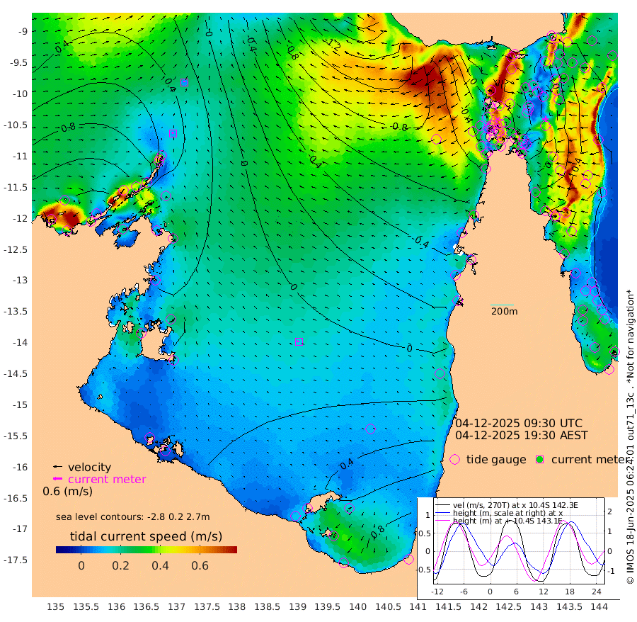 10cm/s -47T +3cm/s rms + 7cm/s -42T. ARA-GOC87 57m 14cm/s -85T +3cm/s rms + 2cm/s -2T. ARA-GOC87 60m 9cm/s -6T +2cm/s rms + 3cm/s 61T. ARA-GOC87 47m -6cm Daru 4cm Bobo Island 41cm Meer Island Barge 40cm Bramble Cay 16cm Unnamed Cay 15cm Pearce Cay 25cm Stephens Island 18cm Merrie England Shoals -6cm Mutacomal Reef 24cm Darnley Island Barge 51cm East Cay 5cm Yorke Island Barge 4cm Rennel Island 1cm Aureed Island -15cm Dungeness Reef -53cm Zagai Island -47cm Yam Island -69cm Dauan Island -71cm Saibai Island -46cm Phipi Reef -47cm Warrior Reef - West -81cm Mabuiag Island Barge 0cm Half Way Island -25cm Coconut Island -12cm Dugong Islet -41cm Poll Island -35cm Kirkcaldie Reef -62cm Suarji Island -47cm Sue Islet -69cm Hawkesbury Island -75cm Alert Patches -70cm Twin Island -78cm Badu Island -80cm St Pauls (Moa Island) -65cm Kubin (Moa Island) -77cm Ince Point -81cm Thursday Island -80cm Nardana Patches -70cm Turtle Head -61cm Round Island -66cm Goods Island -81cm Booby Island -73cm White Rocks Area -106cm Carpentaria -65cm Papou Point -81cm Bampfield Head -75cm Crab Island -81cm Red Wallis Island -65cm Packe Island -20cm Harrington Reef -54cm Herald Camp -29cm Sharp Point -56cm Red Island Point -63cm Possession Island -63cm Alpha Rock -48cm Frederick Point -20cm Wyborn Reef Light -30cm Tetley Island 22cm Triangle Reef -21cm Turtle Head Island 36cm Maclennan Cay 44cm Raine Island 11cm Mcsweeny Reef 18cm Collette Reef 31cm Shadwell Reef 26cm Hannibal Island 40cm Round Point -89cm Vrilya Point 37cm Cape Grenville 44cm Hicks Island 47cm Sir Charles Hardy Island 12cm Harvey Island 47cm Kay Reef 51cm Rocky Island 49cm Chapman Island 46cm Ham Reef 44cm Jubilee Reef 40cm Night Island 44cm Unnamed Reef No. 3 52cm Morris Island 41cm 1st 3 Mile Opening 45cm Creech Reef 51cm Fife Island 67cm Eden Reef 51cm Stanley Island 65cm Normanby River 131cm Yabooma Island 150cm Hutchison River 129cm Elcho Island 130cm North West Crocodile Island 62cm Cape Wessel 102cm Stevens Island 57cm Guluwuru Island 106cm Hopeful Bay 75cm Auster Point 84cm Two Island Bay 117cm Cadell Strait 9cm Mallison Island 60cm Melville Bay (Gove Harbour) 52cm Truant Island 32cm Cape Arnhem 33cm Cape Grey 36cm Hawk Island 27cm Milner Bay (Groote Eylandt) 31cm Cape Beatrice 18cm West Island 13cm Centre Island 71cm Mornington Island 63cm West Wellesley Islands 125cm Bountiful Island 141cm Albert River Mouth 145cm Sweers Island 142cm Karumba 67cm Nassau River Offshore 36cm Christmas Creek -3cm Archer River -30cm Boyd Point -13cm Weipa (Humbug Point) -60cm Pennefather River -63cm Cullen Point