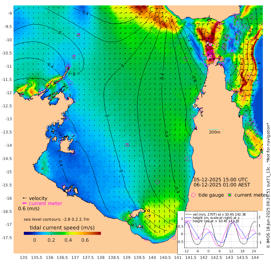 21cm/s 31T +3cm/s rms + 7cm/s -42T. ARA-GOC87 57m 22cm/s 10T +3cm/s rms + 2cm/s -2T. ARA-GOC87 60m 24cm/s 32T +2cm/s rms + 3cm/s 61T. ARA-GOC87 47m 3cm Daru 1cm Bobo Island -52cm Meer Island Barge -39cm Bramble Cay -15cm Unnamed Cay -16cm Pearce Cay -25cm Stephens Island -16cm Merrie England Shoals 5cm Mutacomal Reef -24cm Darnley Island Barge -60cm East Cay -5cm Yorke Island Barge -14cm Rennel Island -4cm Aureed Island -5cm Dungeness Reef 20cm Zagai Island 10cm Yam Island -17cm Dauan Island 0cm Saibai Island -24cm Phipi Reef 9cm Warrior Reef - West -23cm Mabuiag Island Barge -5cm Half Way Island -1cm Coconut Island 1cm Dugong Islet 9cm Poll Island 0cm Kirkcaldie Reef 0cm Suarji Island 18cm Sue Islet -140cm Hawkesbury Island -18cm Alert Patches -8cm Twin Island -124cm Badu Island 2cm St Pauls (Moa Island) -100cm Kubin (Moa Island) -37cm Ince Point -58cm Thursday Island -52cm Nardana Patches -102cm Turtle Head -117cm Round Island -154cm Goods Island -173cm Booby Island -161cm White Rocks Area -127cm Carpentaria -7cm Papou Point -184cm Bampfield Head -147cm Crab Island -158cm Red Wallis Island -129cm Packe Island 6cm Harrington Reef -159cm Herald Camp 18cm Sharp Point -89cm Red Island Point -49cm Possession Island 10cm Alpha Rock -1cm Frederick Point 7cm Wyborn Reef Light 11cm Tetley Island -45cm Triangle Reef -2cm Turtle Head Island -56cm Maclennan Cay -76cm Raine Island -17cm Mcsweeny Reef -25cm Collette Reef -50cm Shadwell Reef -26cm Hannibal Island -46cm Round Point -128cm Vrilya Point -46cm Cape Grenville -55cm Hicks Island -66cm Sir Charles Hardy Island -14cm Harvey Island -61cm Kay Reef -69cm Rocky Island -78cm Chapman Island -73cm Ham Reef -68cm Jubilee Reef -59cm Night Island -75cm Unnamed Reef No. 3 -73cm Morris Island -77cm 1st 3 Mile Opening -72cm Creech Reef -66cm Fife Island -85cm Eden Reef -72cm Stanley Island -69cm Normanby River -64cm Yabooma Island -75cm Hutchison River -58cm Elcho Island -51cm North West Crocodile Island -4cm Cape Wessel -23cm Stevens Island 7cm Guluwuru Island -34cm Hopeful Bay -16cm Auster Point -8cm Two Island Bay -24cm Cadell Strait 75cm Mallison Island 4cm Melville Bay (Gove Harbour) 4cm Truant Island 11cm Cape Arnhem 29cm Cape Grey 36cm Hawk Island 67cm Milner Bay (Groote Eylandt) 59cm Cape Beatrice 89cm West Island 85cm Centre Island 46cm Mornington Island 52cm West Wellesley Islands 38cm Bountiful Island 62cm Albert River Mouth 94cm Sweers Island 49cm Karumba -15cm Nassau River Offshore -64cm Christmas Creek -102cm Archer River -104cm Boyd Point -130cm Weipa (Humbug Point) -92cm Pennefather River -125cm Cullen Point