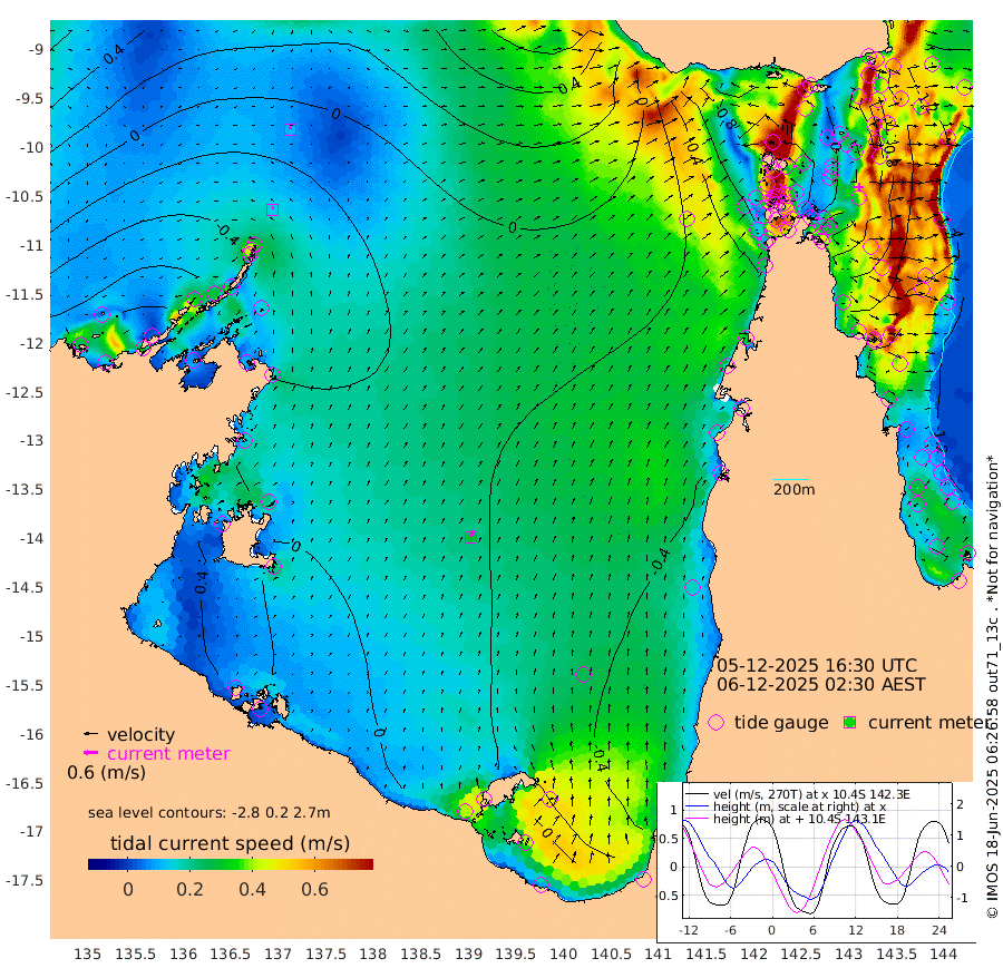 13cm/s 3T +3cm/s rms + 7cm/s -42T. ARA-GOC87 57m 28cm/s 17T +3cm/s rms + 2cm/s -2T. ARA-GOC87 60m 11cm/s 16T +2cm/s rms + 3cm/s 61T. ARA-GOC87 47m -82cm Daru -88cm Bobo Island -108cm Meer Island Barge -113cm Bramble Cay -100cm Unnamed Cay -104cm Pearce Cay -108cm Stephens Island -101cm Merrie England Shoals -82cm Mutacomal Reef -102cm Darnley Island Barge -120cm East Cay -86cm Yorke Island Barge -94cm Rennel Island -88cm Aureed Island -82cm Dungeness Reef -39cm Zagai Island -45cm Yam Island -37cm Dauan Island -18cm Saibai Island -64cm Phipi Reef -52cm Warrior Reef - West -18cm Mabuiag Island Barge -86cm Half Way Island -76cm Coconut Island -79cm Dugong Islet -56cm Poll Island -65cm Kirkcaldie Reef -48cm Suarji Island -40cm Sue Islet -86cm Hawkesbury Island -48cm Alert Patches -45cm Twin Island -79cm Badu Island -32cm St Pauls (Moa Island) -76cm Kubin (Moa Island) -46cm Ince Point -50cm Thursday Island -49cm Nardana Patches -80cm Turtle Head -81cm Round Island -100cm Goods Island -91cm Booby Island -91cm White Rocks Area -38cm Carpentaria -35cm Papou Point -106cm Bampfield Head -72cm Crab Island -84cm Red Wallis Island -93cm Packe Island -77cm Harrington Reef -103cm Herald Camp 7cm Sharp Point -66cm Red Island Point -57cm Possession Island -29cm Alpha Rock -57cm Frederick Point -73cm Wyborn Reef Light -64cm Tetley Island -93cm Triangle Reef -81cm Turtle Head Island -108cm Maclennan Cay -111cm Raine Island -94cm Mcsweeny Reef -97cm Collette Reef -101cm Shadwell Reef -108cm Hannibal Island -119cm Round Point -47cm Vrilya Point -110cm Cape Grenville -116cm Hicks Island -126cm Sir Charles Hardy Island -34cm Harvey Island -117cm Kay Reef -116cm Rocky Island -118cm Chapman Island -109cm Ham Reef -110cm Jubilee Reef -102cm Night Island -112cm Unnamed Reef No. 3 -120cm Morris Island -116cm 1st 3 Mile Opening -116cm Creech Reef -112cm Fife Island -140cm Eden Reef -119cm Stanley Island -127cm Normanby River -83cm Yabooma Island -114cm Hutchison River -81cm Elcho Island -72cm North West Crocodile Island -32cm Cape Wessel -54cm Stevens Island -51cm Guluwuru Island -59cm Hopeful Bay -43cm Auster Point -38cm Two Island Bay -77cm Cadell Strait -15cm Mallison Island -44cm Melville Bay (Gove Harbour) -42cm Truant Island -24cm Cape Arnhem -1cm Cape Grey 5cm Hawk Island 49cm Milner Bay (Groote Eylandt) 40cm Cape Beatrice 78cm West Island 76cm Centre Island 3cm Mornington Island 10cm West Wellesley Islands -20cm Bountiful Island 0cm Albert River Mouth 30cm Sweers Island -10cm Karumba -49cm Nassau River Offshore -80cm Christmas Creek -82cm Archer River -71cm Boyd Point -94cm Weipa (Humbug Point) -42cm Pennefather River -59cm Cullen Point