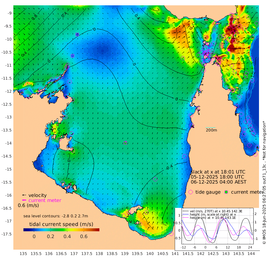 5cm/s -42T +3cm/s rms + 7cm/s -42T. ARA-GOC87 57m 29cm/s 16T +3cm/s rms + 2cm/s -2T. ARA-GOC87 60m 2cm/s 160T +2cm/s rms + 3cm/s 61T. ARA-GOC87 47m -152cm Daru -155cm Bobo Island -125cm Meer Island Barge -147cm Bramble Cay -157cm Unnamed Cay -161cm Pearce Cay -156cm Stephens Island -156cm Merrie England Shoals -152cm Mutacomal Reef -148cm Darnley Island Barge -136cm East Cay -146cm Yorke Island Barge -151cm Rennel Island -151cm Aureed Island -146cm Dungeness Reef -107cm Zagai Island -109cm Yam Island -79cm Dauan Island -62cm Saibai Island -114cm Phipi Reef -121cm Warrior Reef - West -34cm Mabuiag Island Barge -145cm Half Way Island -139cm Coconut Island -146cm Dugong Islet -120cm Poll Island -127cm Kirkcaldie Reef -108cm Suarji Island -106cm Sue Islet -24cm Hawkesbury Island -88cm Alert Patches -92cm Twin Island -31cm Badu Island -84cm St Pauls (Moa Island) -50cm Kubin (Moa Island) -65cm Ince Point -52cm Thursday Island -56cm Nardana Patches -56cm Turtle Head -41cm Round Island -34cm Goods Island 0cm Booby Island -10cm White Rocks Area 43cm Carpentaria -72cm Papou Point -14cm Bampfield Head 9cm Crab Island -3cm Red Wallis Island -50cm Packe Island -148cm Harrington Reef -38cm Herald Camp -17cm Sharp Point -42cm Red Island Point -68cm Possession Island -81cm Alpha Rock -114cm Frederick Point -140cm Wyborn Reef Light -131cm Tetley Island -112cm Triangle Reef -142cm Turtle Head Island -122cm Maclennan Cay -104cm Raine Island -144cm Mcsweeny Reef -140cm Collette Reef -117cm Shadwell Reef -155cm Hannibal Island -149cm Round Point 32cm Vrilya Point -137cm Cape Grenville -136cm Hicks Island -144cm Sir Charles Hardy Island -43cm Harvey Island -129cm Kay Reef -119cm Rocky Island -113cm Chapman Island -104cm Ham Reef -111cm Jubilee Reef -108cm Night Island -107cm Unnamed Reef No. 3 -122cm Morris Island -112cm 1st 3 Mile Opening -116cm Creech Reef -116cm Fife Island -138cm Eden Reef -122cm Stanley Island -134cm Normanby River -23cm Yabooma Island -53cm Hutchison River -23cm Elcho Island -17cm North West Crocodile Island -16cm Cape Wessel -19cm Stevens Island -62cm Guluwuru Island -20cm Hopeful Bay -16cm Auster Point -15cm Two Island Bay -53cm Cadell Strait -85cm Mallison Island -49cm Melville Bay (Gove Harbour) -46cm Truant Island -35cm Cape Arnhem -19cm Cape Grey -18cm Hawk Island 21cm Milner Bay (Groote Eylandt) 11cm Cape Beatrice 36cm West Island 36cm Centre Island -48cm Mornington Island -42cm West Wellesley Islands -74cm Bountiful Island -55cm Albert River Mouth -35cm Sweers Island -63cm Karumba -78cm Nassau River Offshore -85cm Christmas Creek -47cm Archer River -29cm Boyd Point -42cm Weipa (Humbug Point) 8cm Pennefather River 9cm Cullen Point
